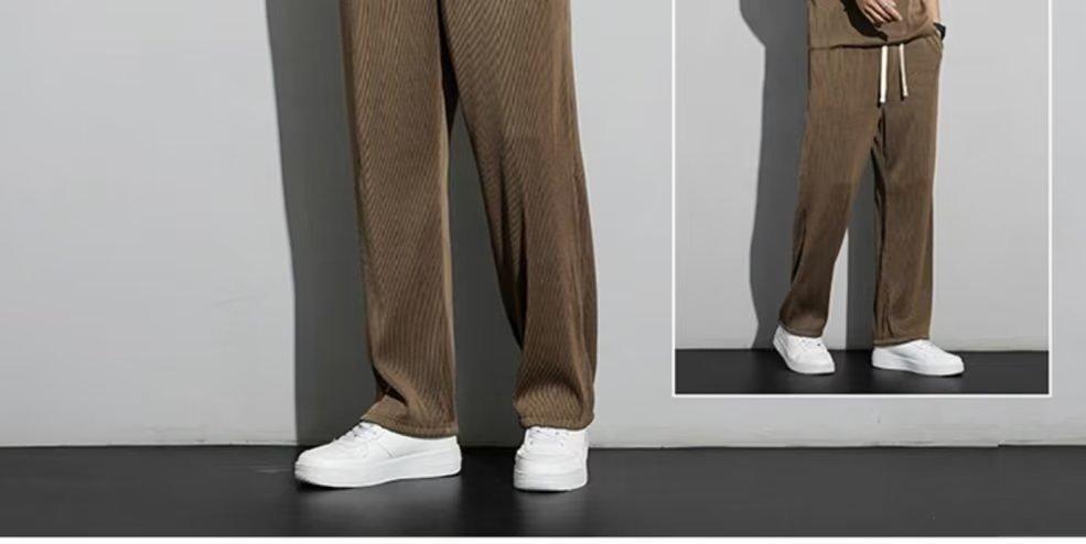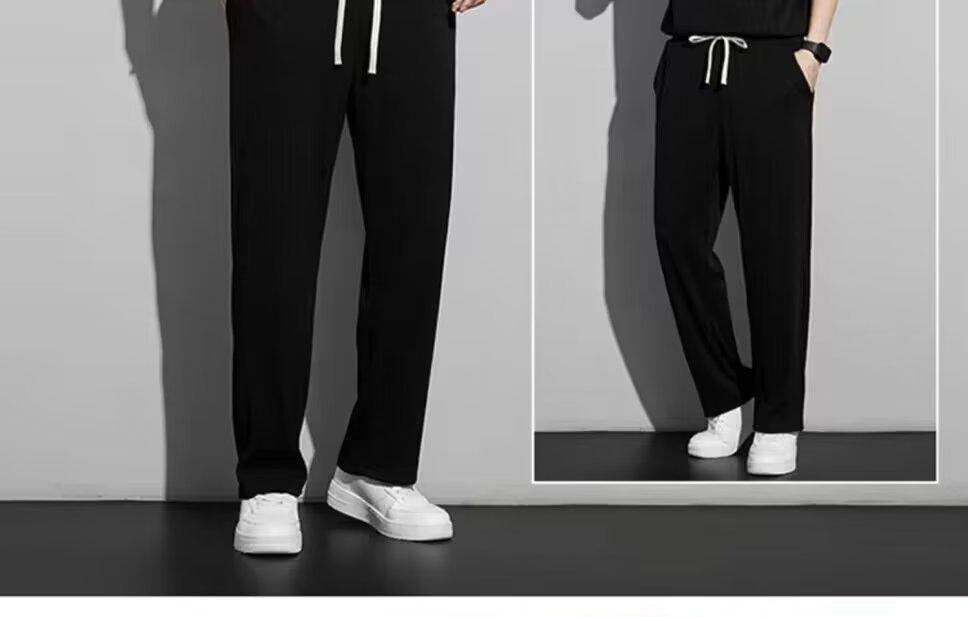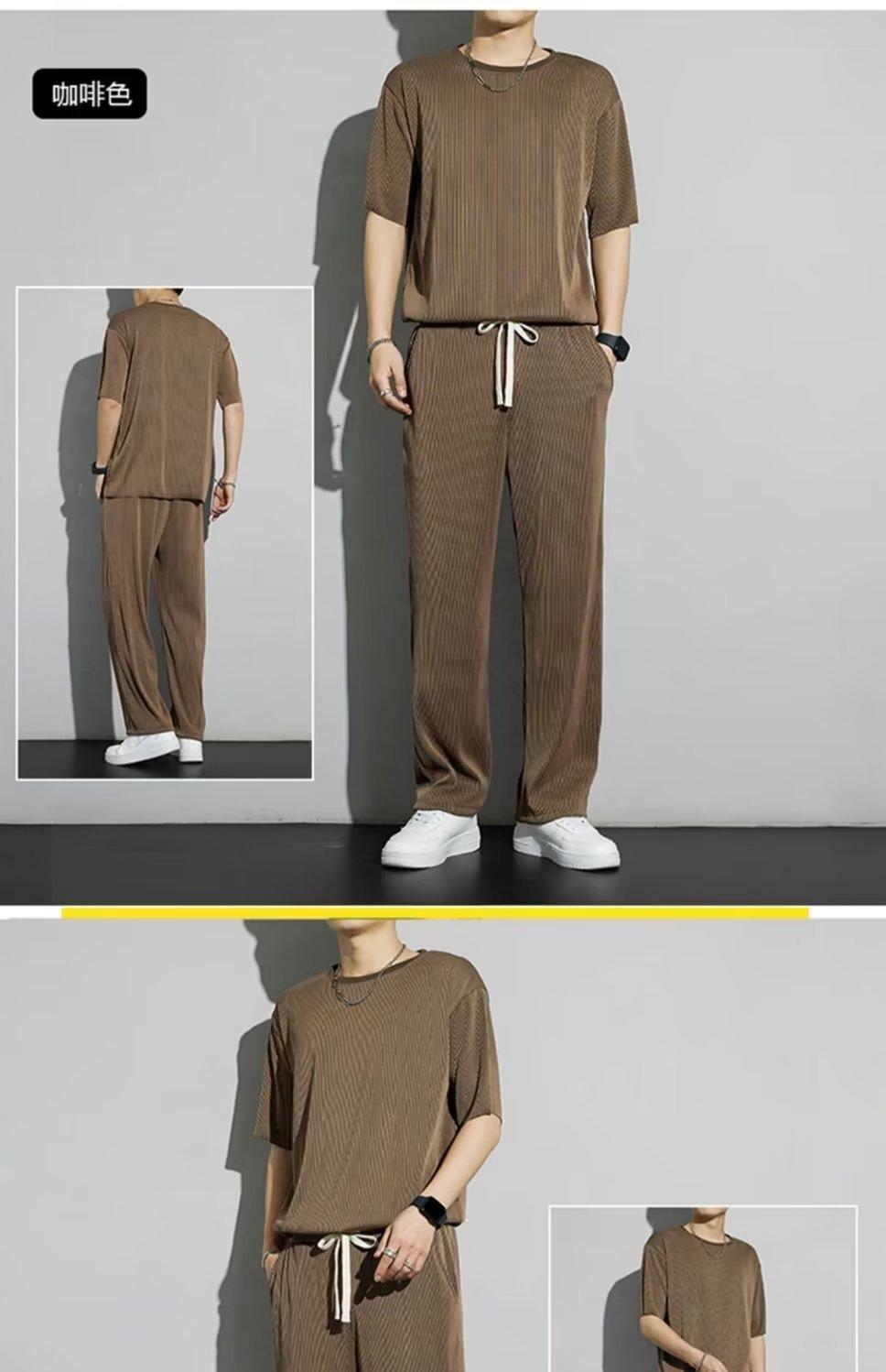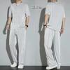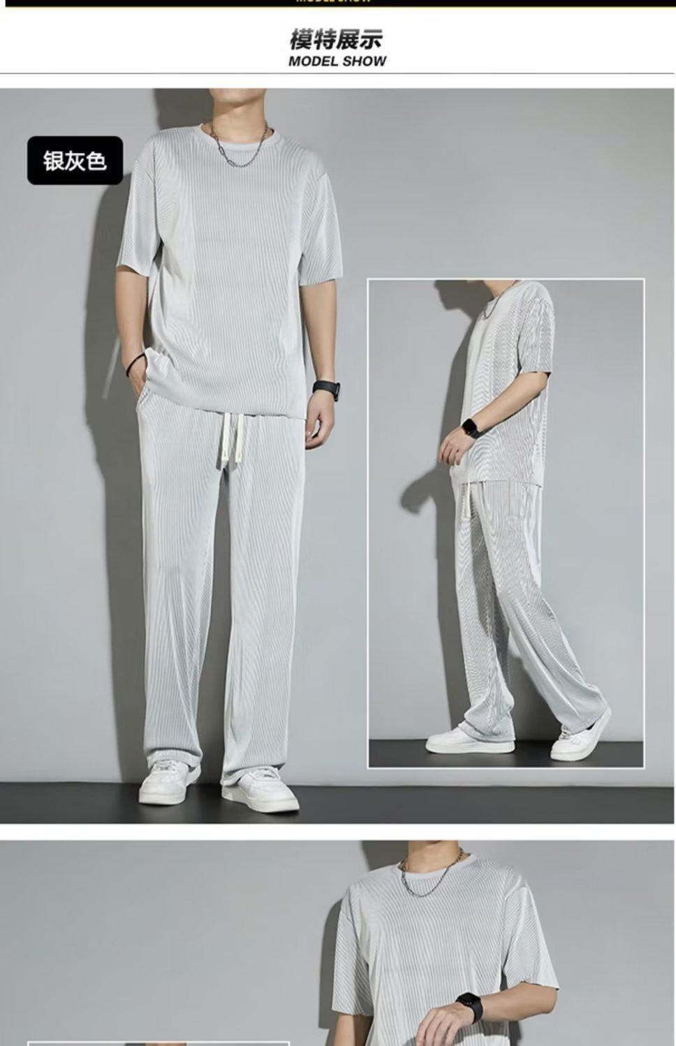 Traje deportivo de seda de hielo para hombre, verano 2023, fino, informal, pantalones largos, camiseta de manga corta, conjunto de ropa de secado rápido