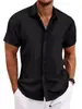 Suministro transfronterizo Amazon Camisa Casual de Verano para Hombre Sencilla de Color Sólido de Manga Corta Camisa Juvenil con Cuello Semi-cárdigan