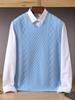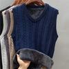 Chaleco de lana con cuello en V para hombre, otoño e invierno, nuevo, sencillo, combinable, sin mangas, de punto, cálido, talla grande