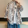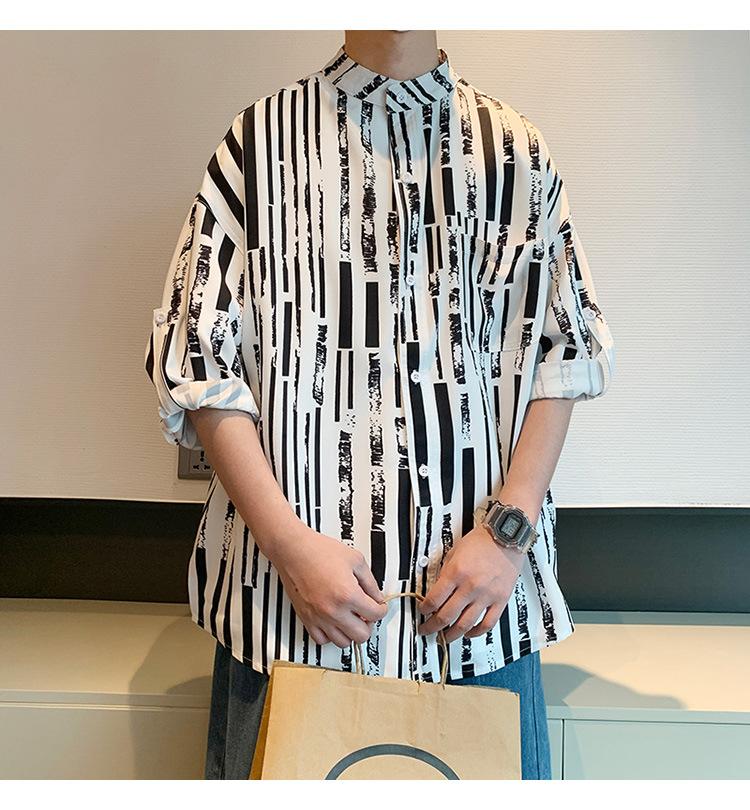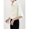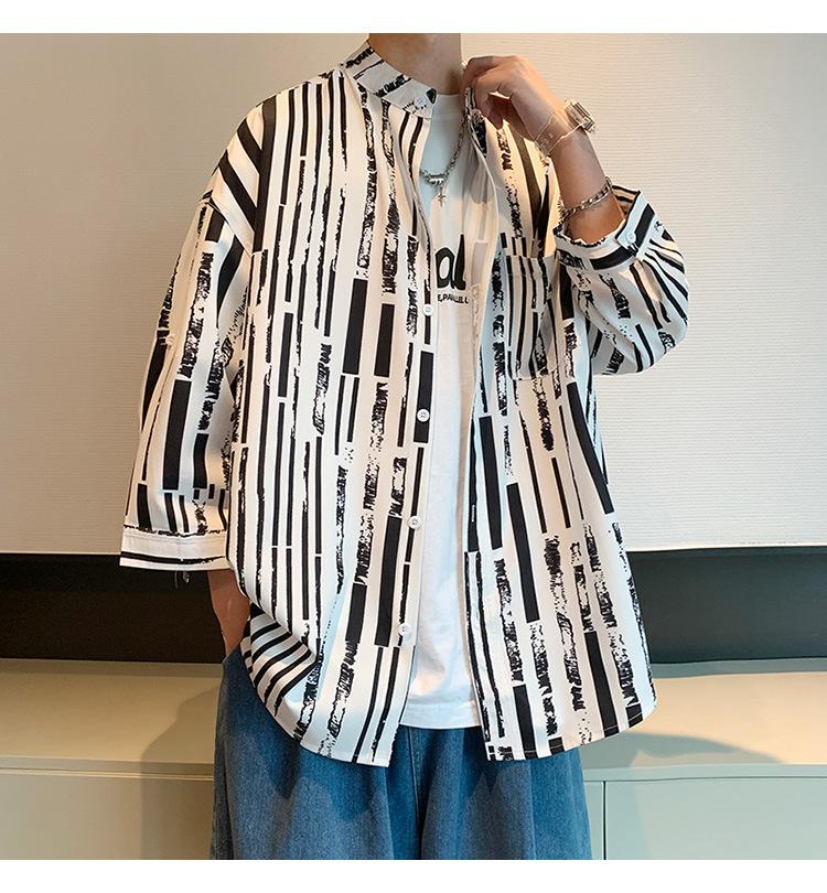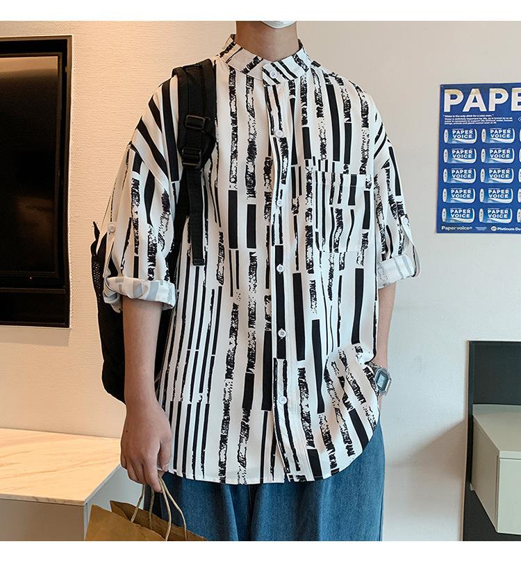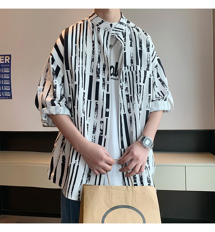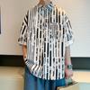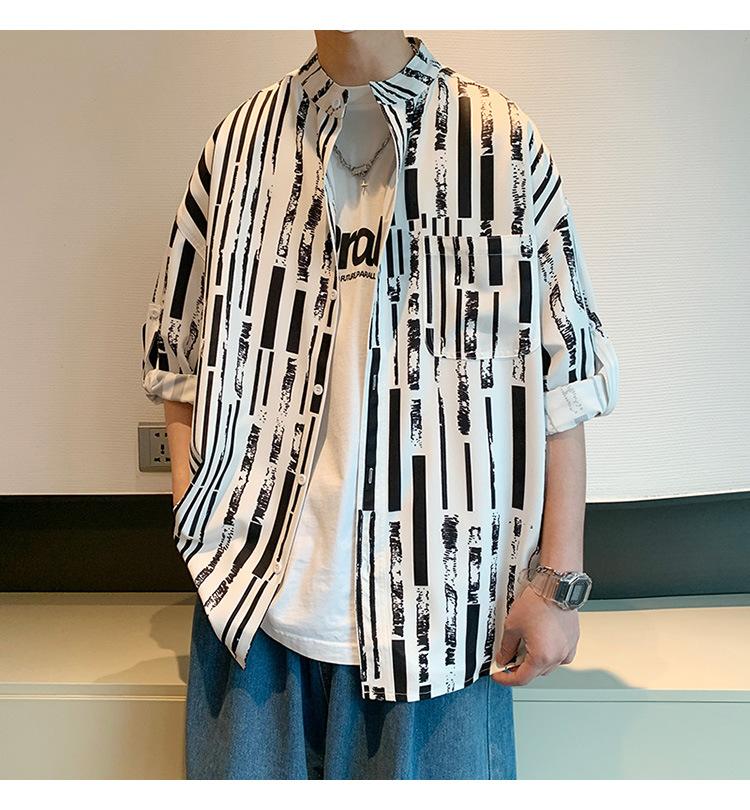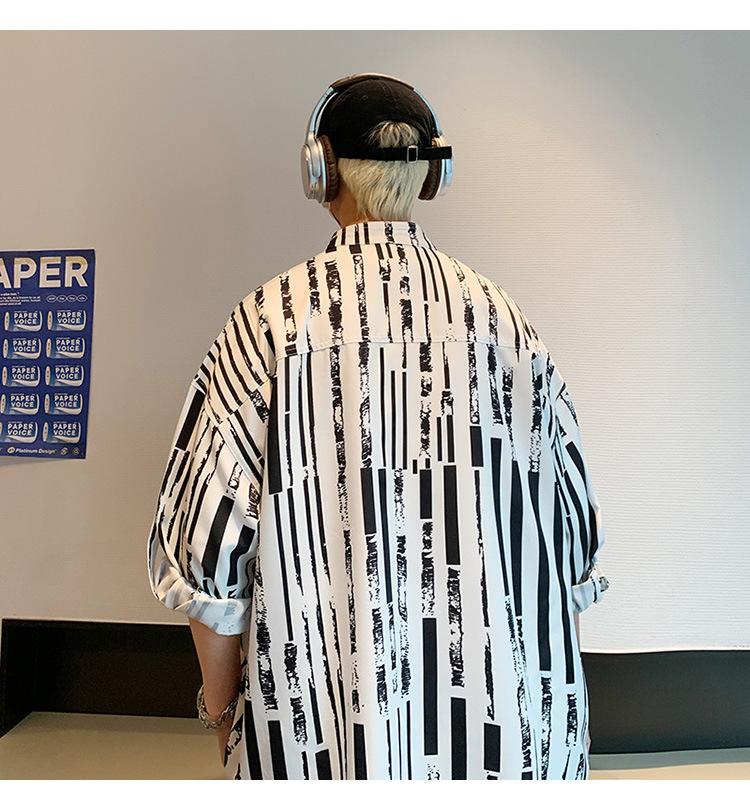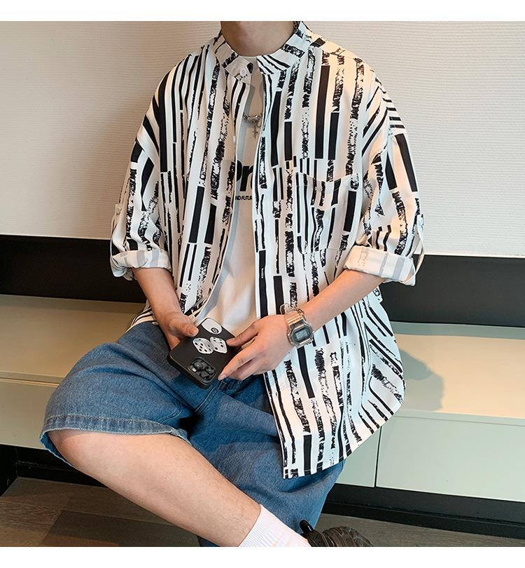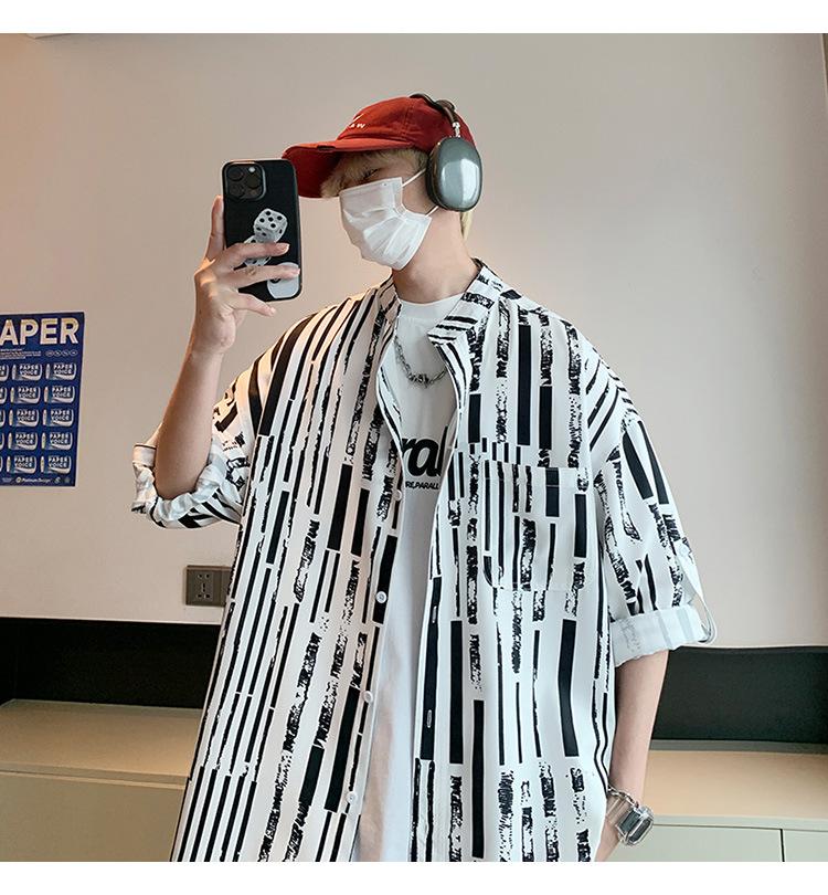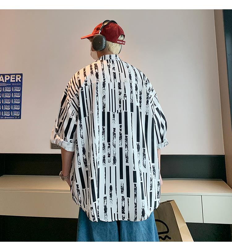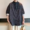 Camisa de manga corta drapeada de seda de hielo con estrellas para hombre, holgada, de talla grande, de moda, de verano, con cuello retro y forro de manga de siete puntos