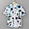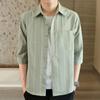 Camisa de Manga Siete Puntos para Hombre Verano Camisa de Media Manga Casual Abullonada Guapa Delgada para Hombre Costuras Rayada Camisa Pequeña
