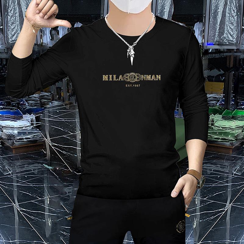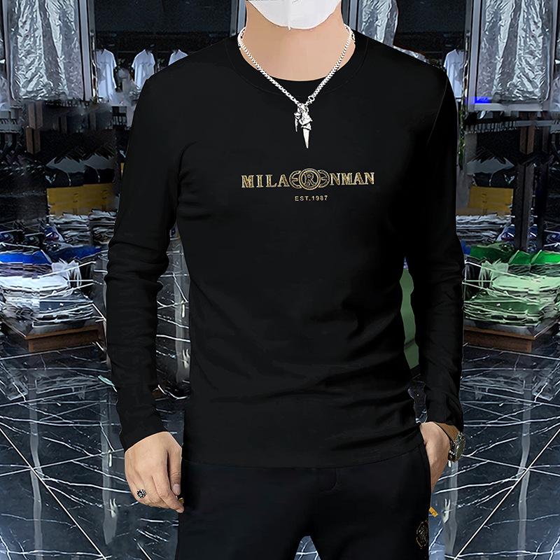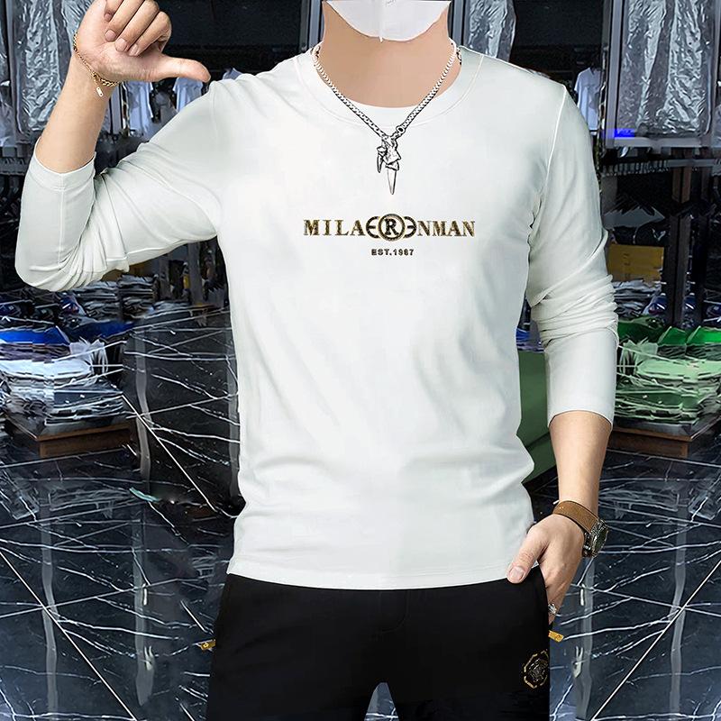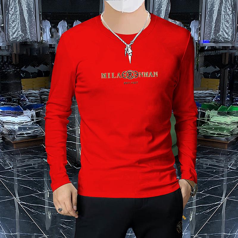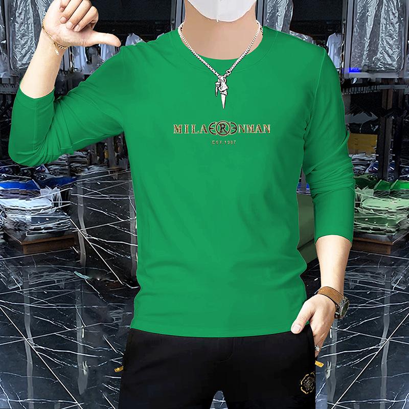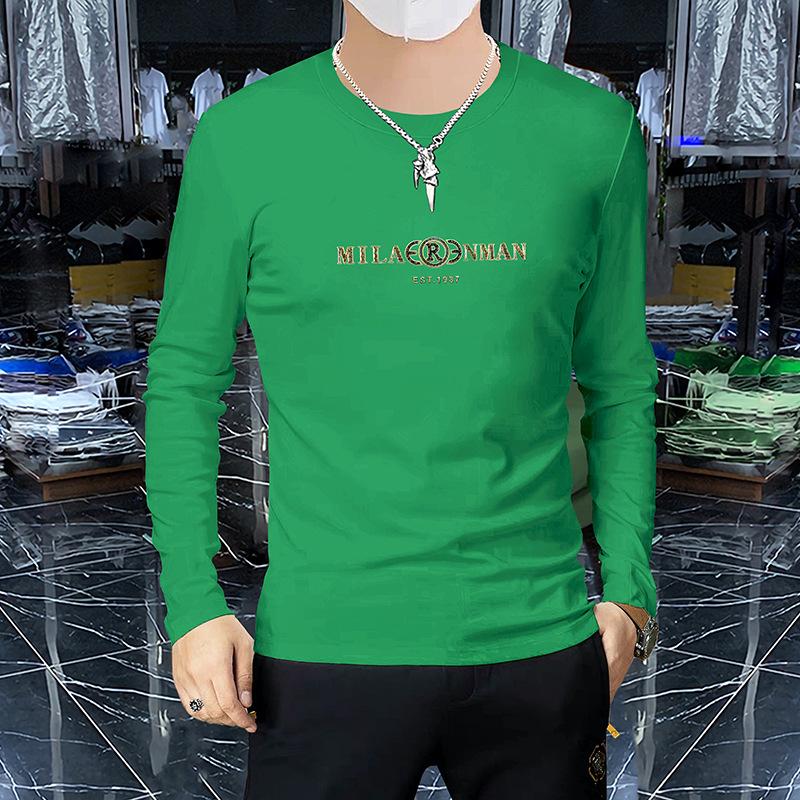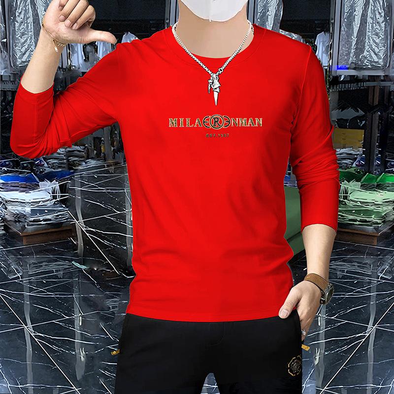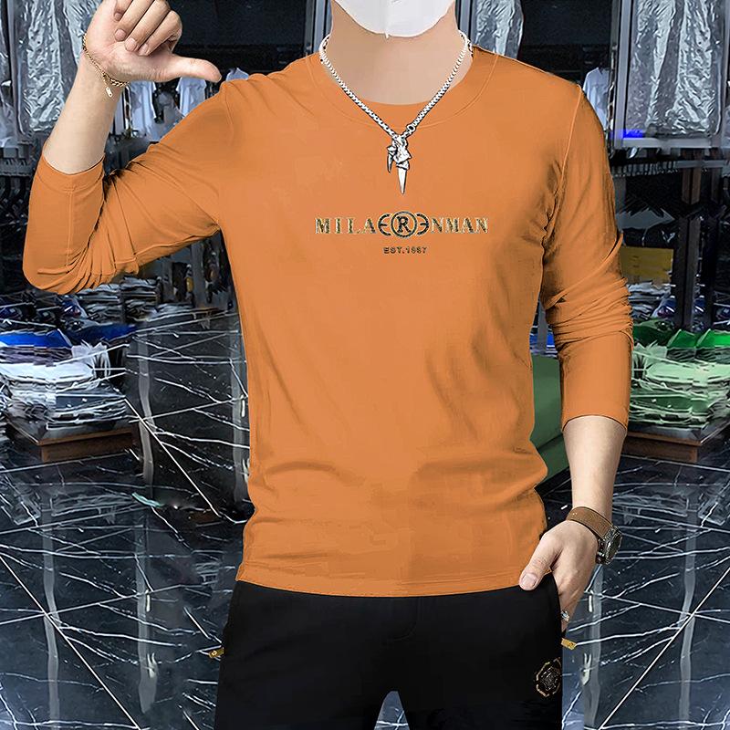 Camiseta de manga larga y cuello redondo fina de primavera y otoño, jersey de algodón peinado, camisa básica, prenda exterior, top informal ajustado para jóvenes