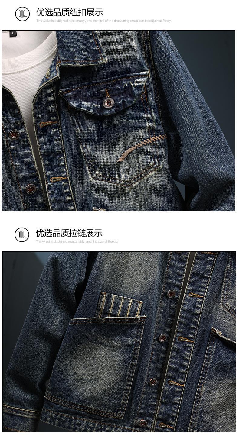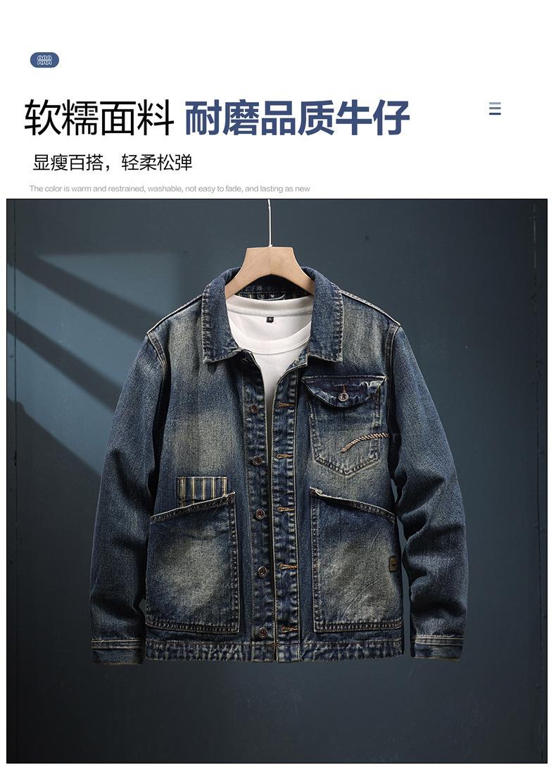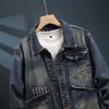 Chaqueta Multibolsillos Lavada Vintage Casual 2024 Nueva Primavera y Otoño Abrigo de Mezclilla Chaqueta de Mezclilla Retro de Moda para Hombre