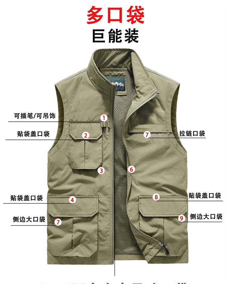 Chaleco informal multibolsillos para hombre, ideal para fotografía, para exteriores y uso diario.
