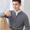Cárdigan de Cachemira para Hombre 100% Cachemira Pura Primavera y Otoño Nuevo Cierre de Cremallera Manga Larga Suéter Tejido Trenzado Chaqueta