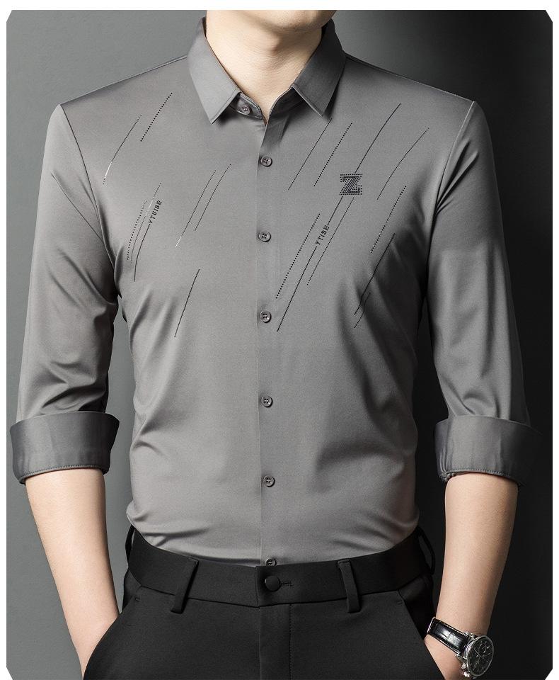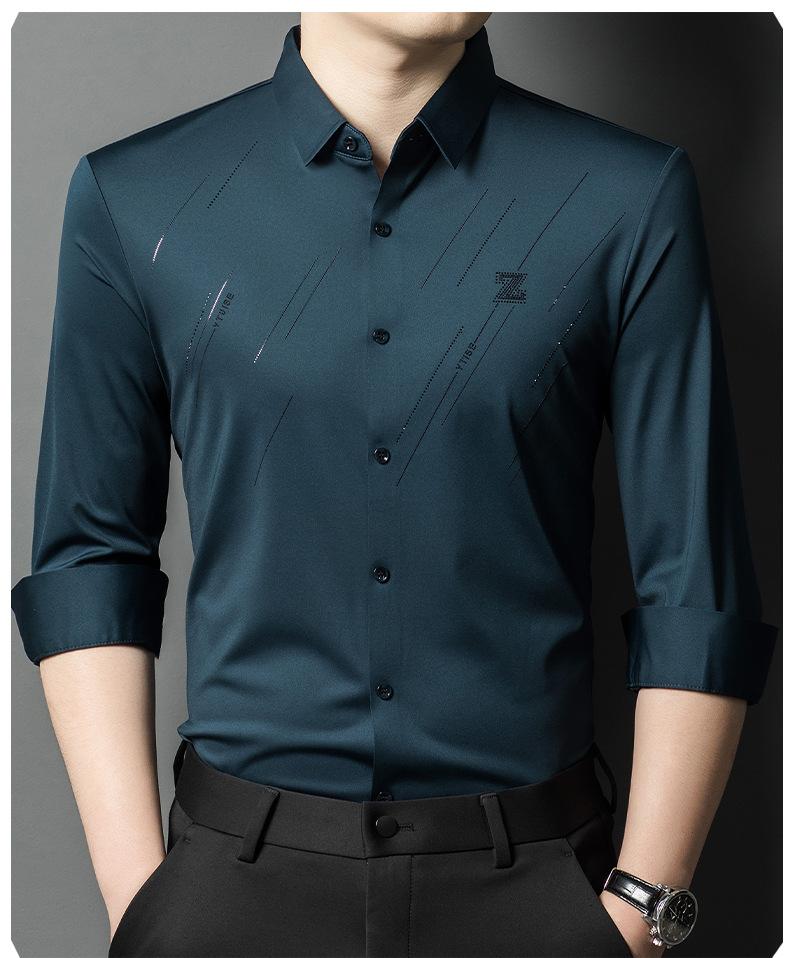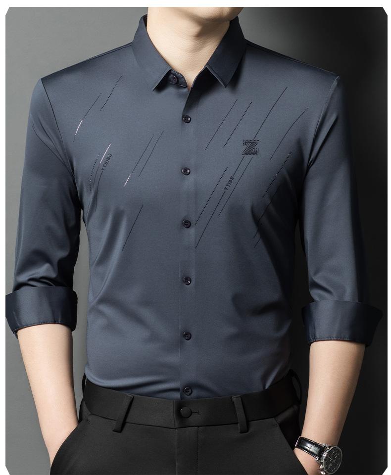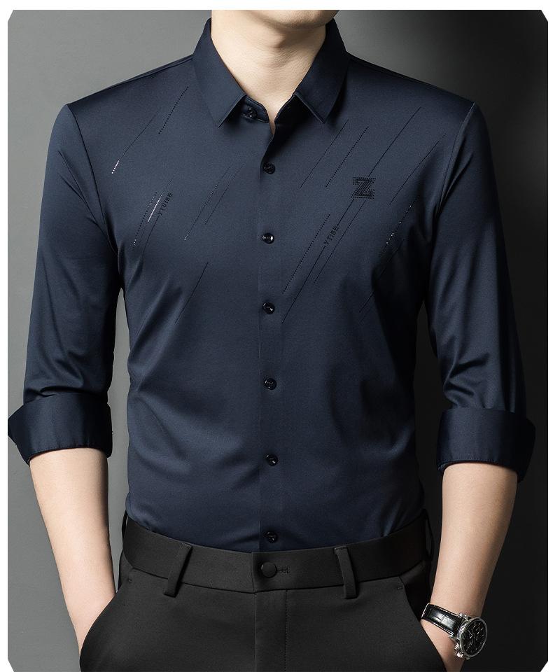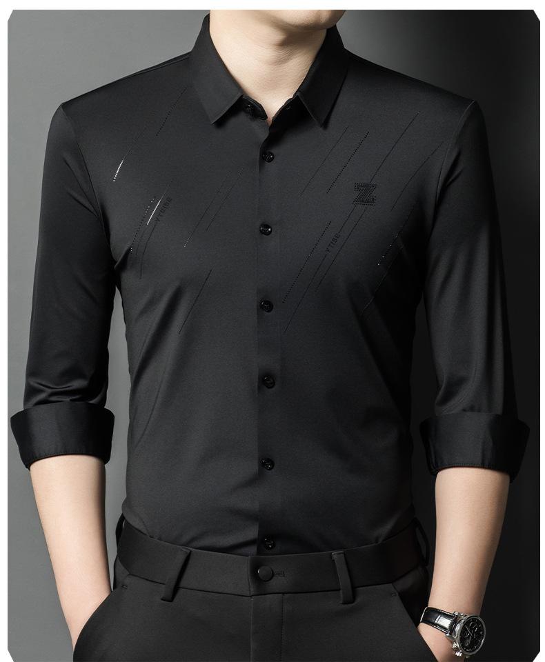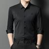 Camisa de Negocios para Hombre Fibra de Bambú Tapeta Oscura Talla Grande Color Sólido Suave Amigable con la Piel Ropa de Trabajo Casual Camisa de Manga Larga para Hombre