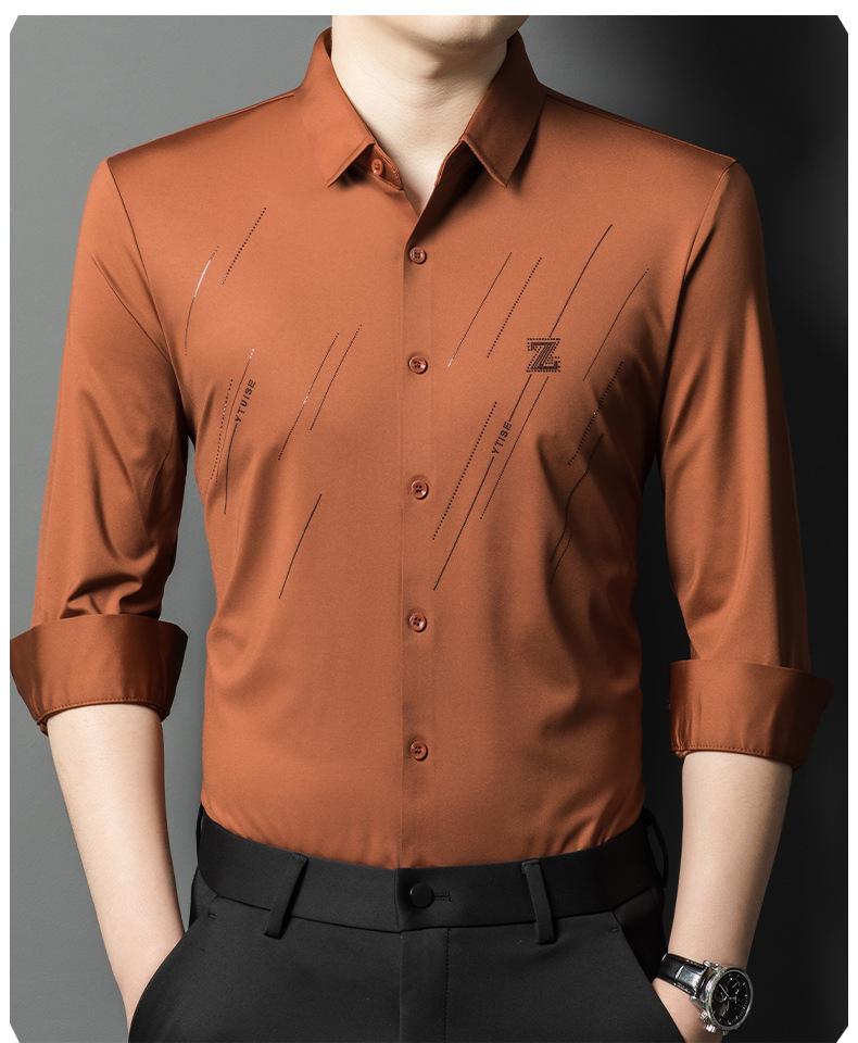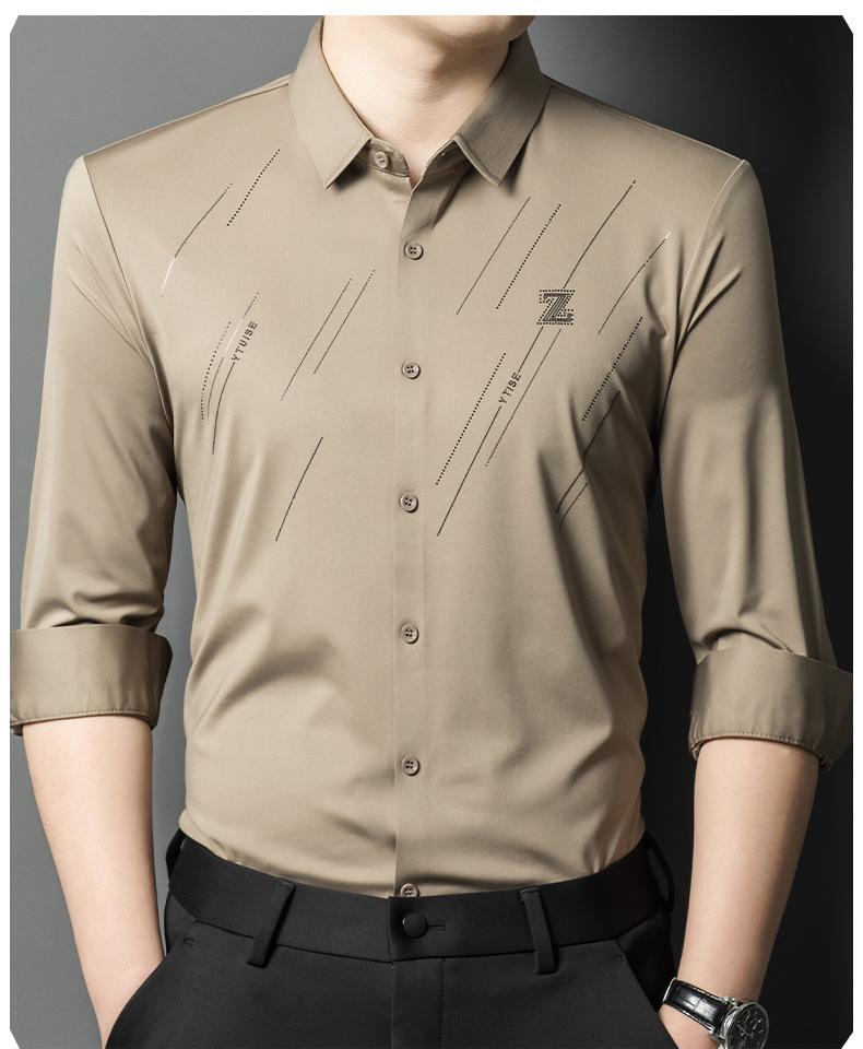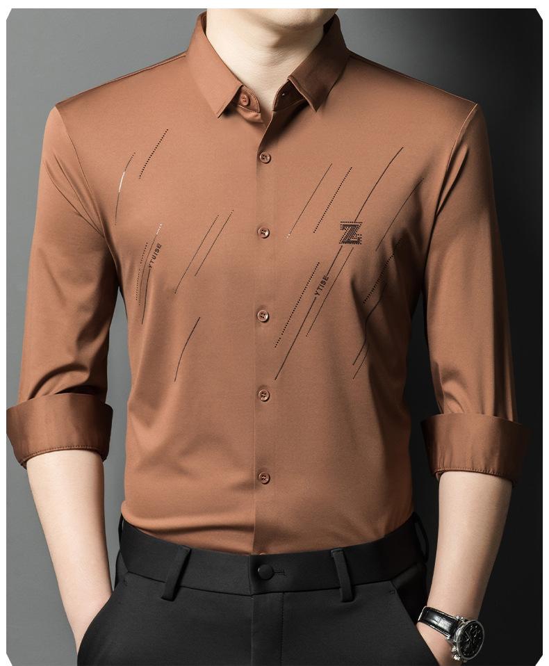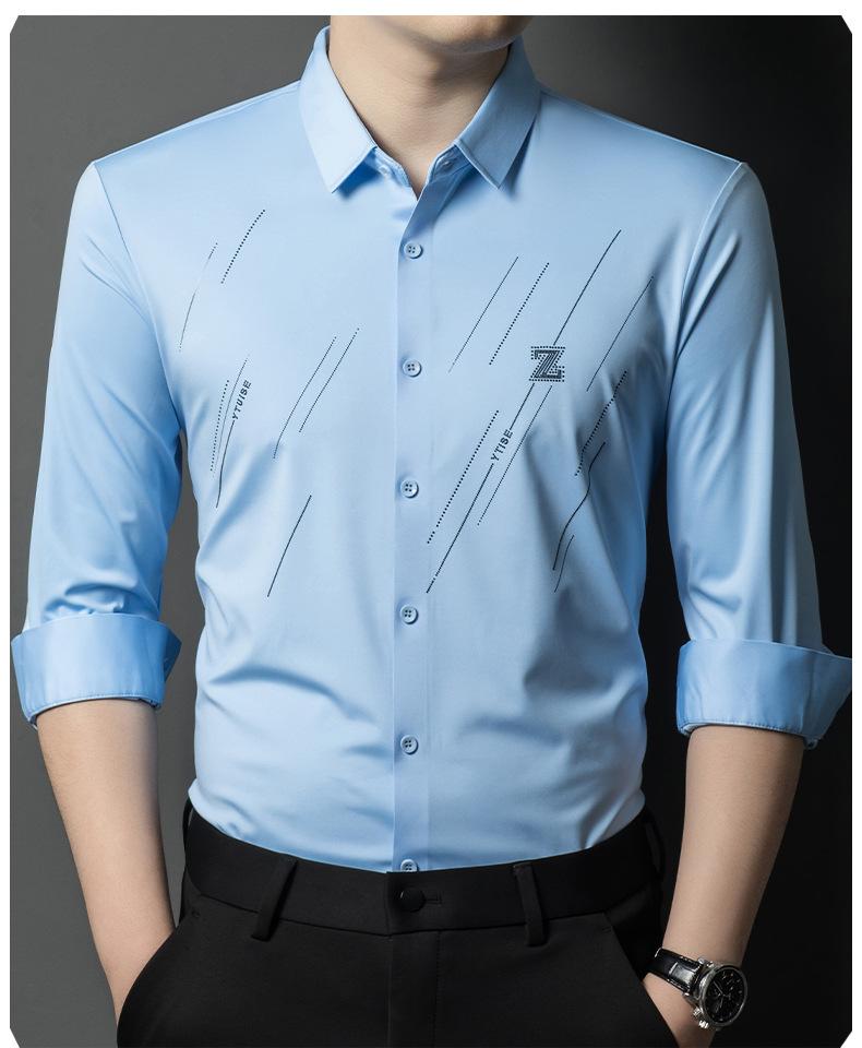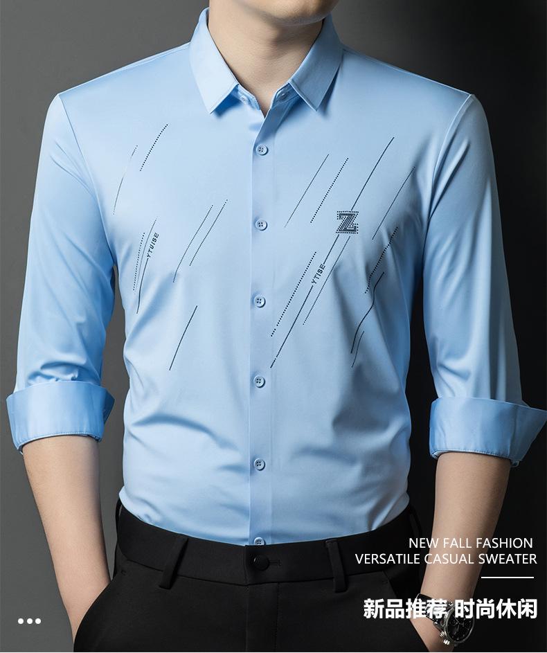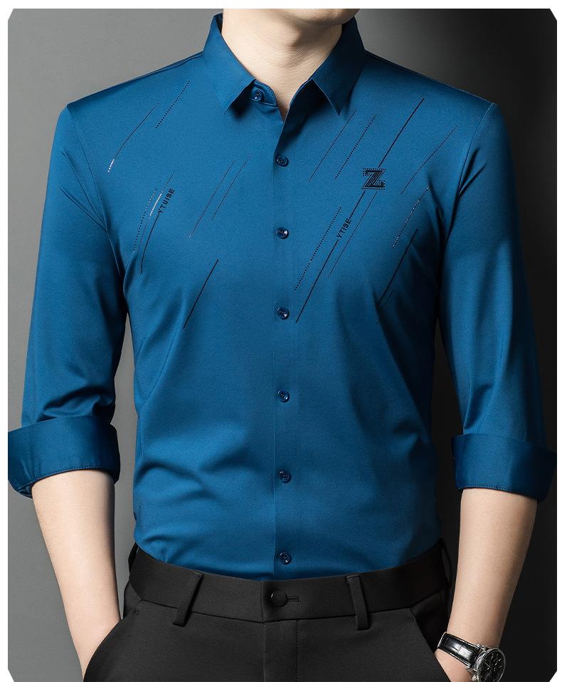 Camisa de Negocios para Hombre Fibra de Bambú Tapeta Oscura Talla Grande Color Sólido Suave Amigable con la Piel Ropa de Trabajo Casual Camisa de Manga Larga para Hombre