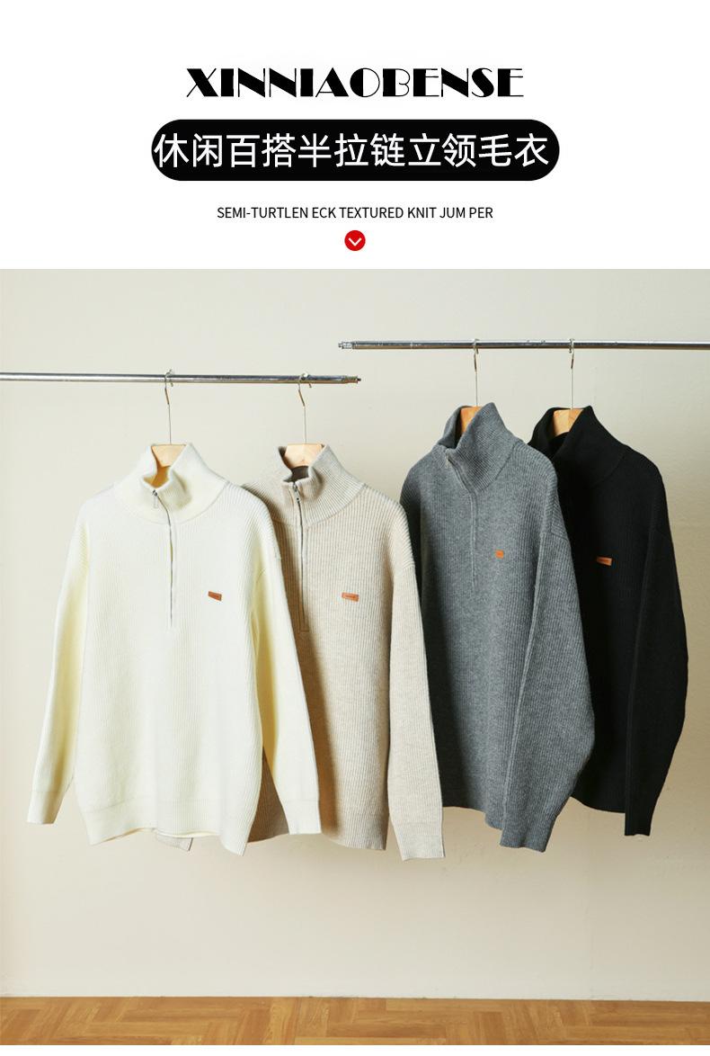 Suéter de cuello alto con media cremallera para hombre, jersey de punto informal que combina con todo, camisa básica de otoño