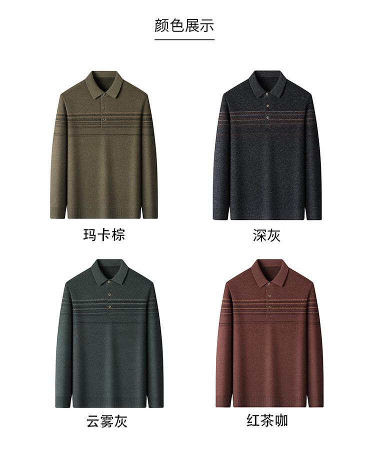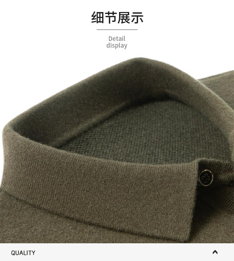 Suéter de lana 100% para hombre, suéter grueso con solapa, suave y cálido, otoño e invierno, 2024