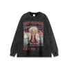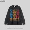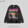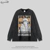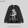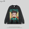 Camiseta de Manga Larga Dibujo Animado Estilo Japonés Lavada Vieja para Hombre y Mujer Estilo Americano Vintage Retro Moda Nacional Holgada Versátil para Fondo Otoño