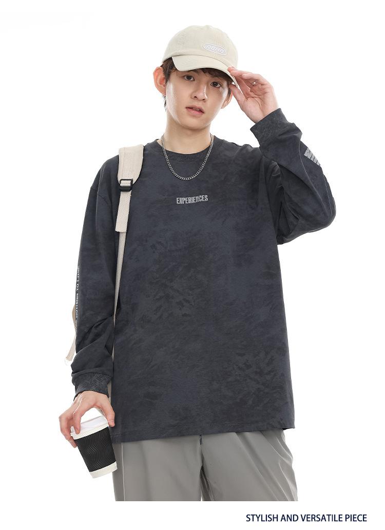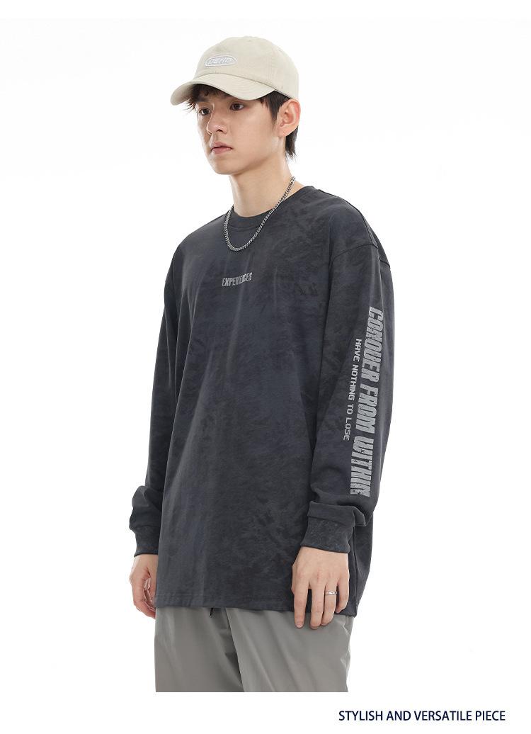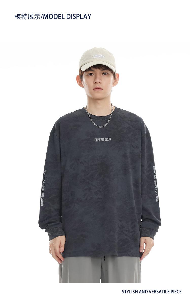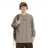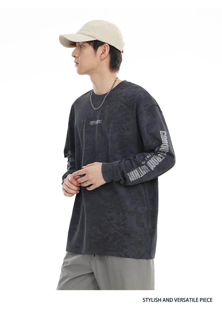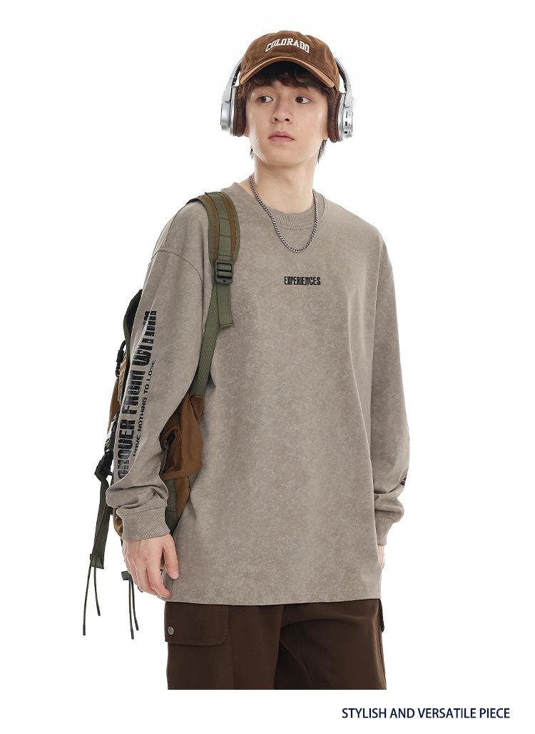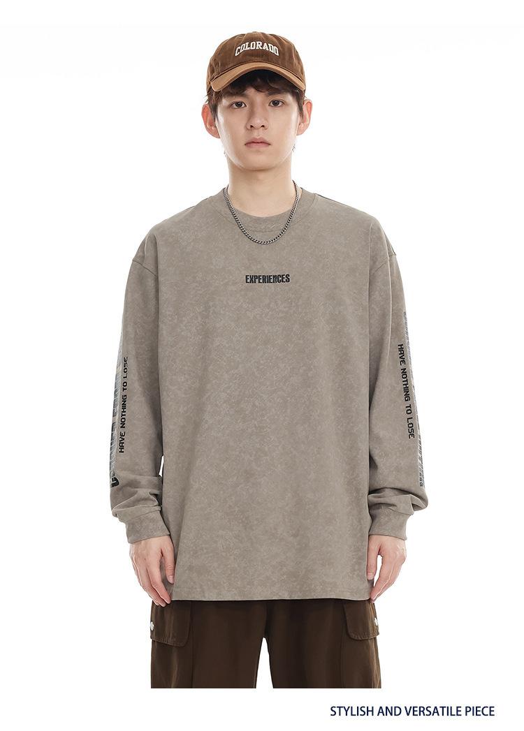 Camiseta retro americana lavada desgastada de manga larga para hombre marca de moda estampado de letras cuello redondo holgada casual top camiseta base