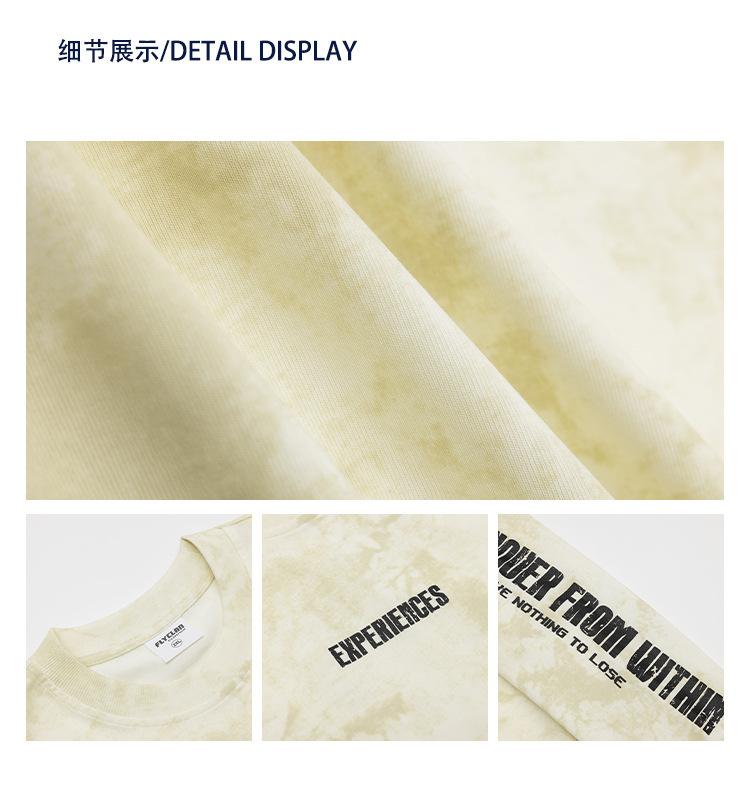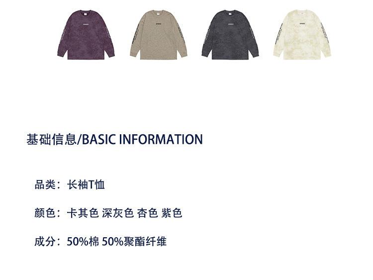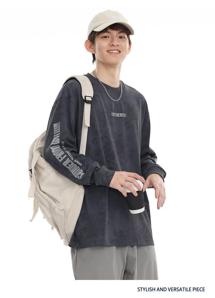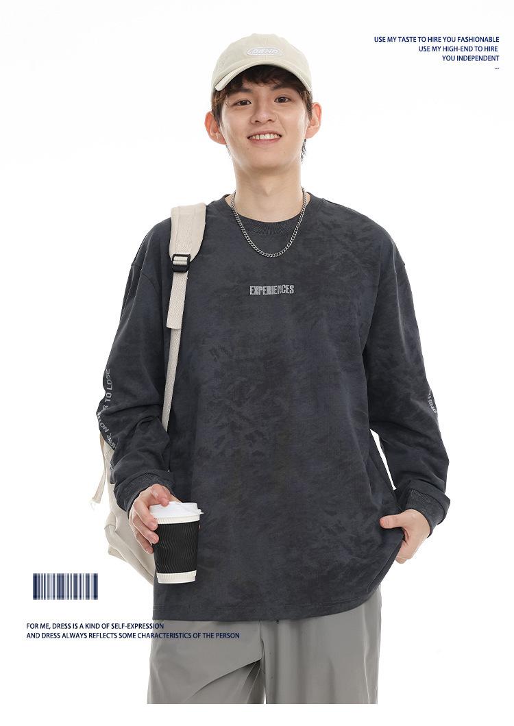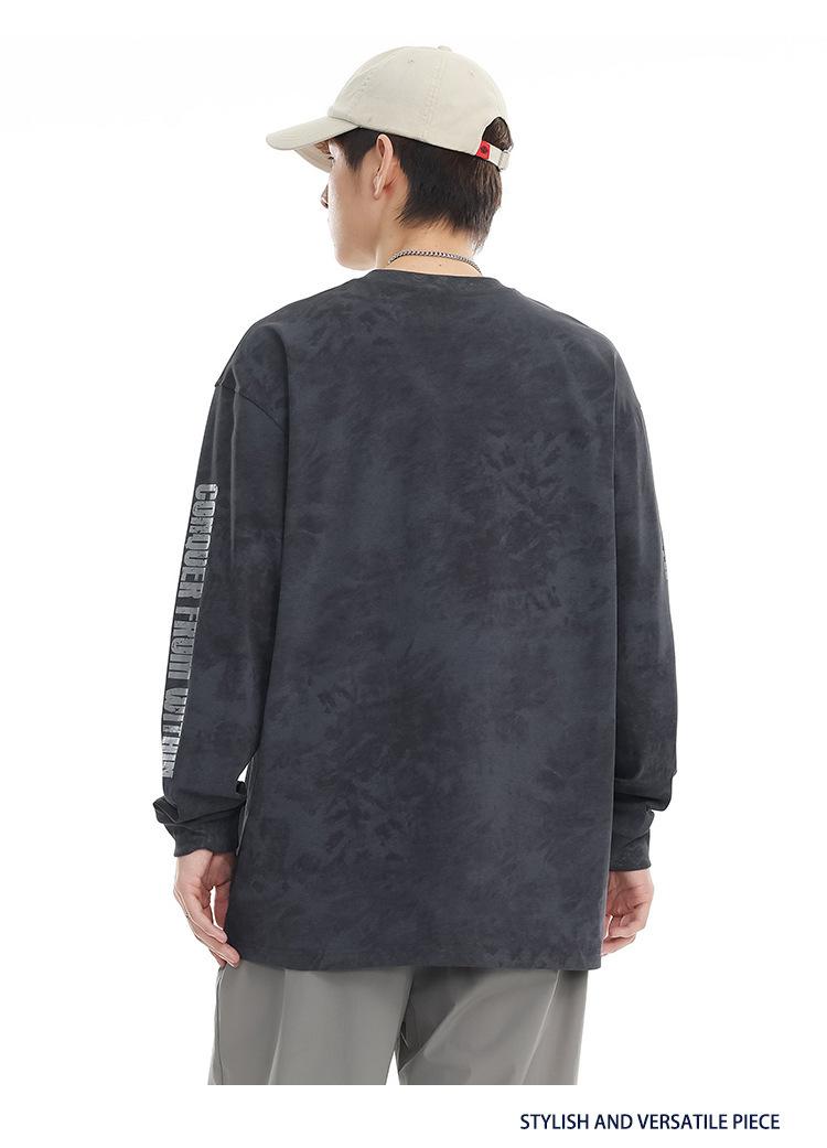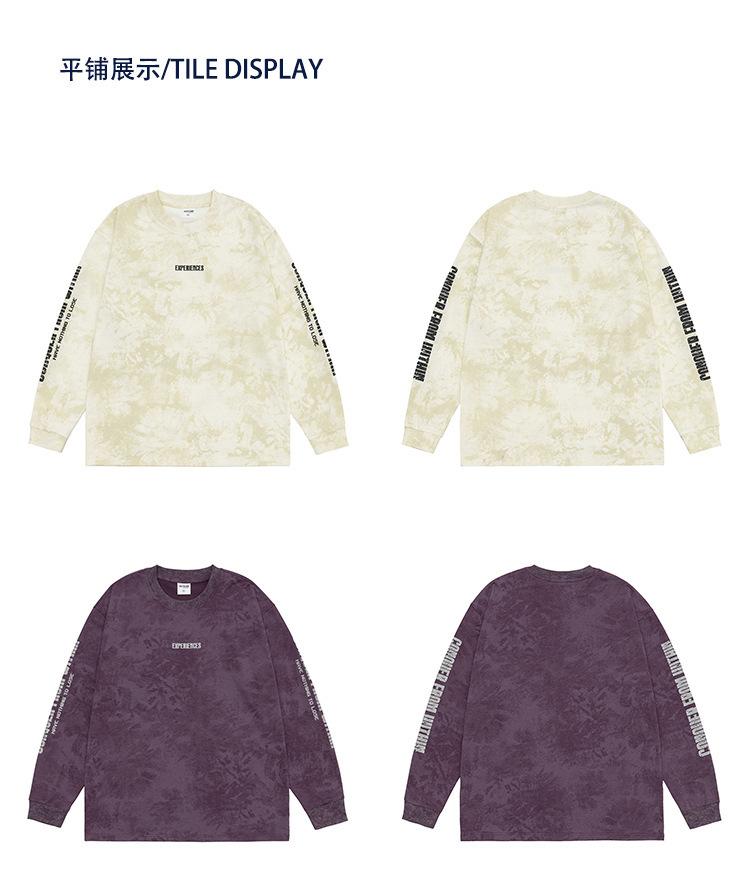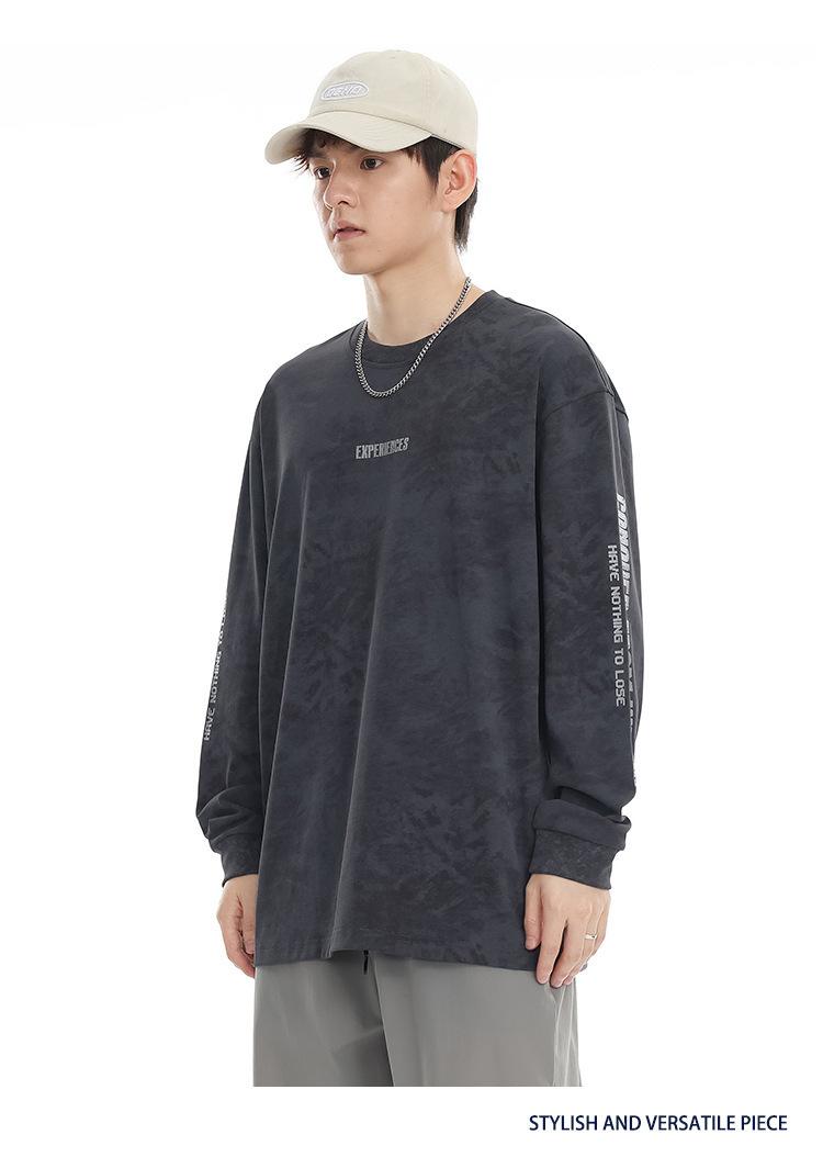 Camiseta retro americana lavada desgastada de manga larga para hombre marca de moda estampado de letras cuello redondo holgada casual top camiseta base