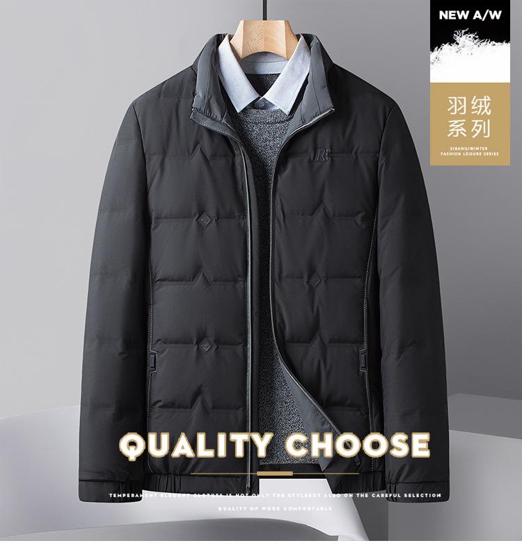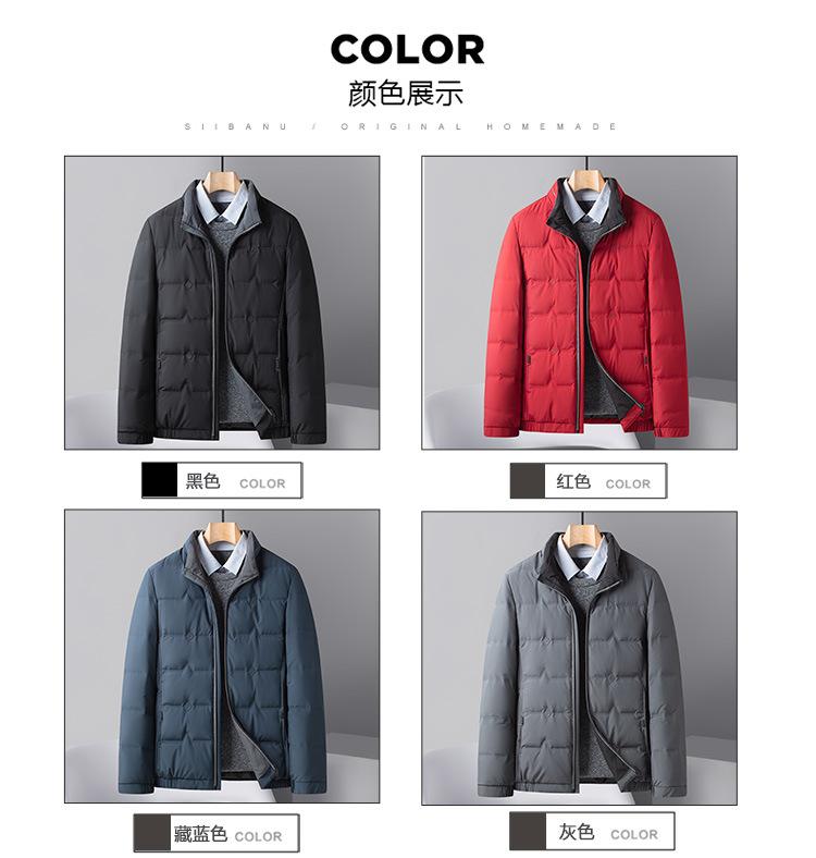 2025 Chaqueta de plumón ligera para hombre de mediana edad, casual, corta, otoño e invierno, nueva, para hombre, cálida, cuello alto, moda, chaqueta de plumón