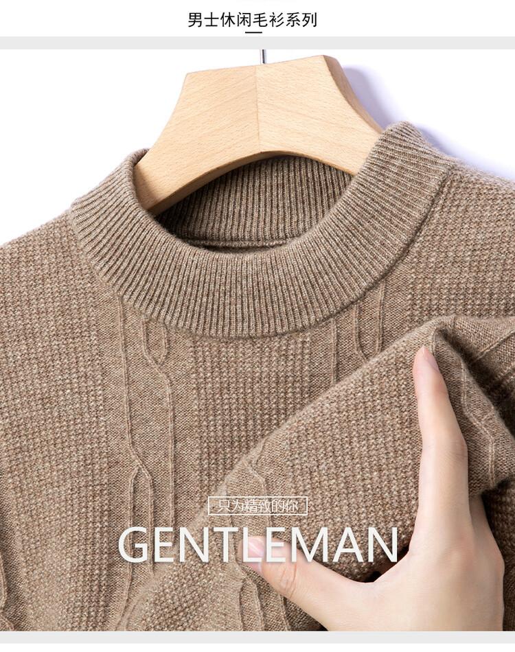Suéter Grueso de Otoño e Invierno 2024 100% para Hombre, Tejido Base, Suelto, Jacquard, Casual, Cuello Alto Falso