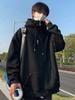 Suéter falso de dos piezas con media cremallera y cuello alto para hombre, otoño e invierno, estilo americano, marca de moda, chaqueta holgada con capucha de gran tamaño