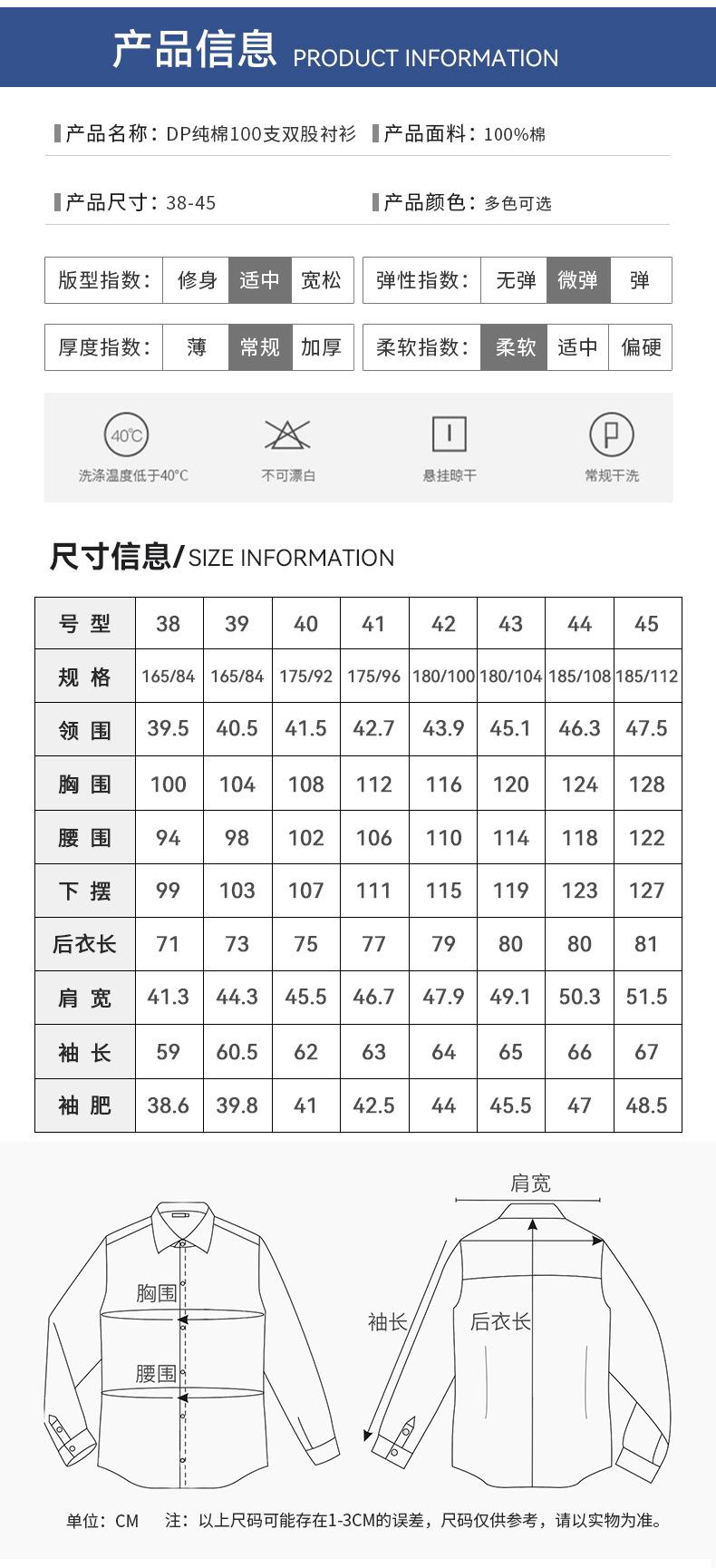 Camisa de hombre manga larga algodón DP lista para usar sin planchar casual para hombre 100 doble antiarrugas camisa de primavera y otoño hombre