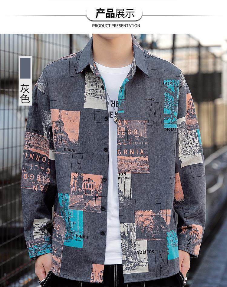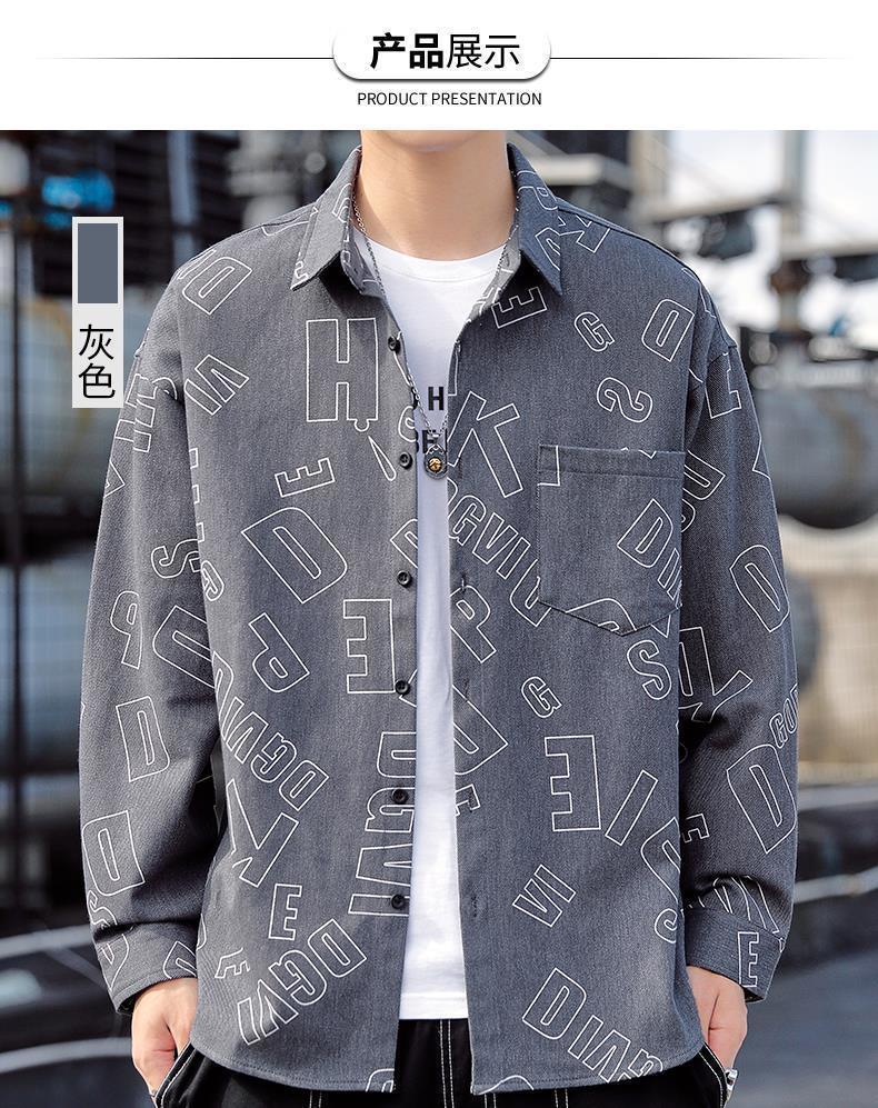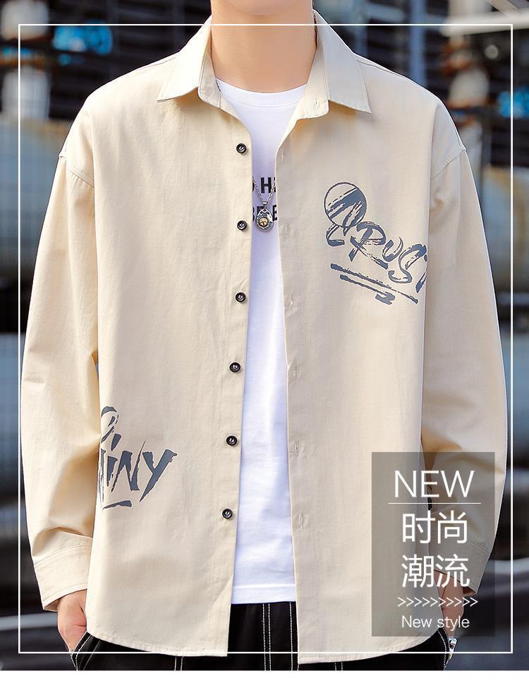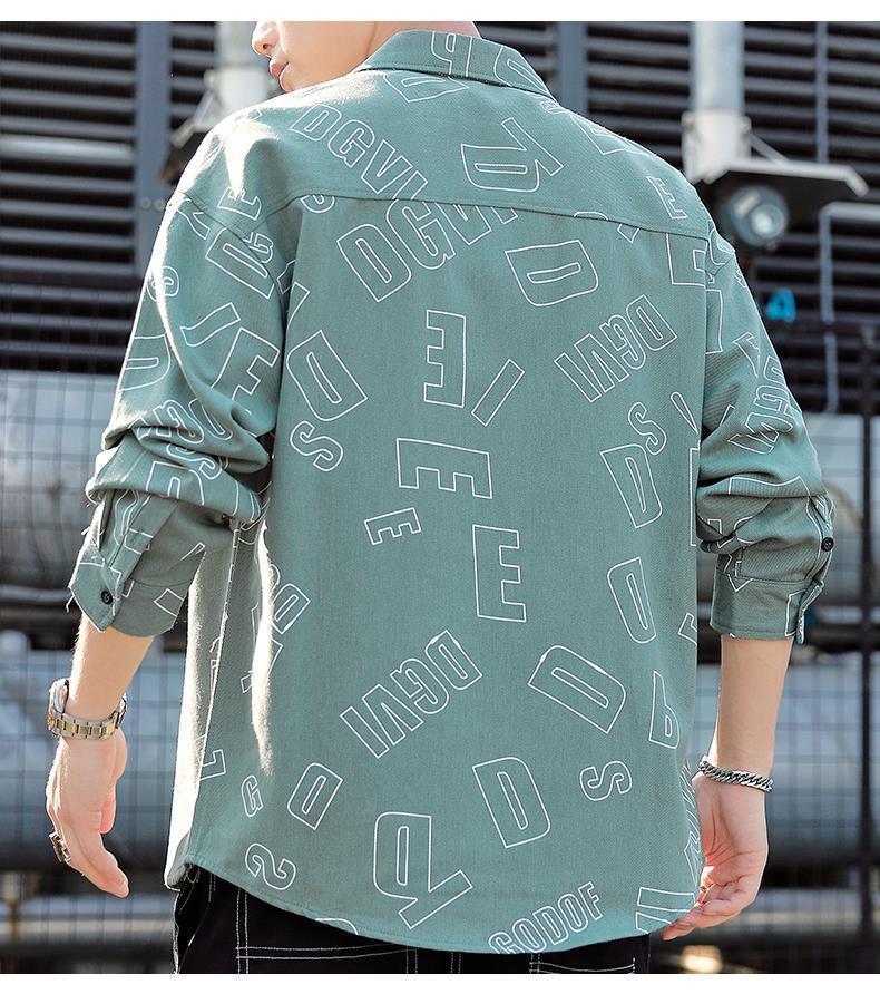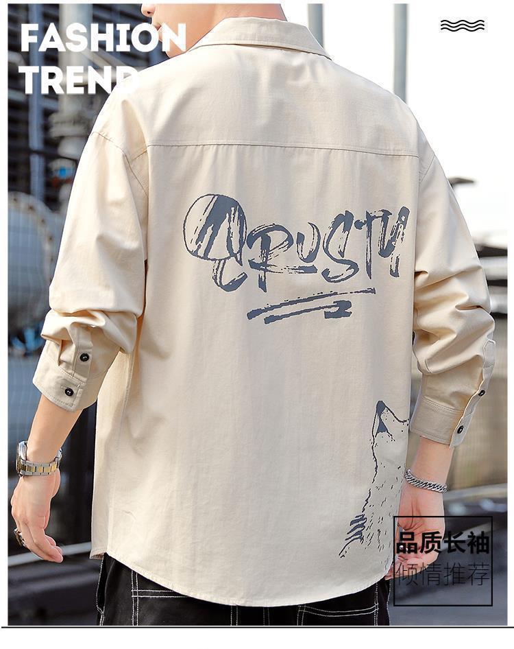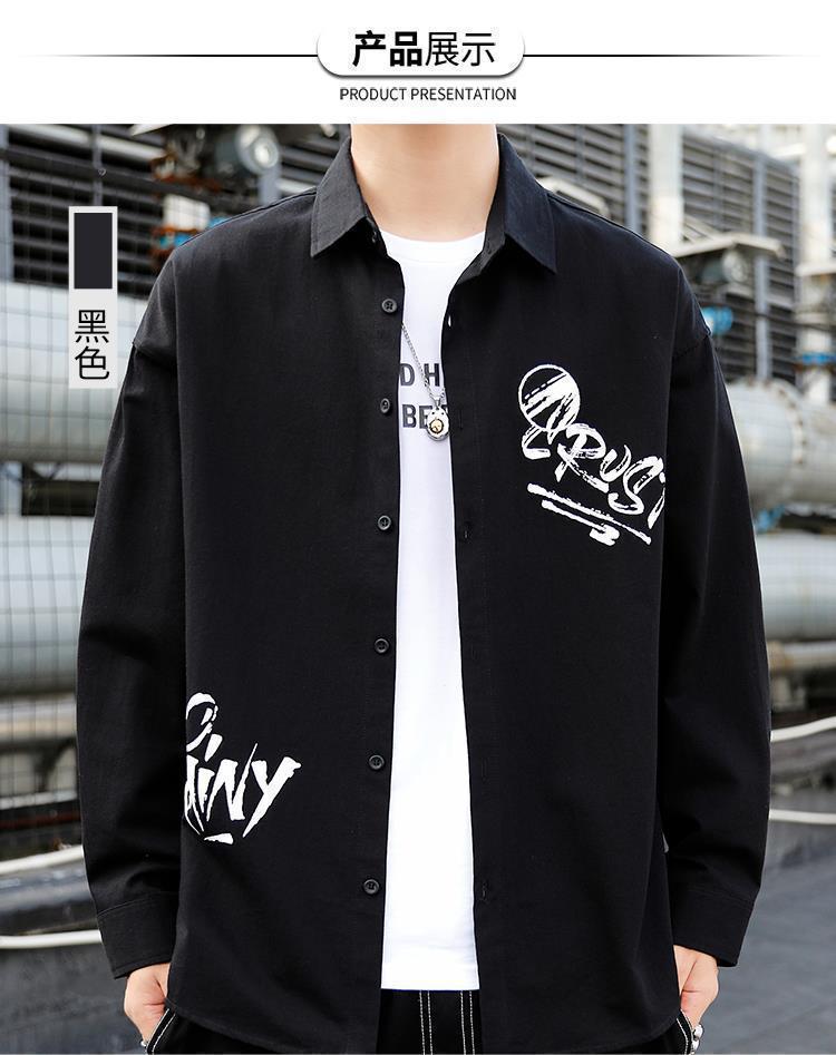 Compra Camisa informal de manga larga para hombre, nueva moda coreana, de primavera y otoño, con estampado holgado de marca de moda, chaqueta de trabajo de 12 pulgadas para hombre. al por mayor en Joom.pro