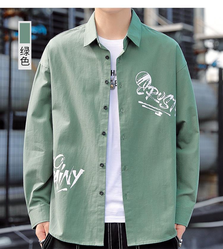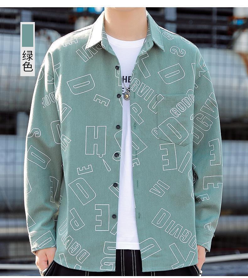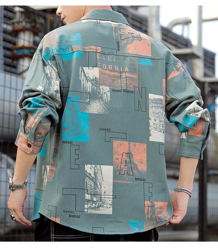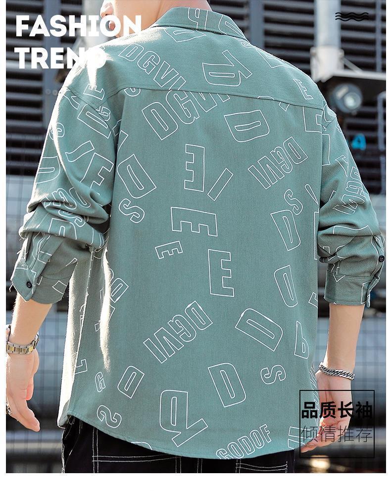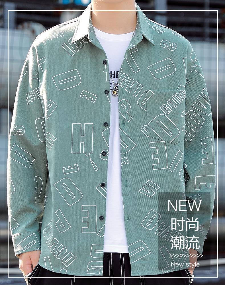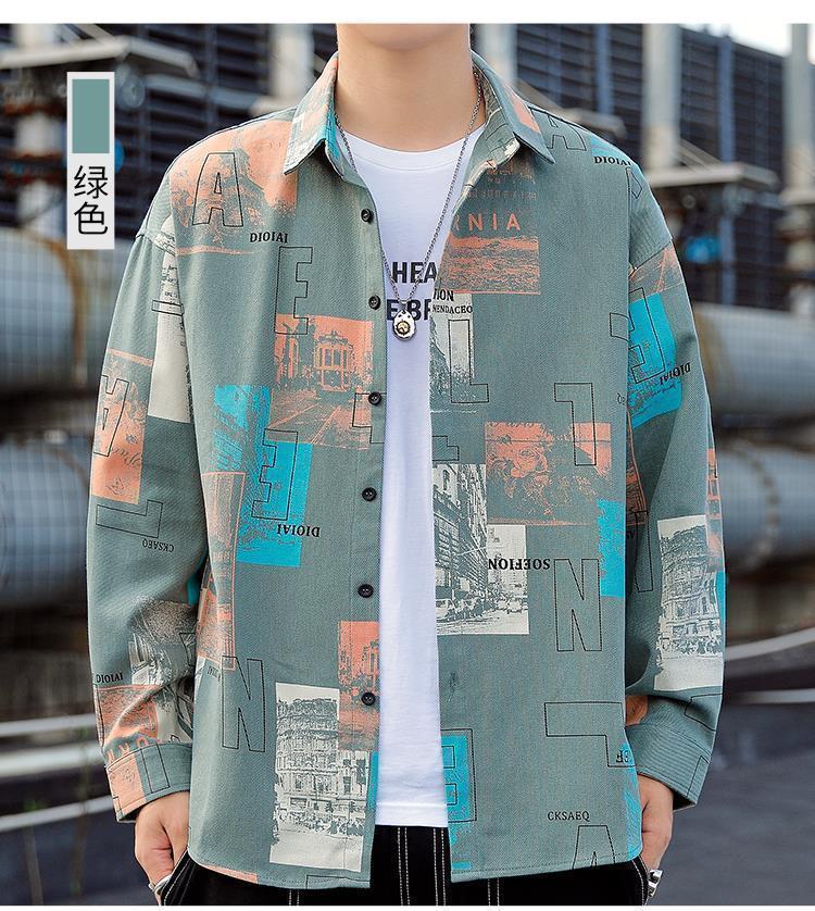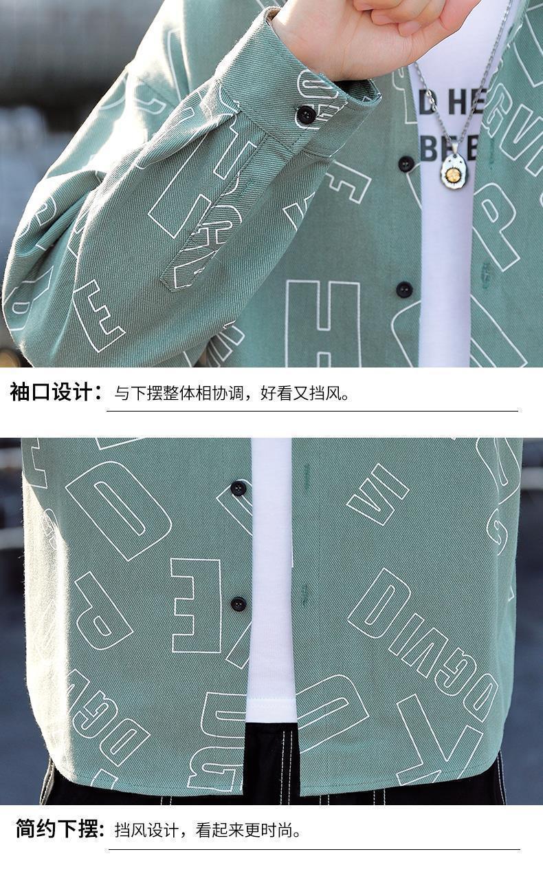 Compra Camisa informal de manga larga para hombre, nueva moda coreana, de primavera y otoño, con estampado holgado de marca de moda, chaqueta de trabajo de 12 pulgadas para hombre. al por mayor en Joom.pro
