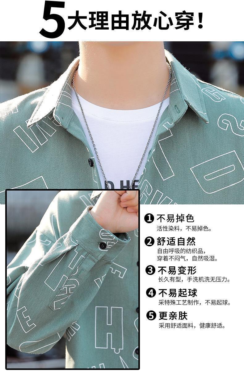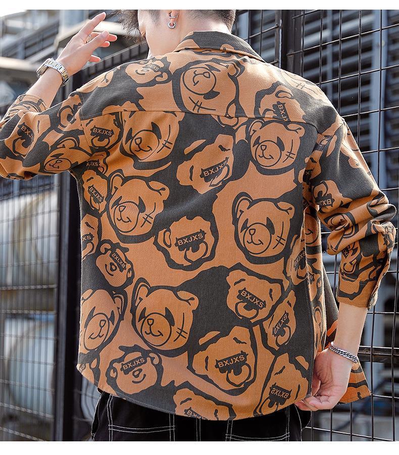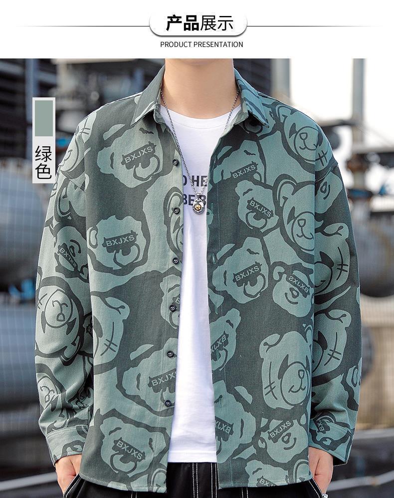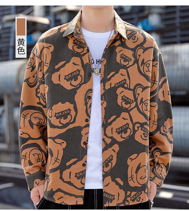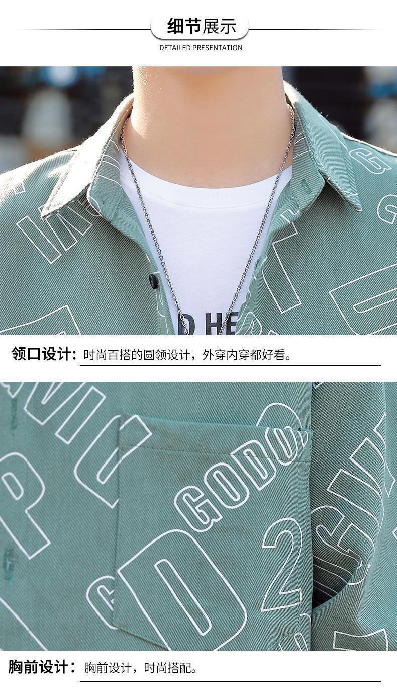 Compra Camisa informal de manga larga para hombre, nueva moda coreana, de primavera y otoño, con estampado holgado de marca de moda, chaqueta de trabajo de 12 pulgadas para hombre. al por mayor en Joom.pro