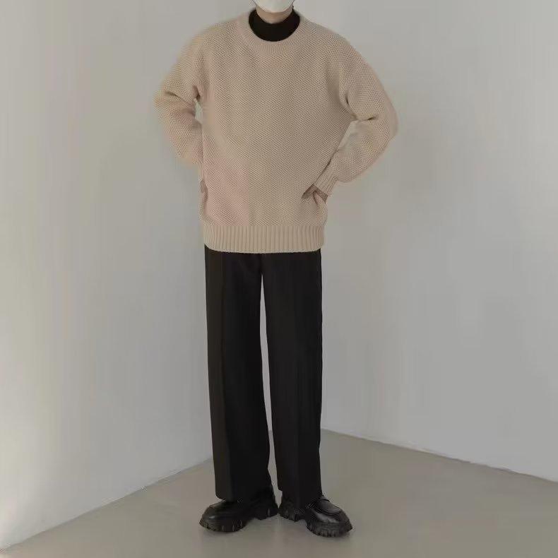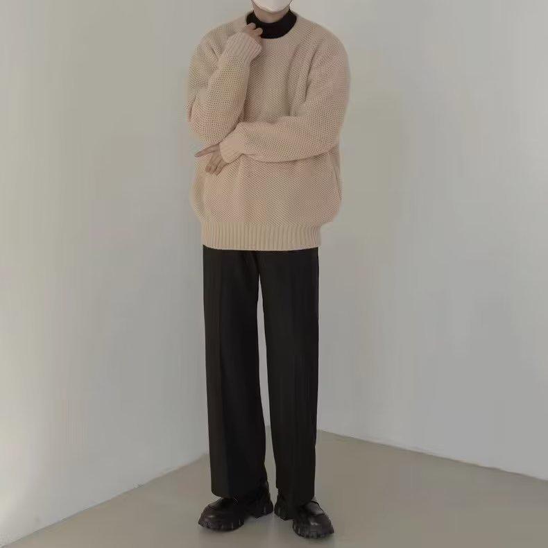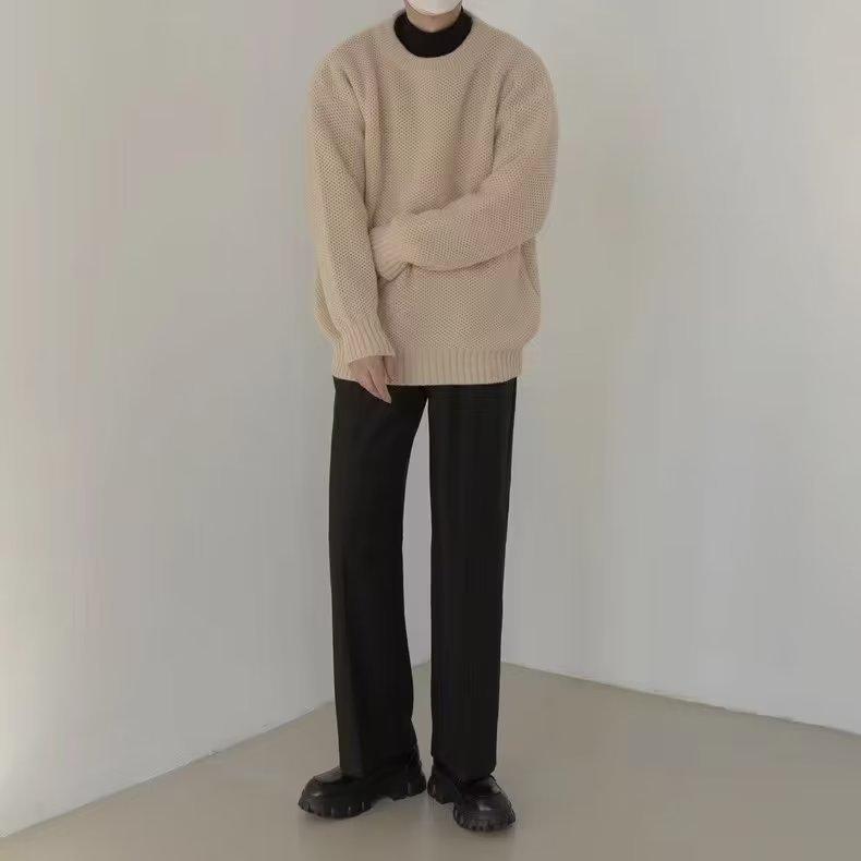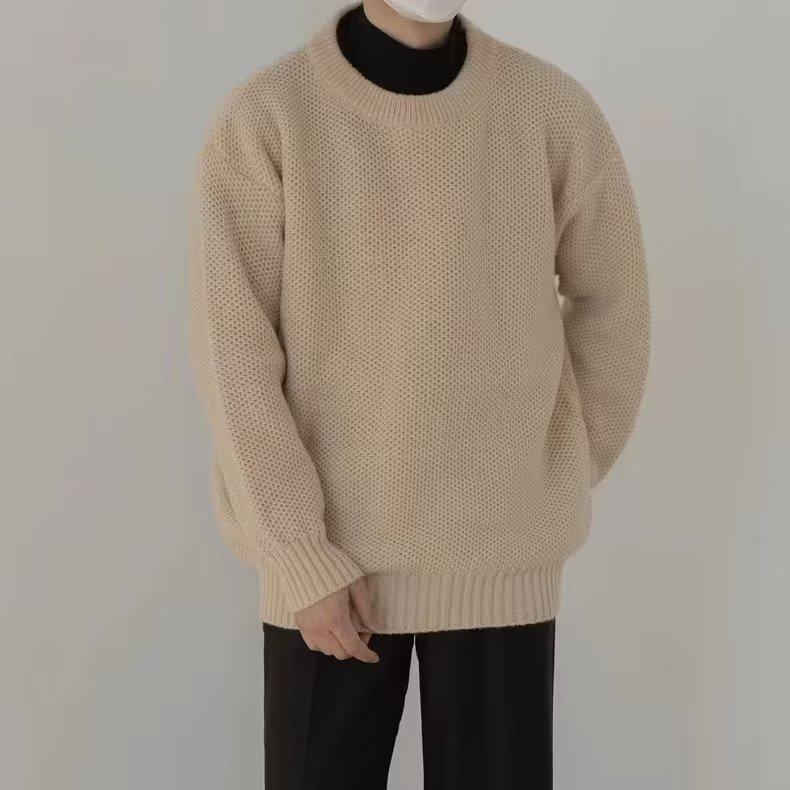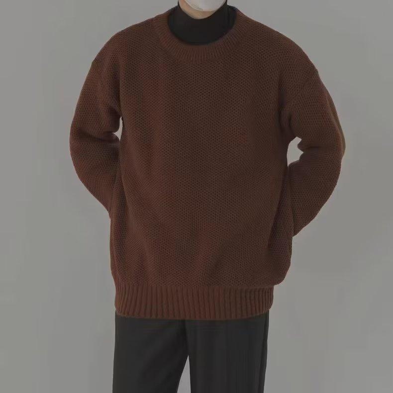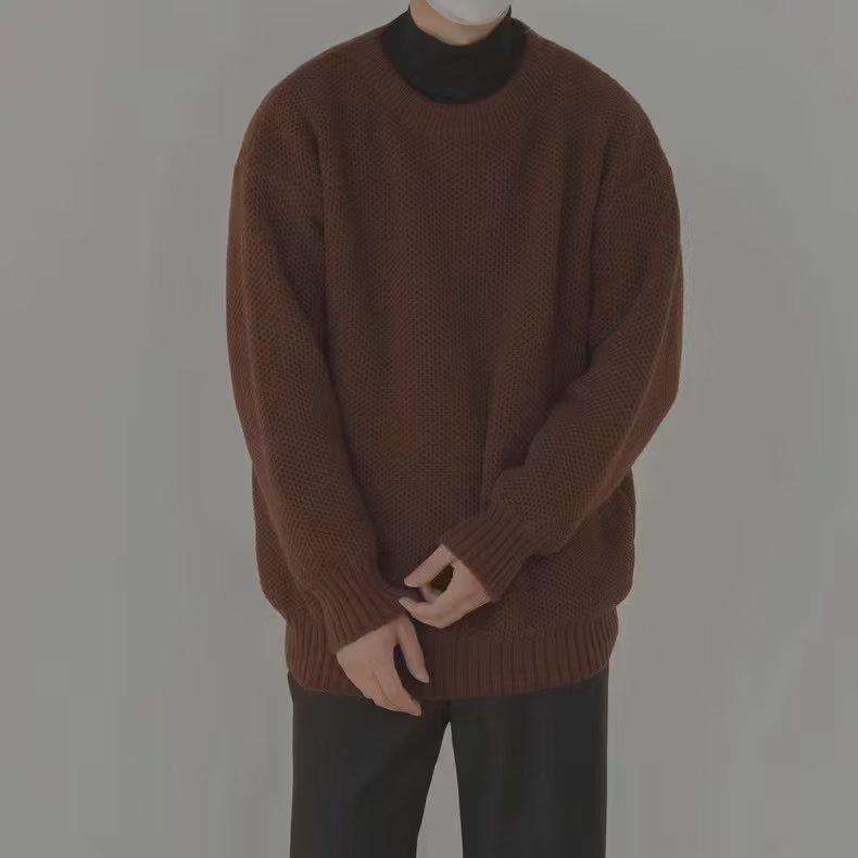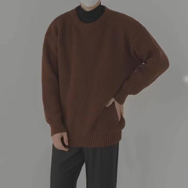 Compra Suéter de punto de manga larga interior suelta para hombre, de color sólido y pesado, para otoño e invierno al por mayor en Joom.pro