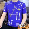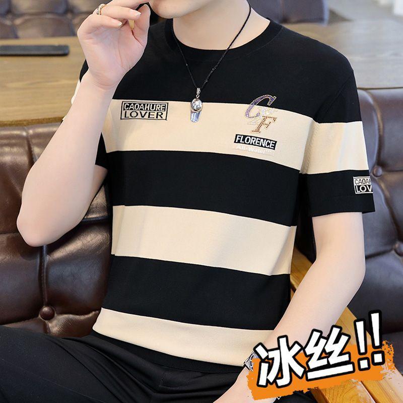 Comercio Exterior Etiqueta Cortada Camiseta de Manga Corta de Seda Helada para Hombre Cuello Redondo Delgada Estilo Europeo y Americano Guapo Combinable Manga Corta Camiseta Casual