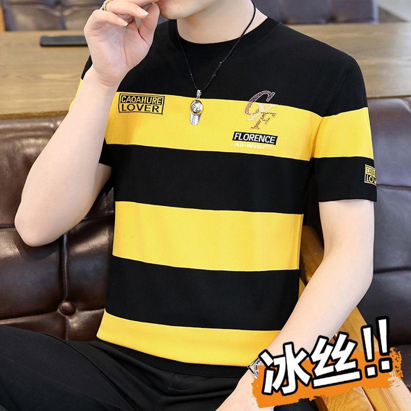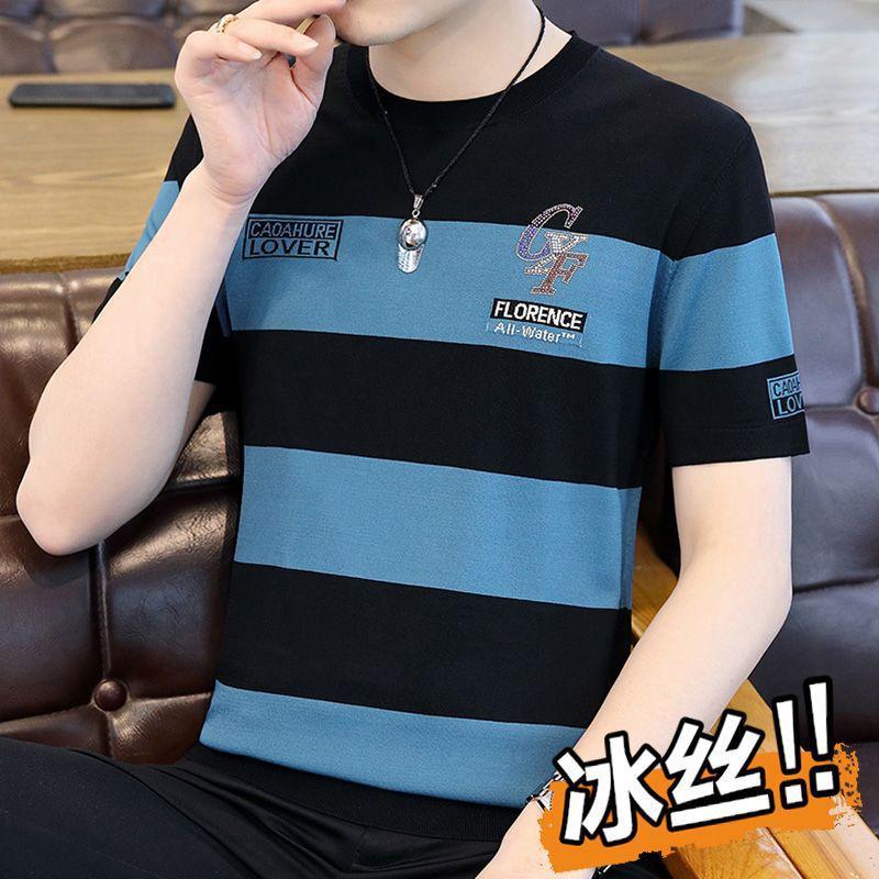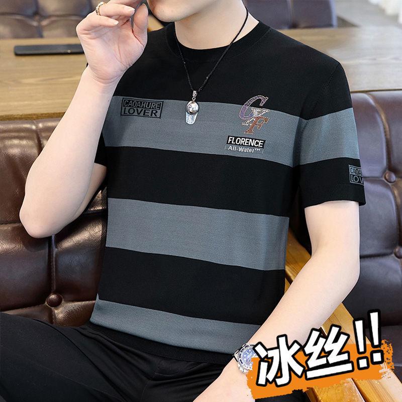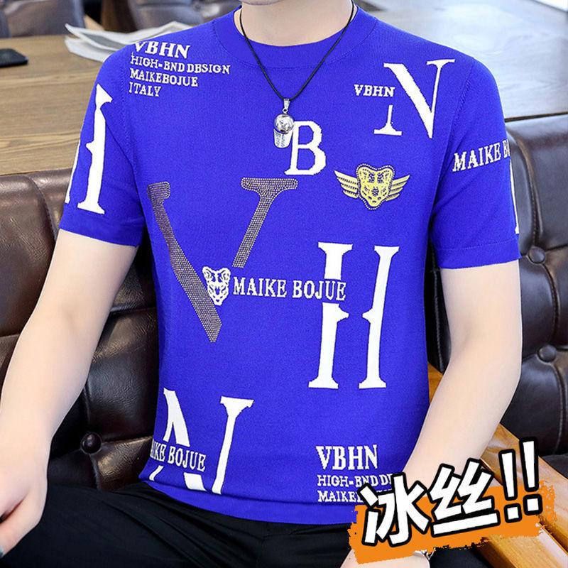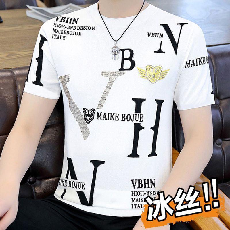 Compra Comercio Exterior Etiqueta Cortada Camiseta de Manga Corta de Seda Helada para Hombre Cuello Redondo Delgada Estilo Europeo y Americano Guapo Combinable Manga Corta Camiseta Casual al por mayor en Joom.pro