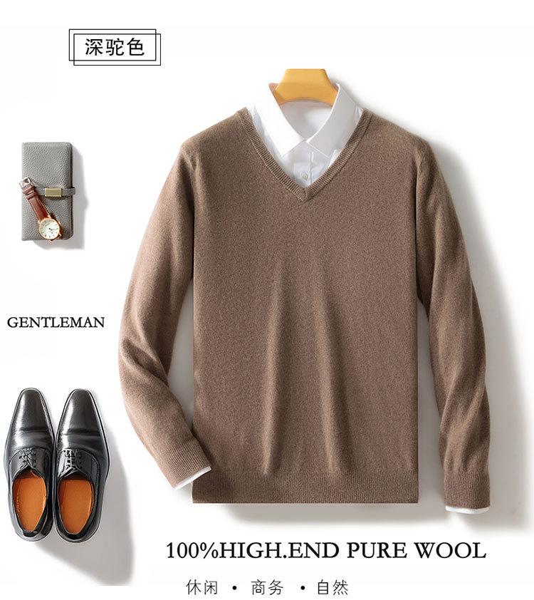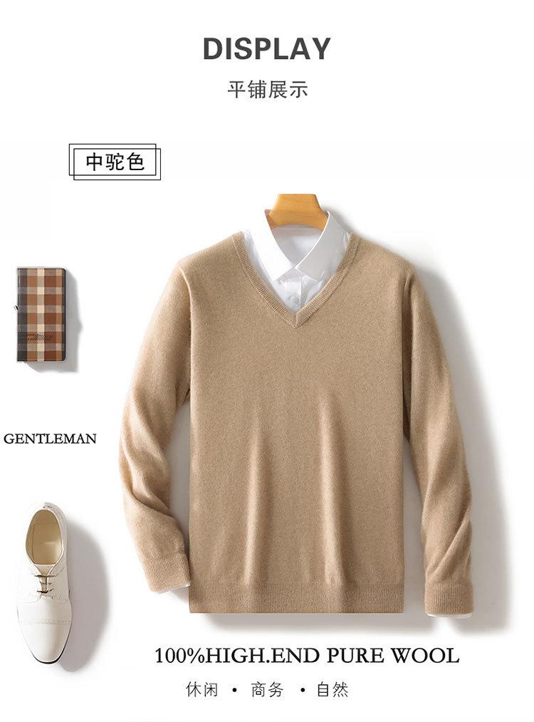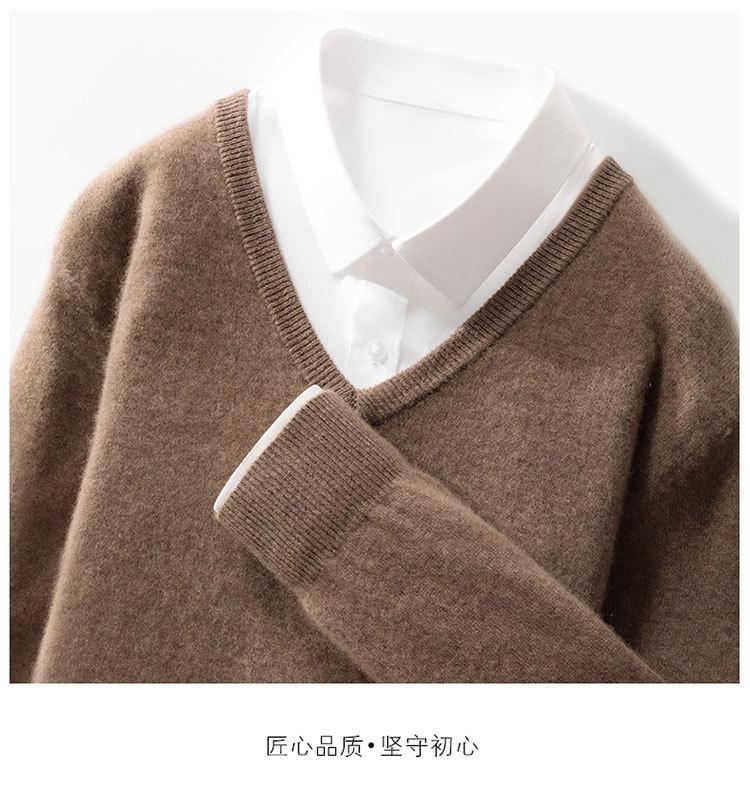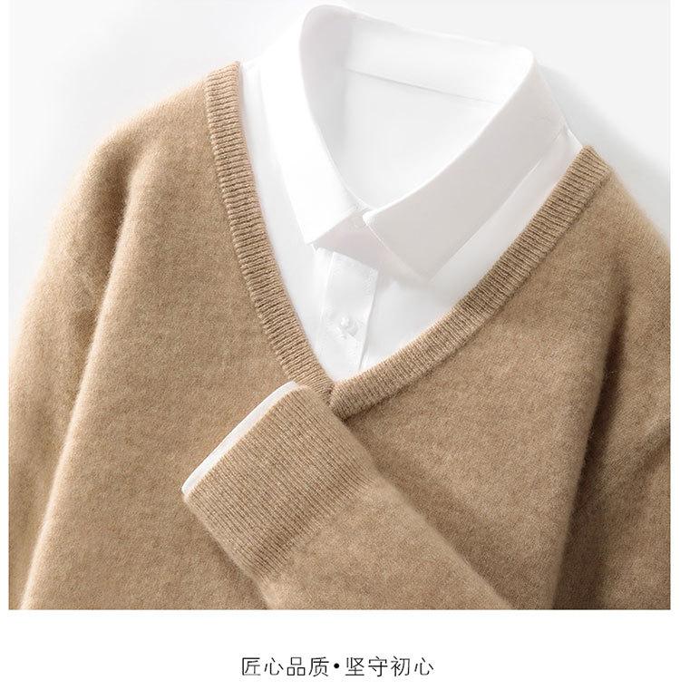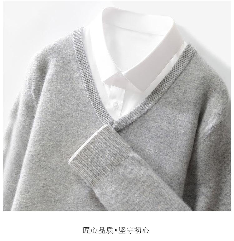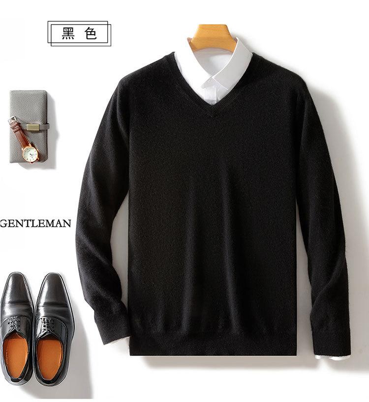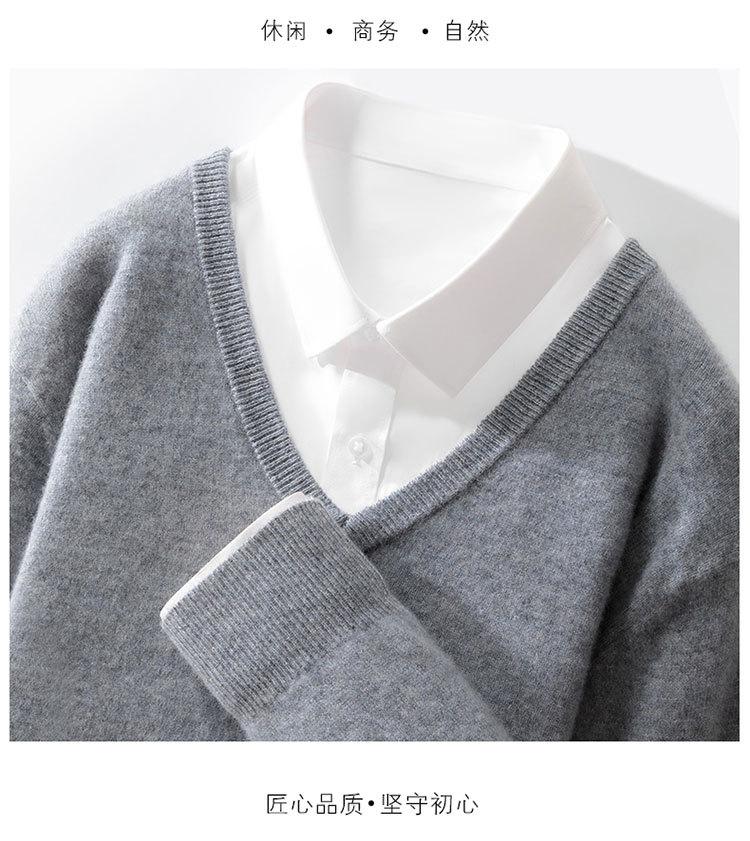 Compra Suéter de cuello en V para hombre, jersey de color liso, básico, de talla grande, holgado, informal, de punto, de cachemira, para otoño e invierno. al por mayor en Joom.pro