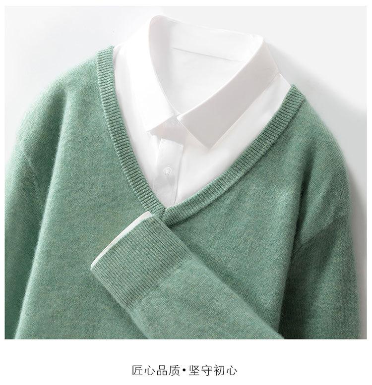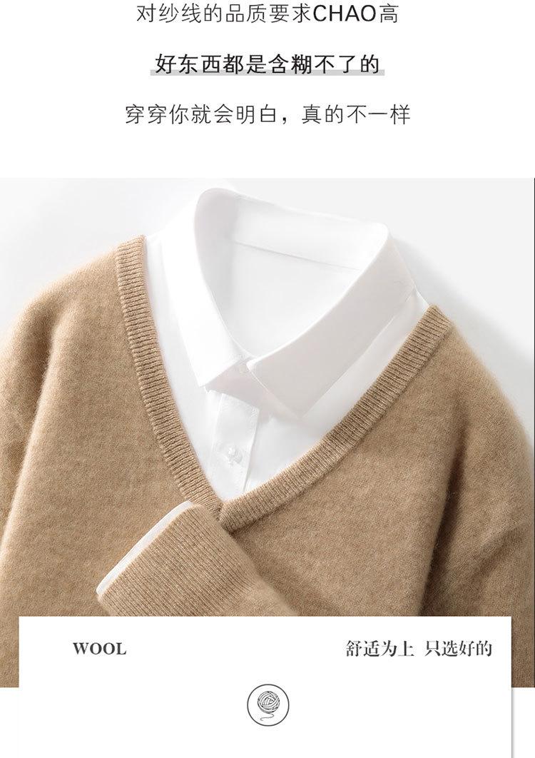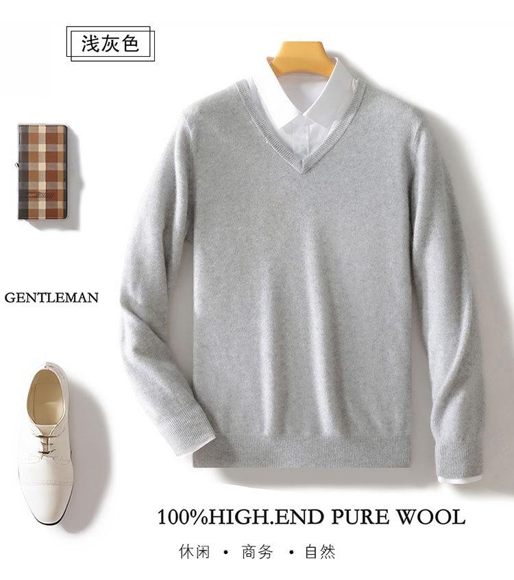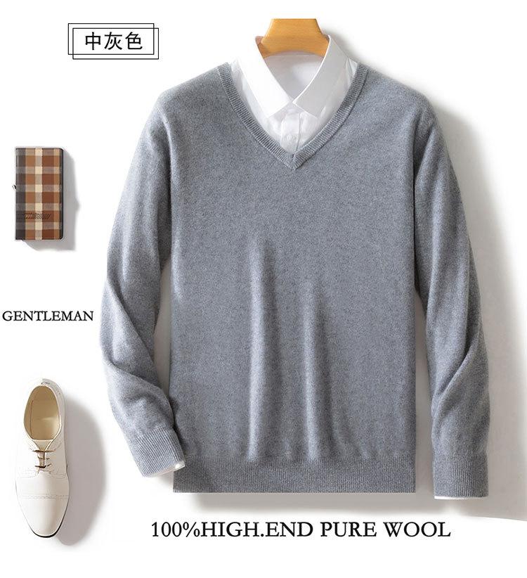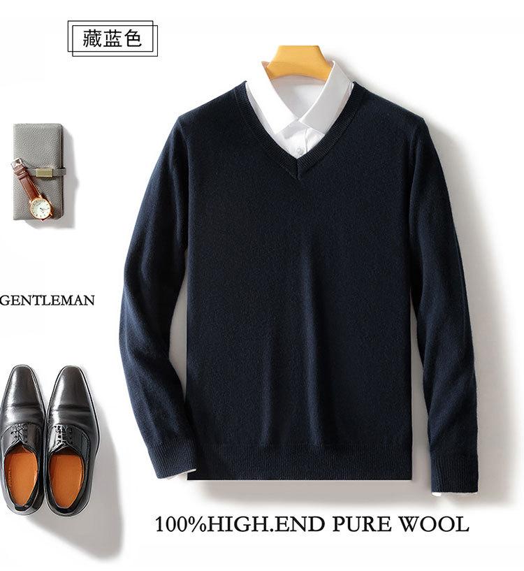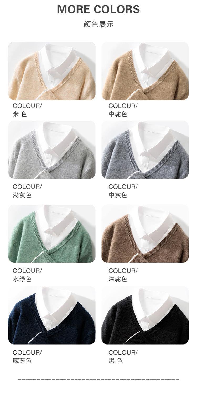 Compra Suéter de cuello en V para hombre, jersey de color liso, básico, de talla grande, holgado, informal, de punto, de cachemira, para otoño e invierno. al por mayor en Joom.pro