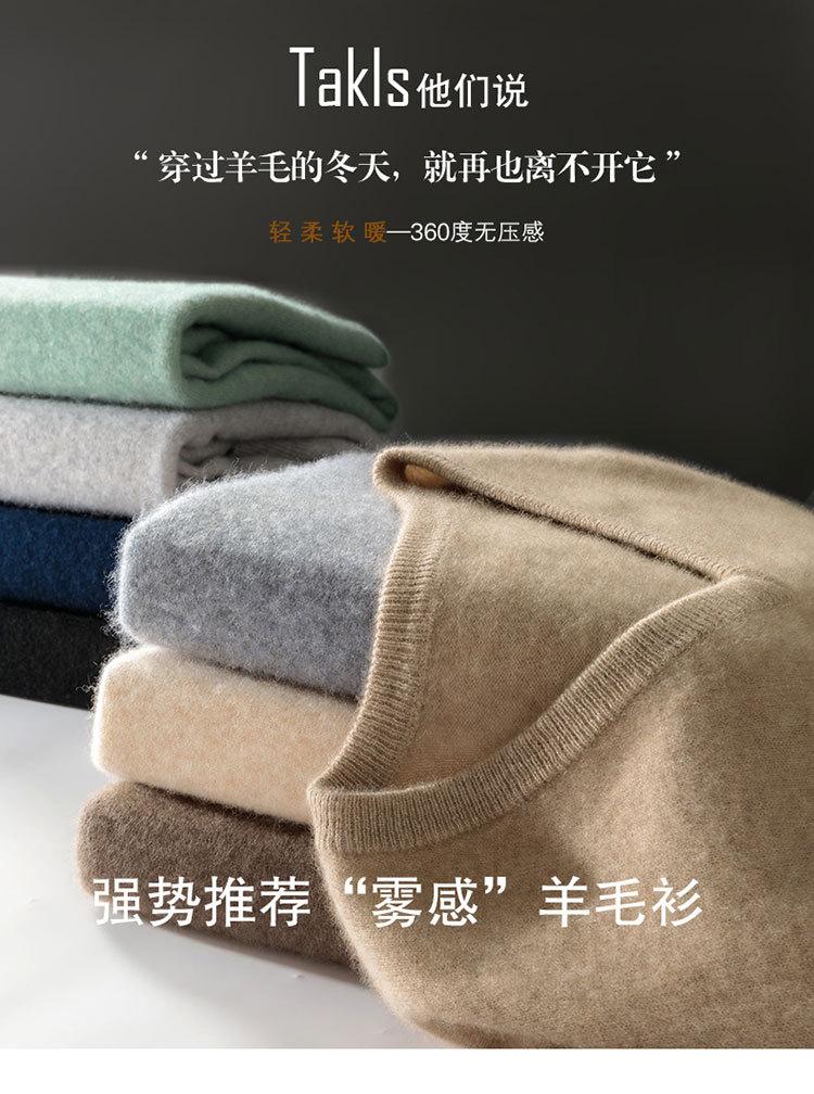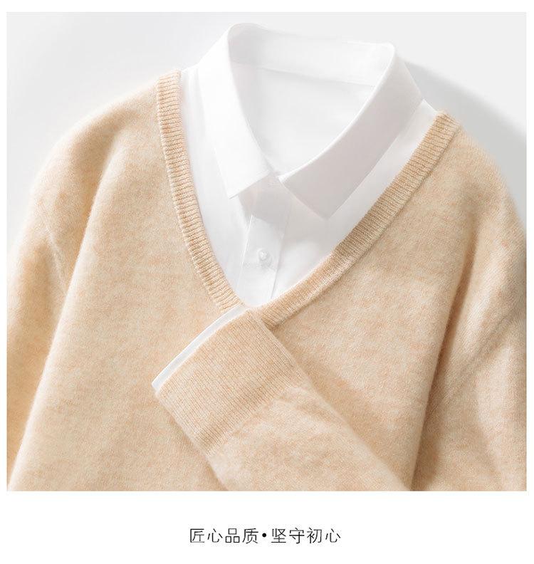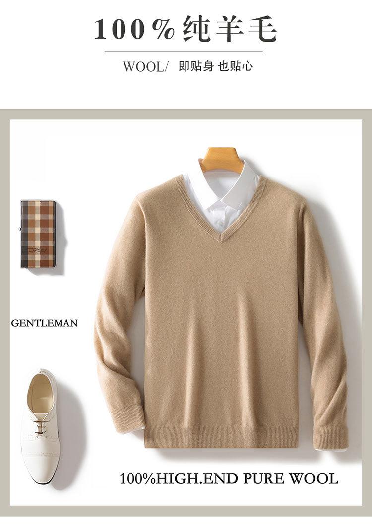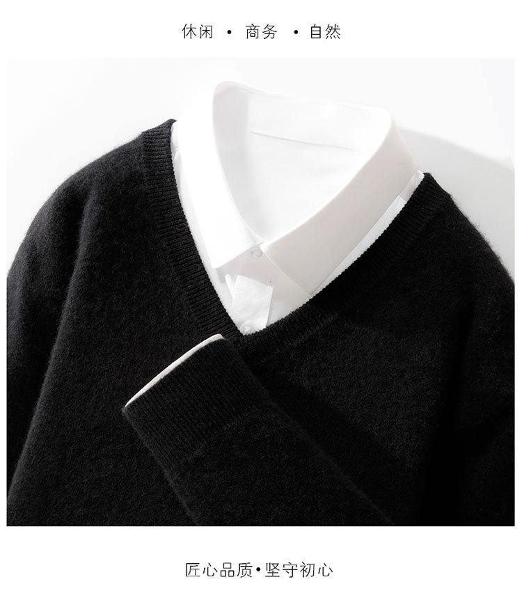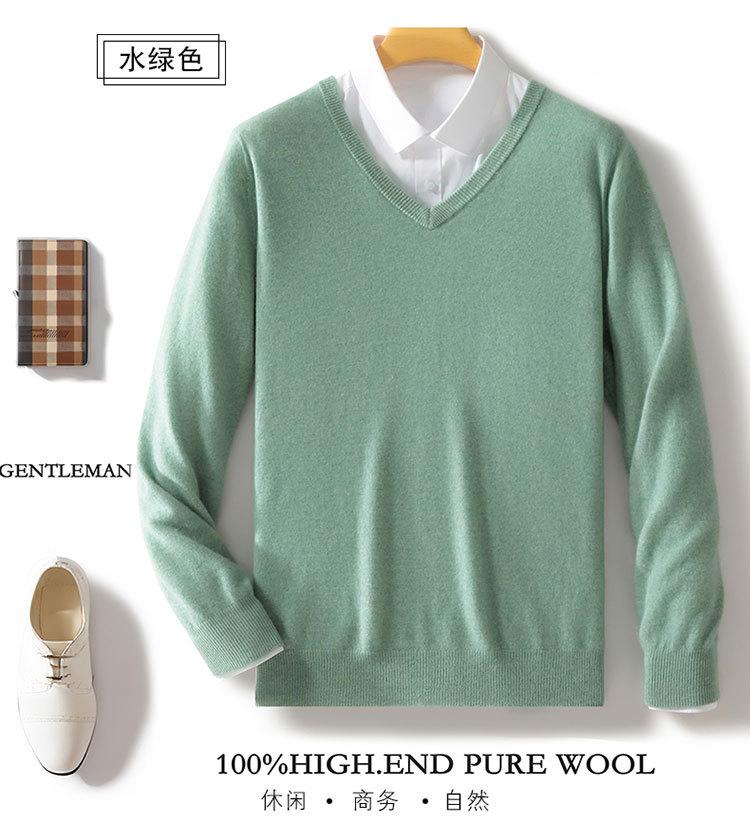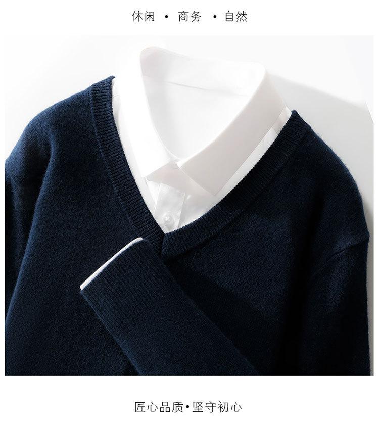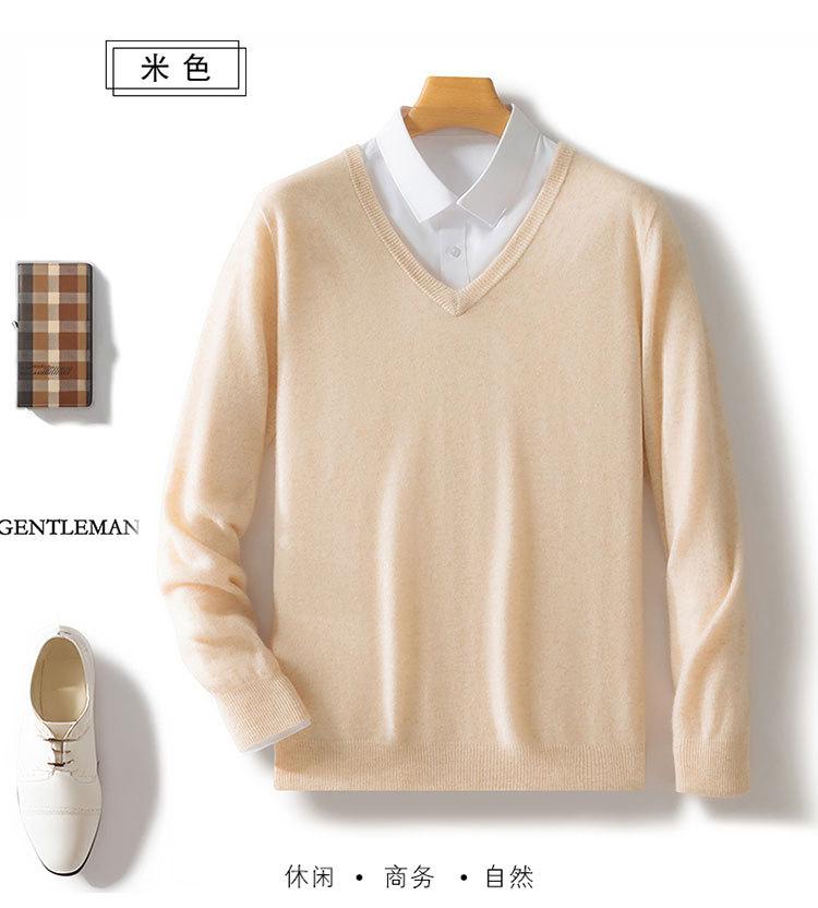 Compra Suéter de cuello en V para hombre, jersey de color liso, básico, de talla grande, holgado, informal, de punto, de cachemira, para otoño e invierno. al por mayor en Joom.pro