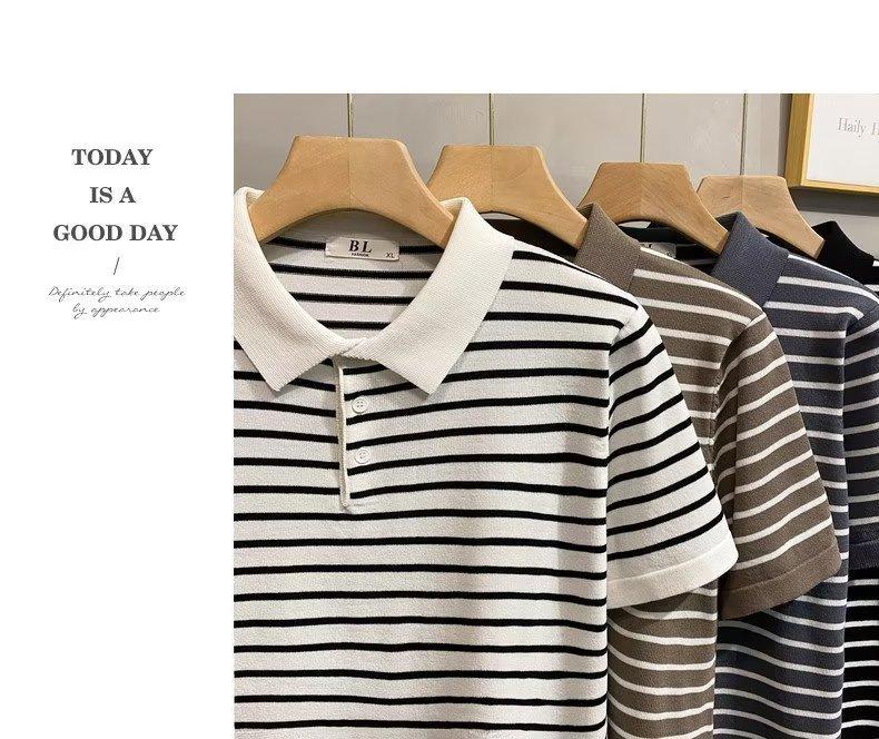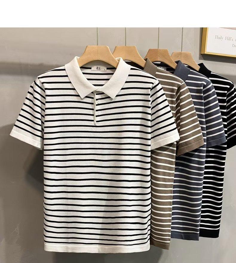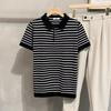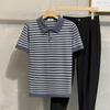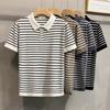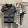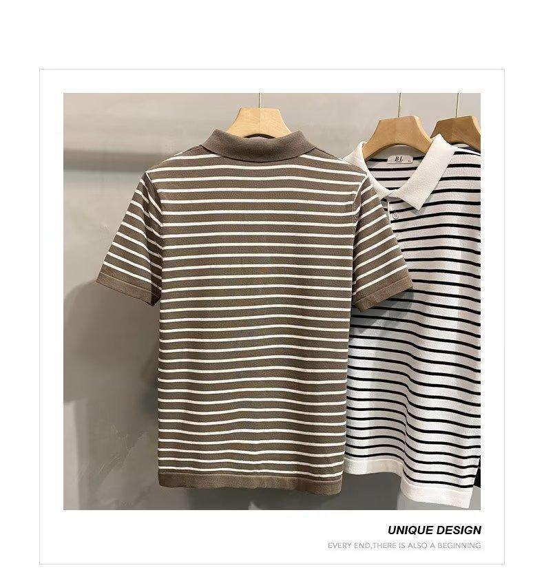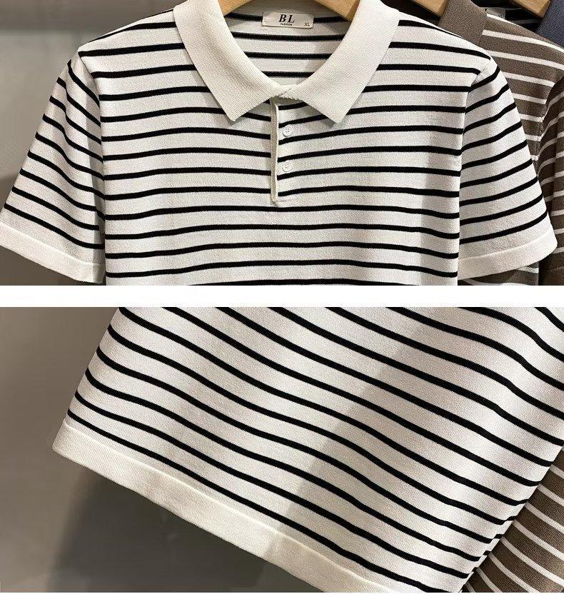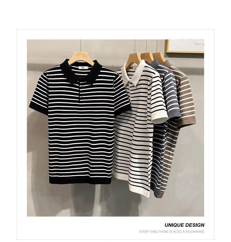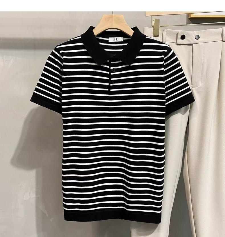 Polo de punto retro de verano para hombre Moda americana Raya blanca y negra Manga corta Ajustado Transpirable Top casual