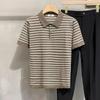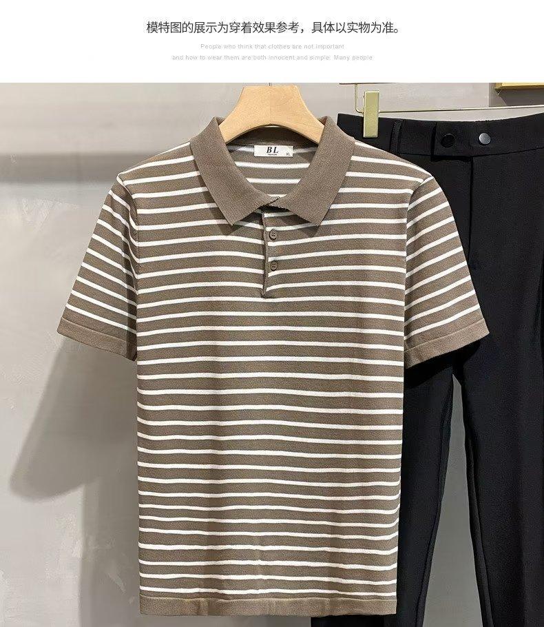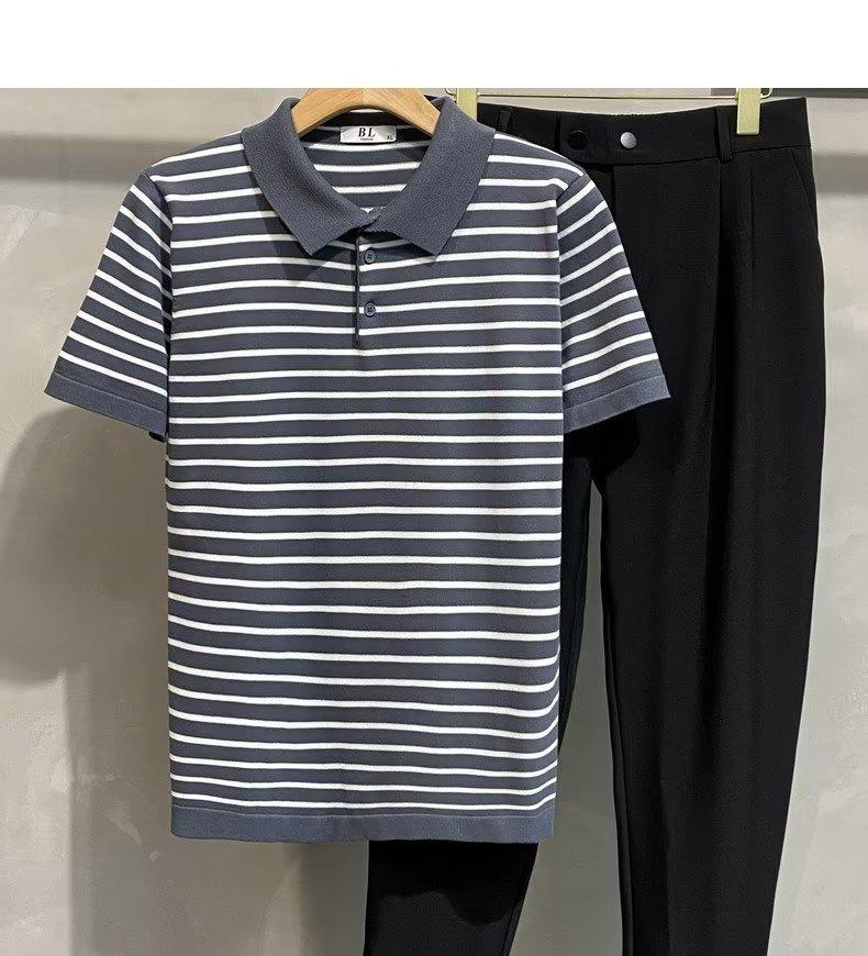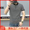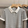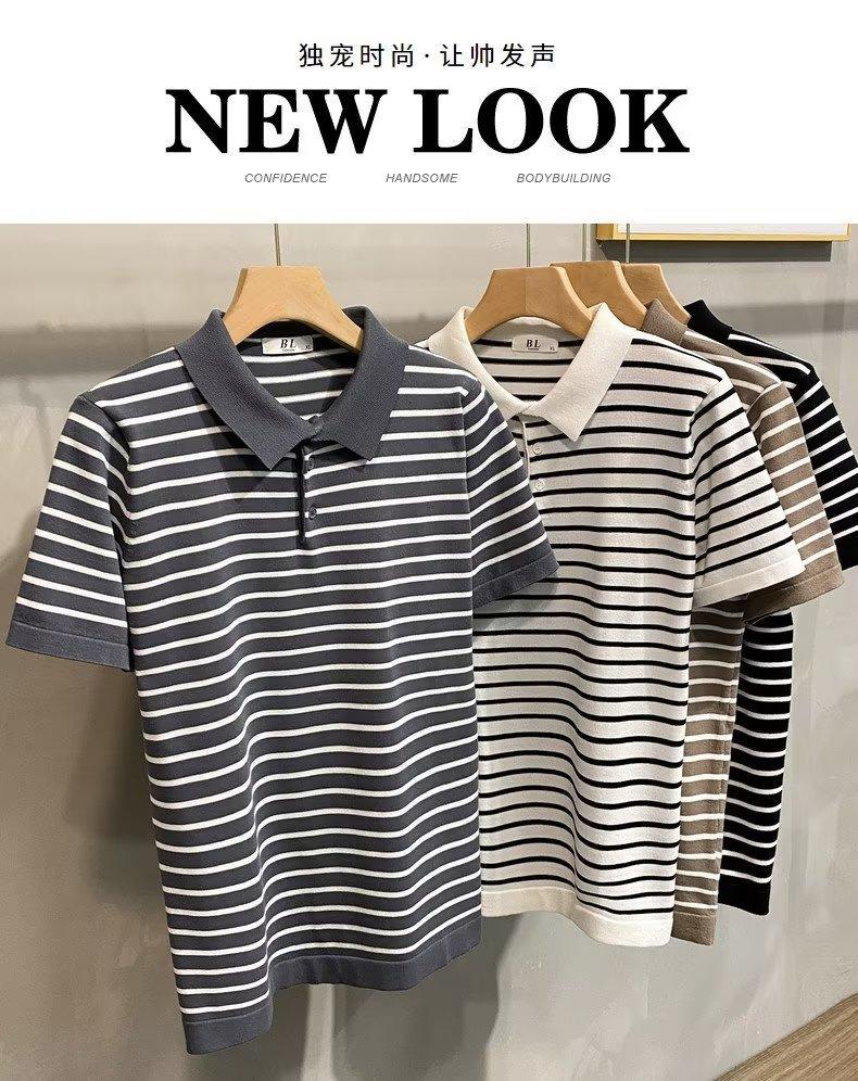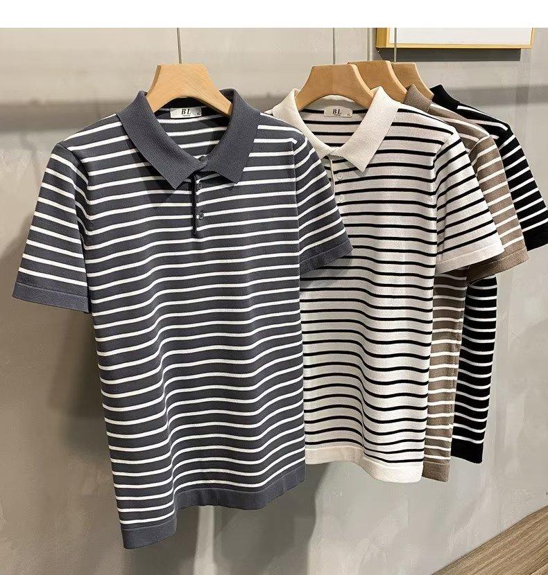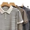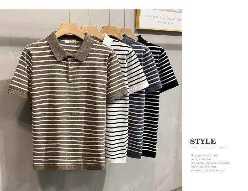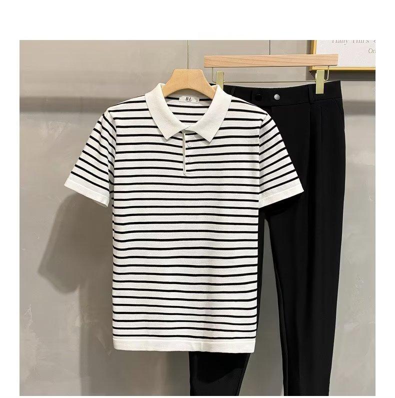 Polo de punto retro de verano para hombre Moda americana Raya blanca y negra Manga corta Ajustado Transpirable Top casual
