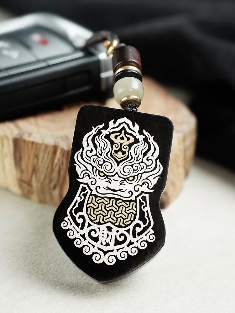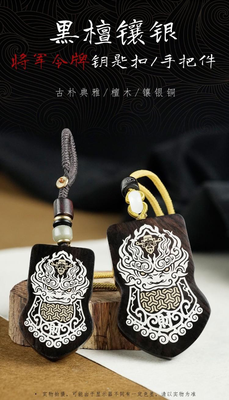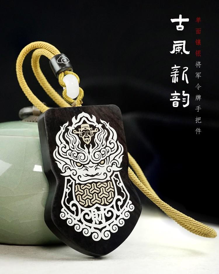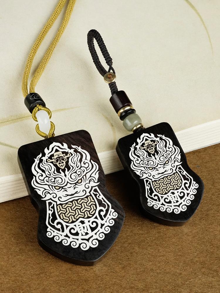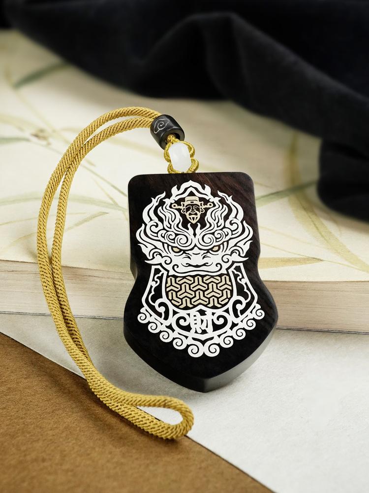 Madera de Ébano Incrustada con Plata Orden del General Tang Xuanjia Colgante para Coche Sándalo Morado Incrustado Llavero de Armadura Adorno Hecho a Medida