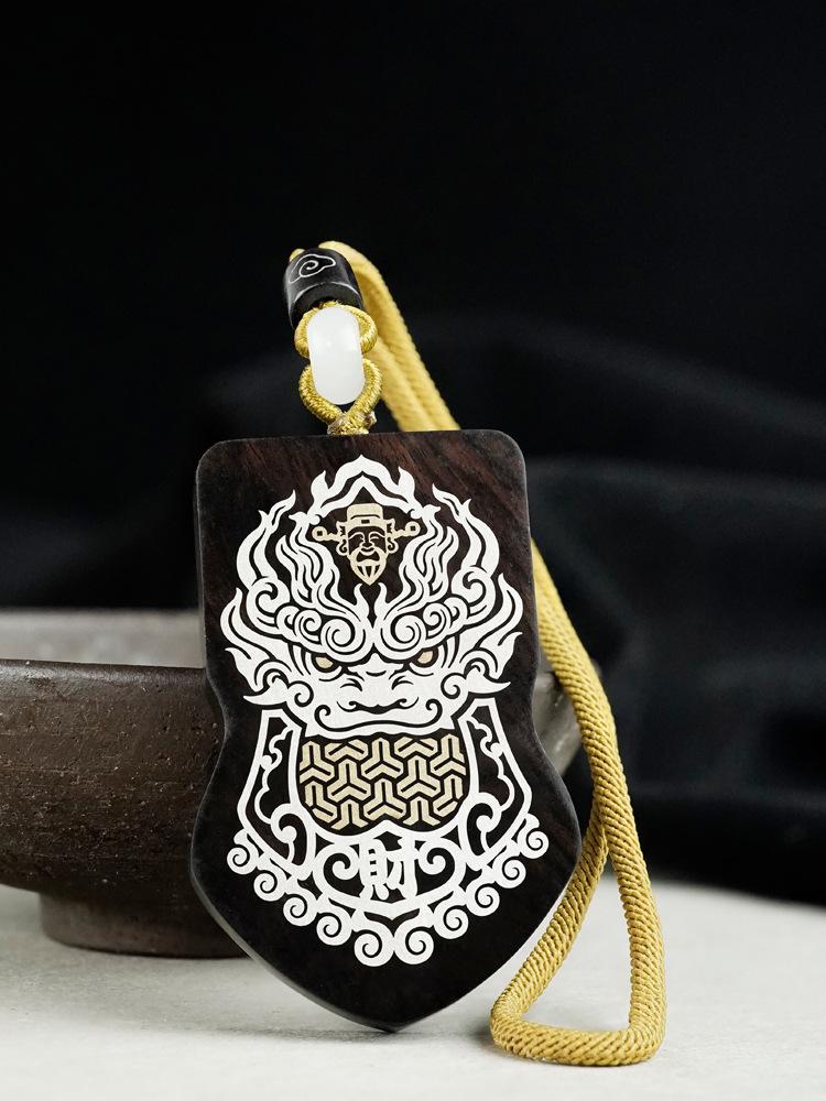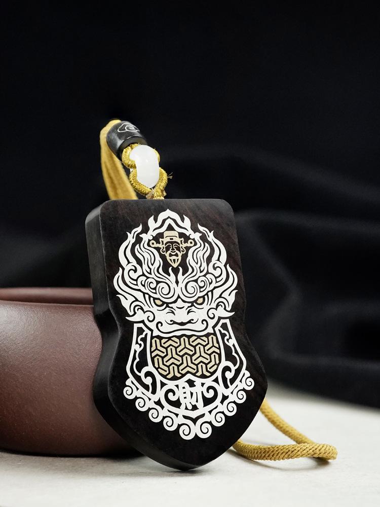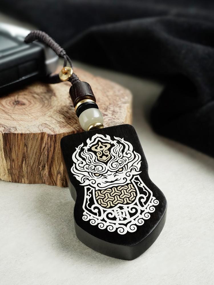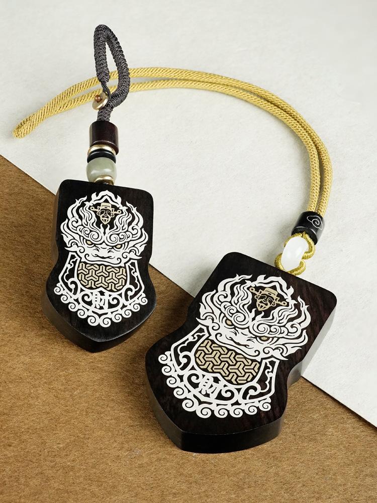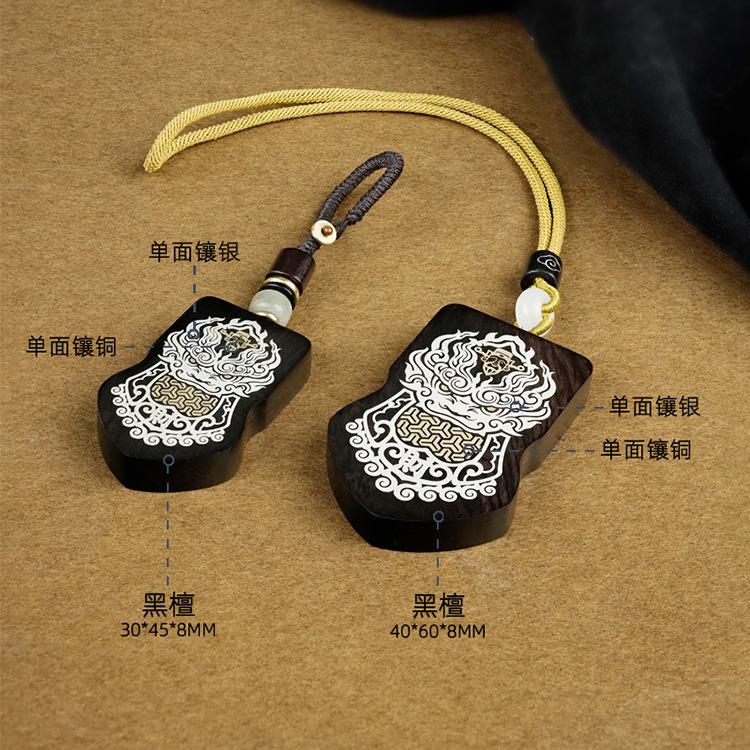 Madera de Ébano Incrustada con Plata Orden del General Tang Xuanjia Colgante para Coche Sándalo Morado Incrustado Llavero de Armadura Adorno Hecho a Medida