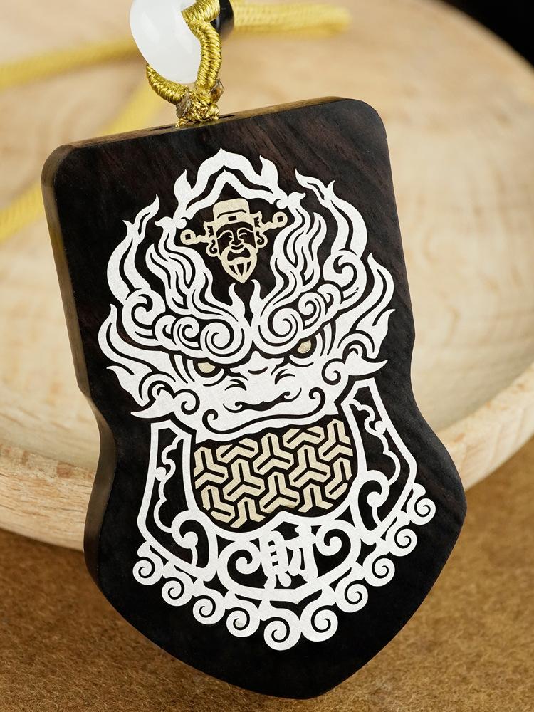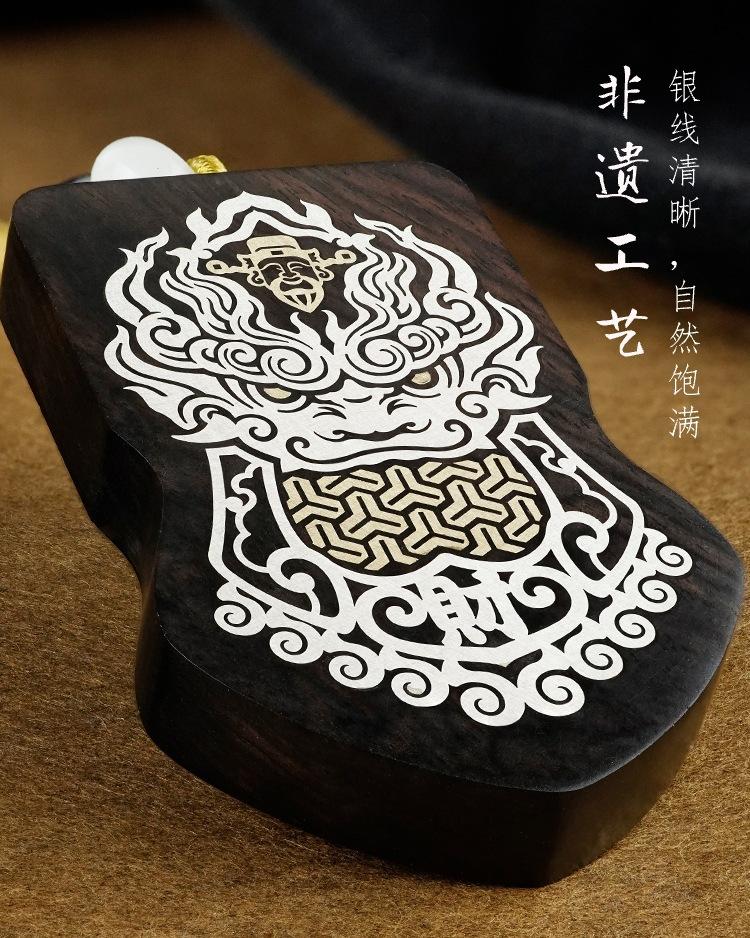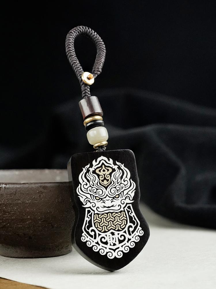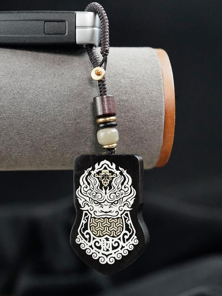Ebony inlaid silver copper keychain [god of wealth]