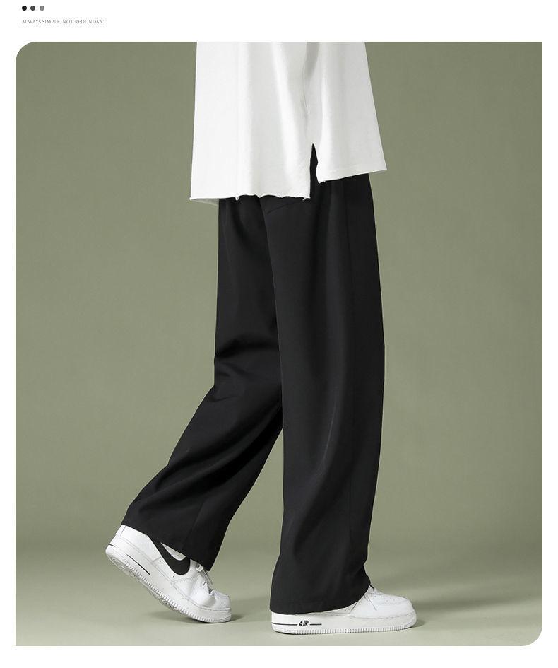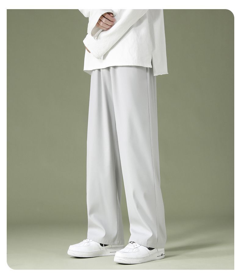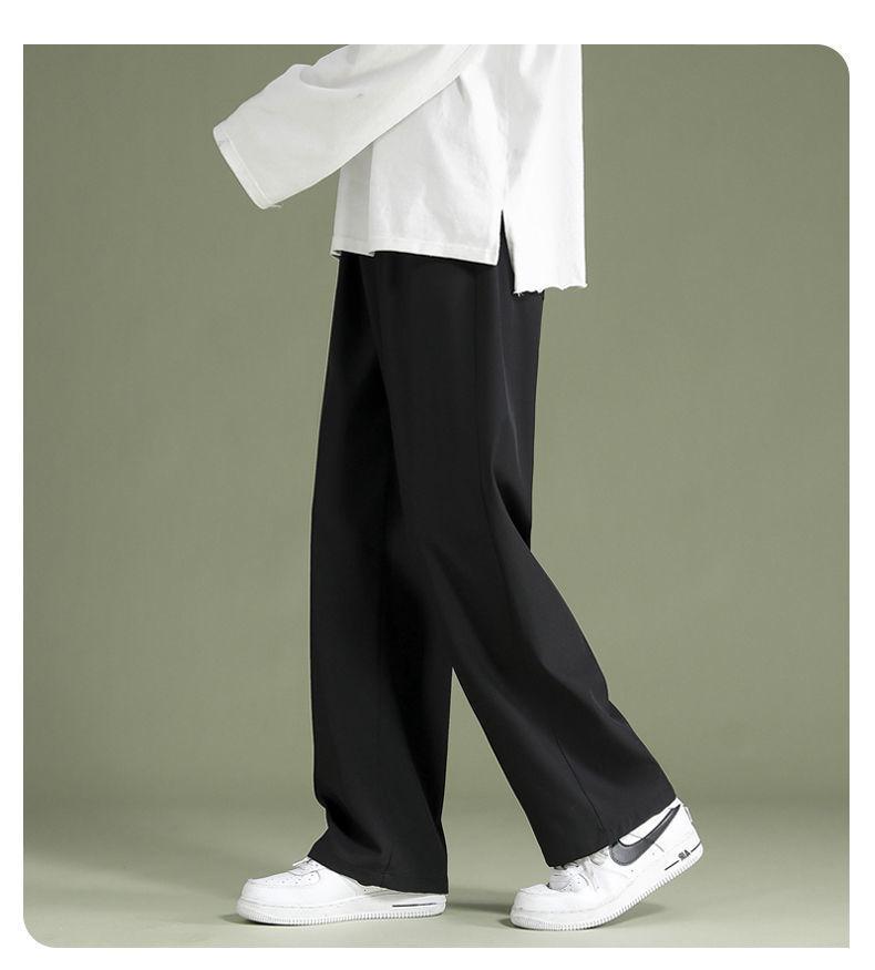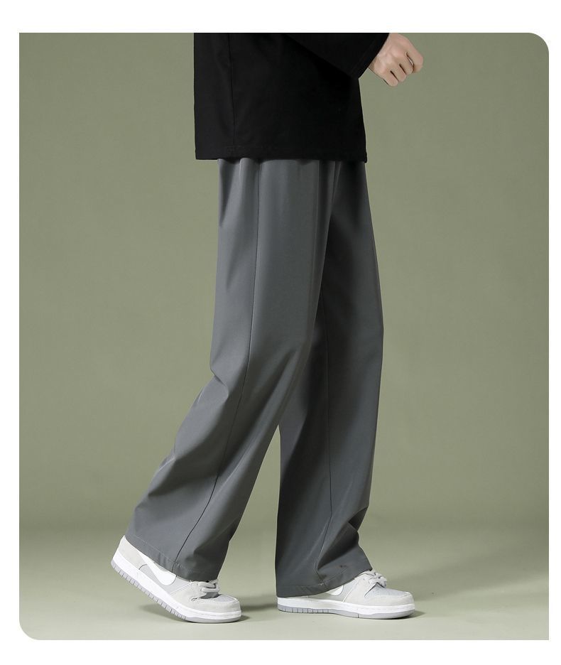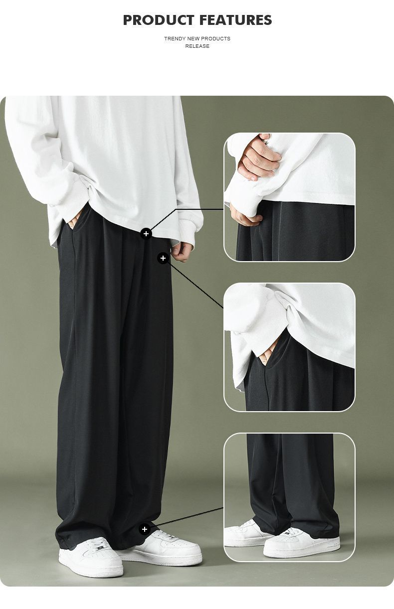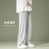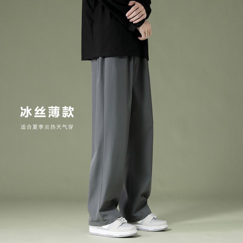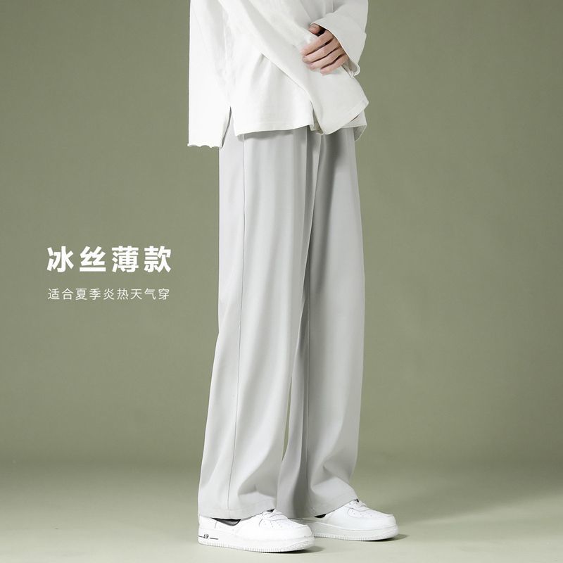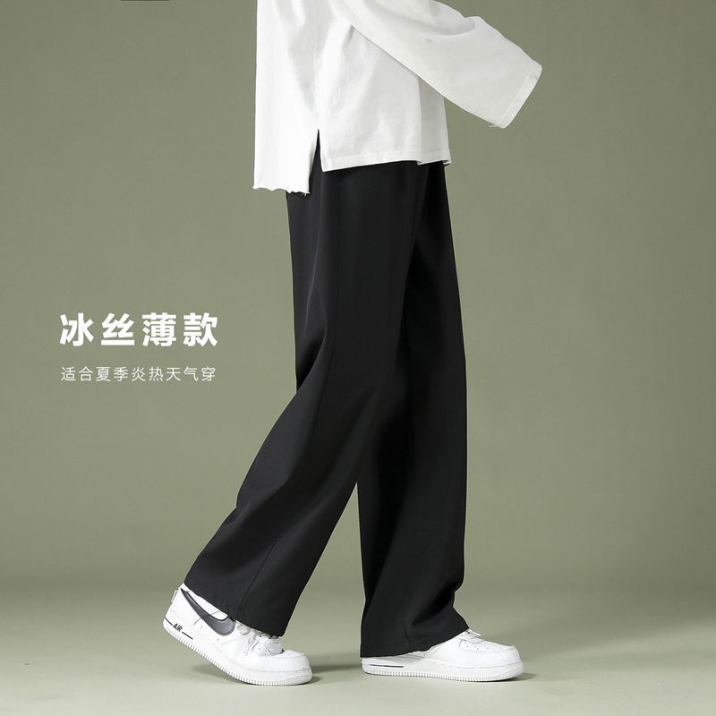 Pantalones de Seda de Hielo Negros para Hombre Verano Sueltos Modernos Combinables Pantalones Rectos Colgante Pierna Ancha Casuales