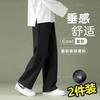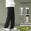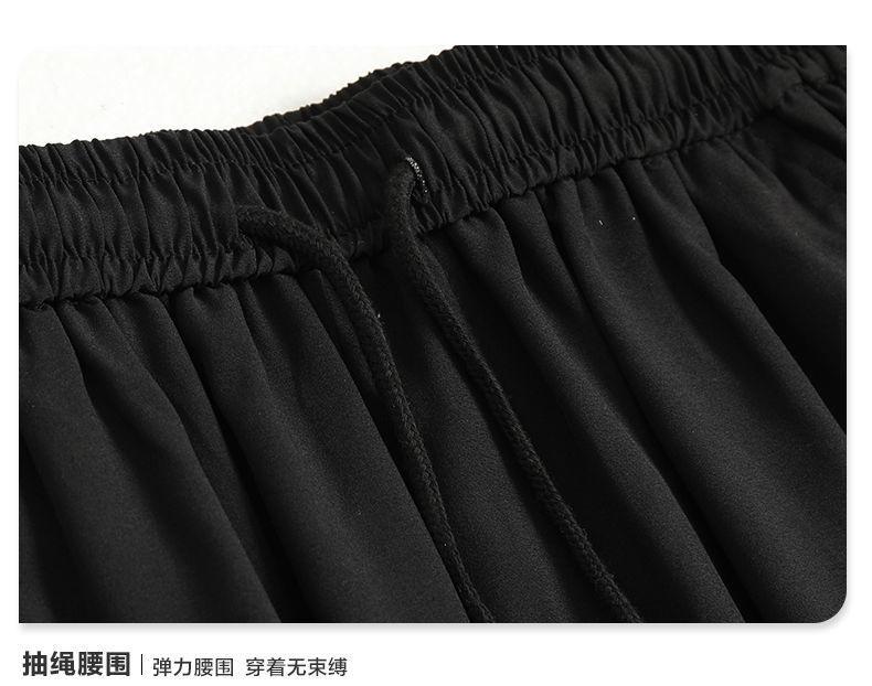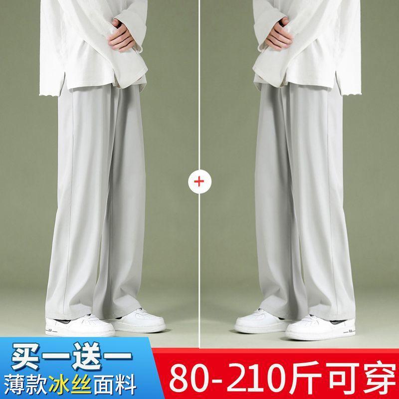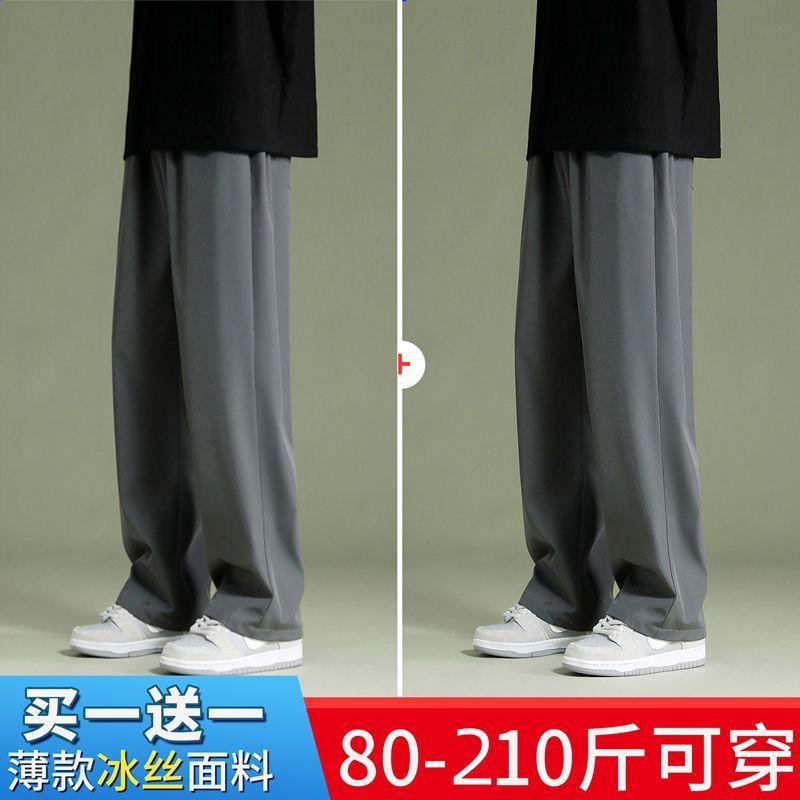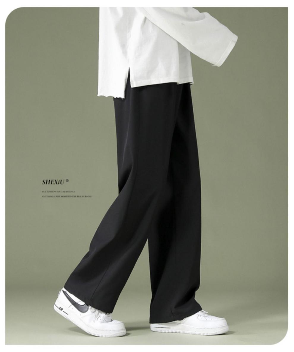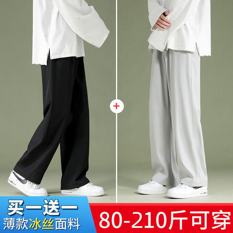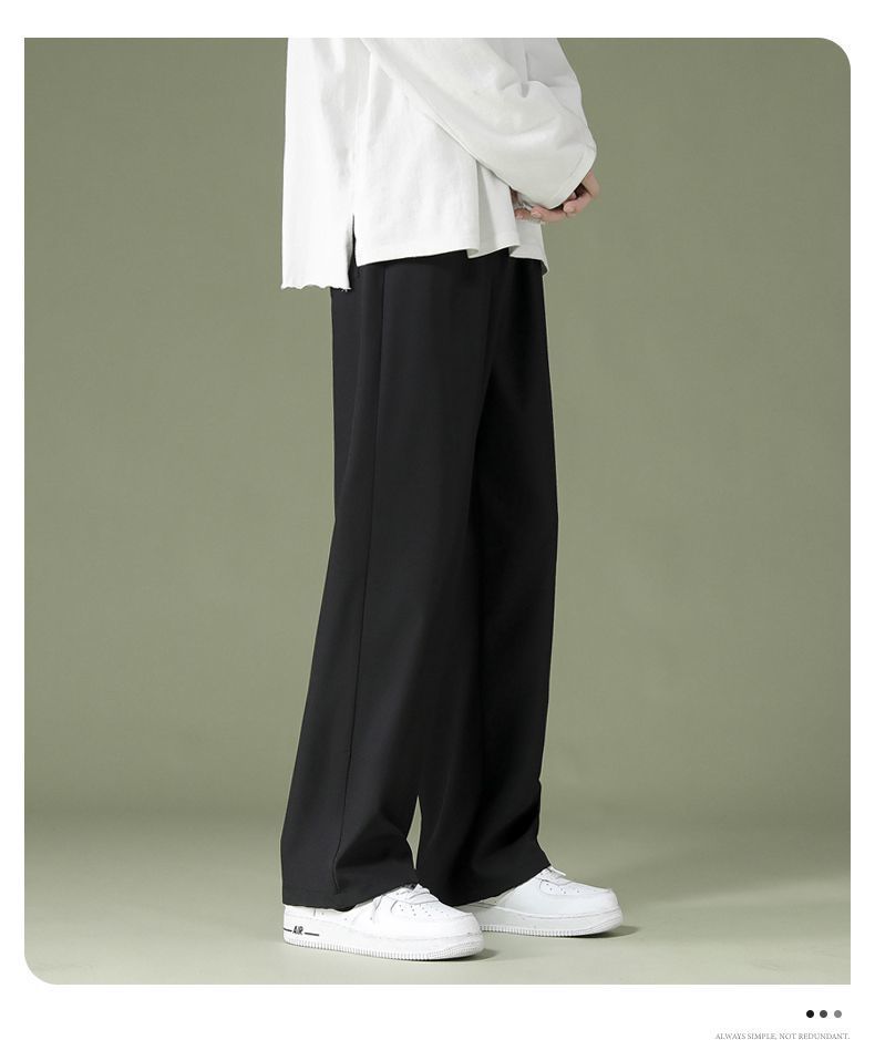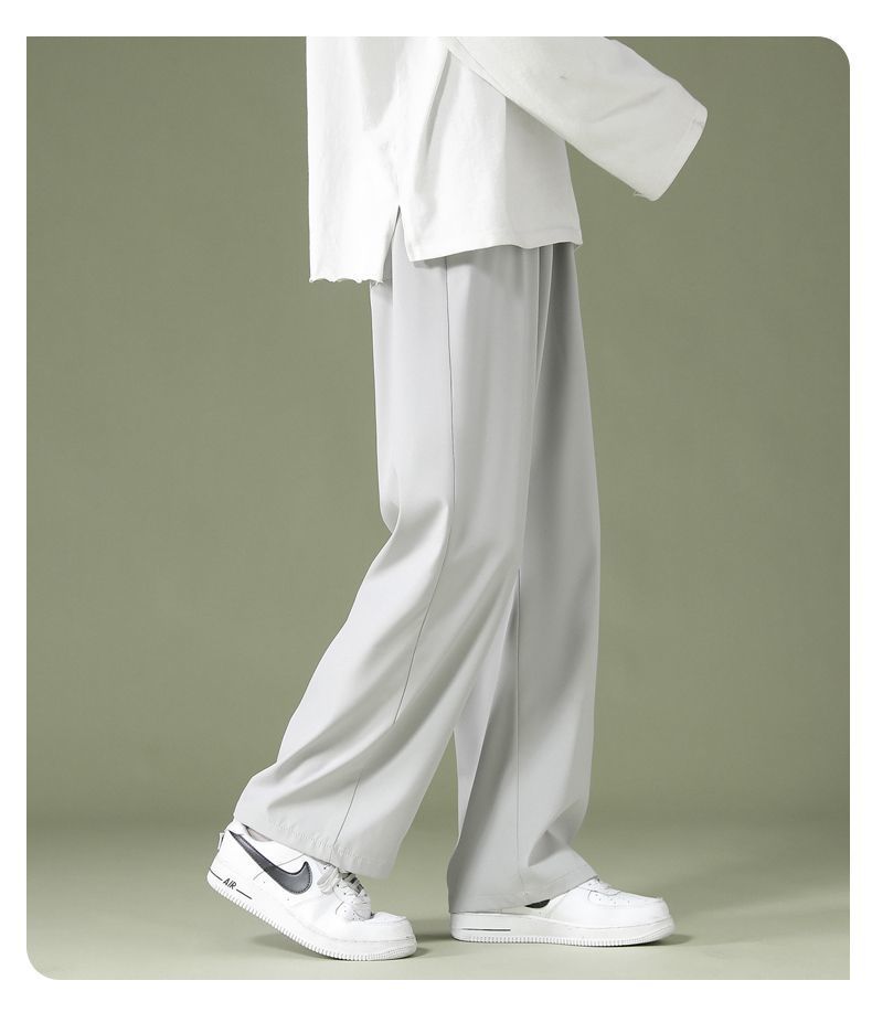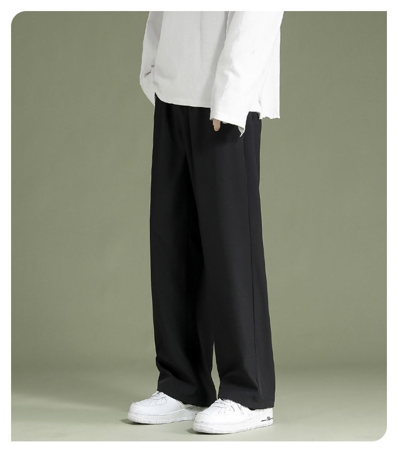 Pantalones de Seda de Hielo Negros para Hombre Verano Sueltos Modernos Combinables Pantalones Rectos Colgante Pierna Ancha Casuales
