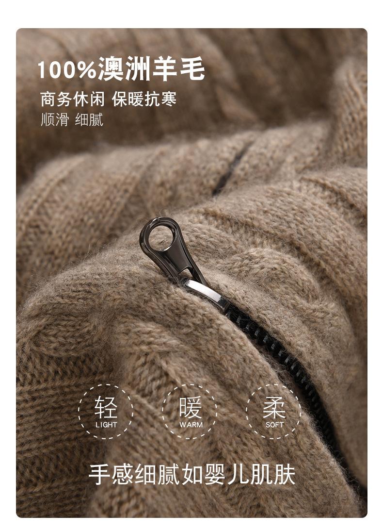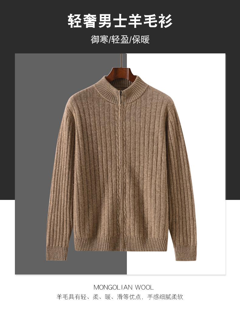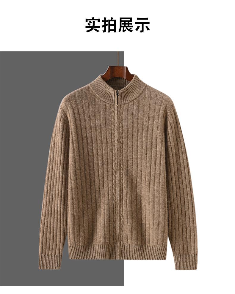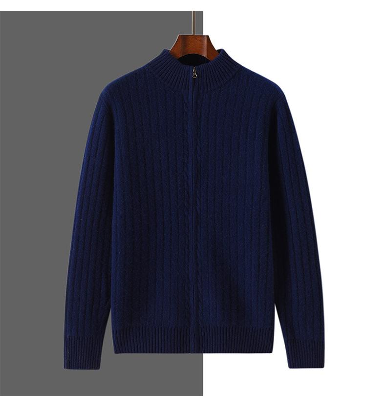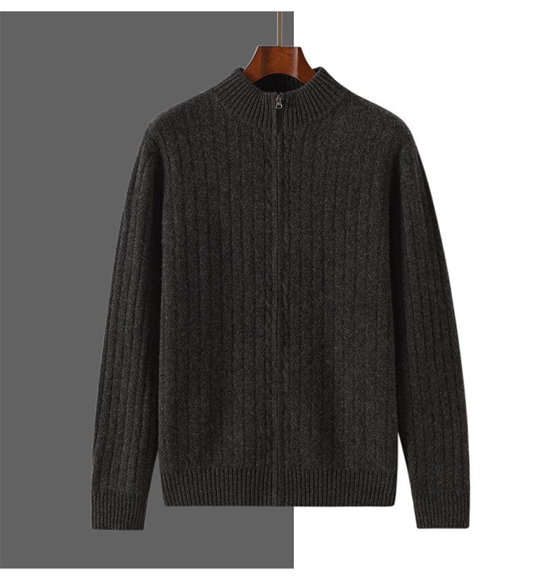 Suéter tipo cárdigan de otoño e invierno para hombre, estilo coreano, de moda, con cremallera en la base, chaqueta de lana pura con cremallera.