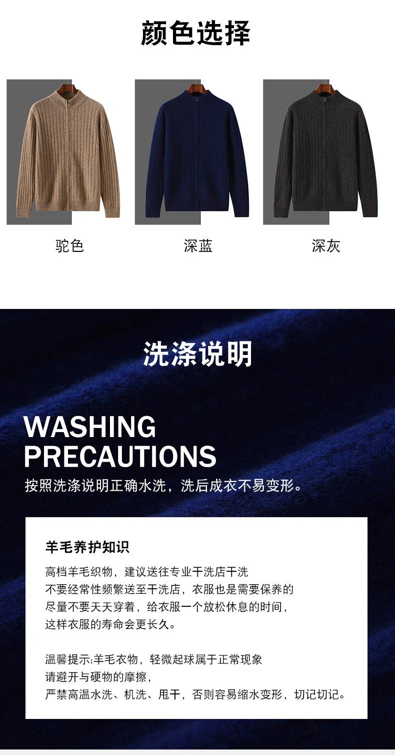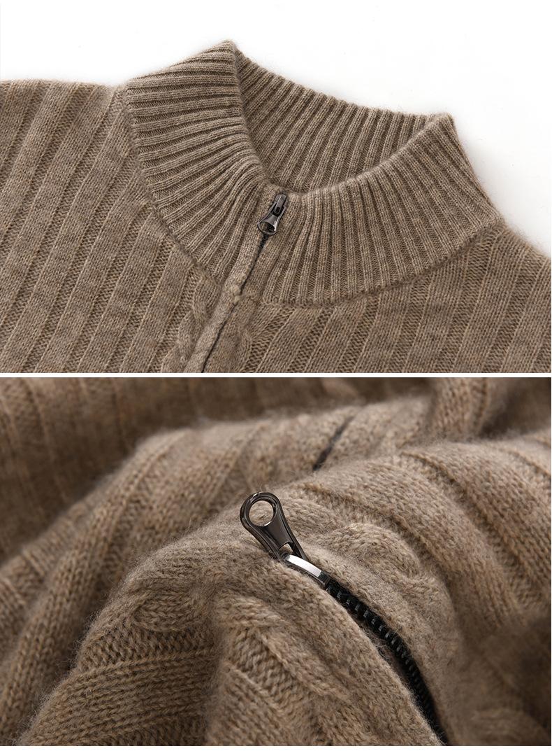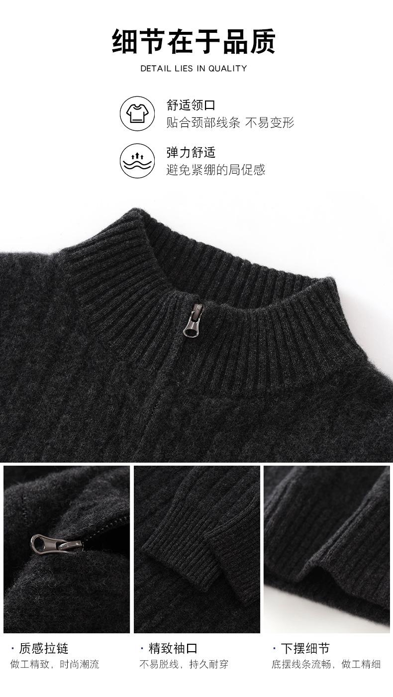 Suéter tipo cárdigan de otoño e invierno para hombre, estilo coreano, de moda, con cremallera en la base, chaqueta de lana pura con cremallera.