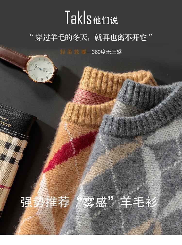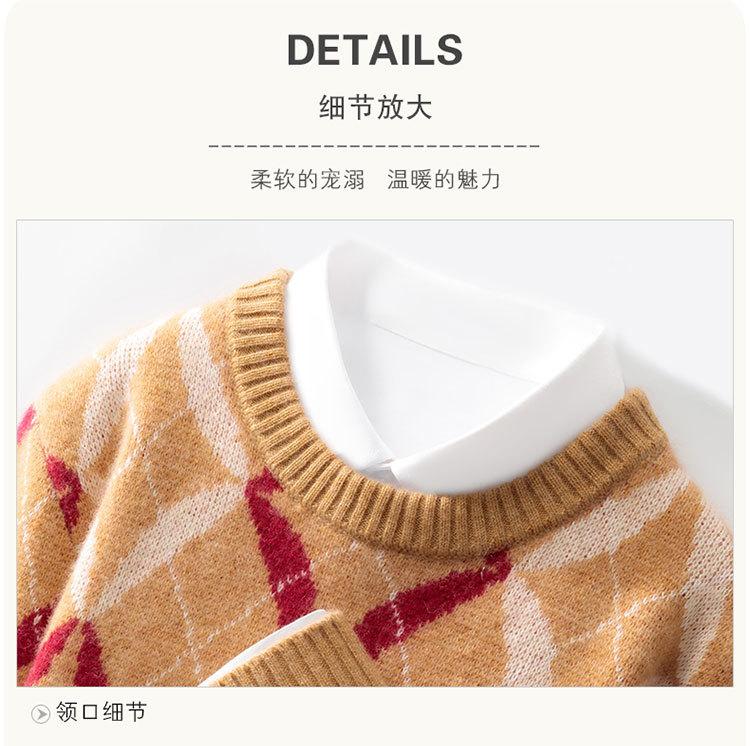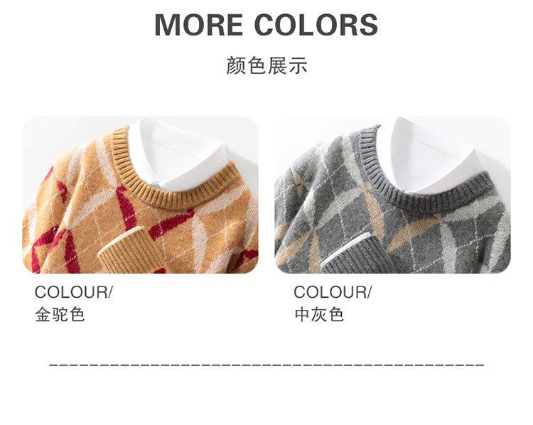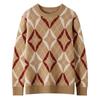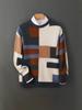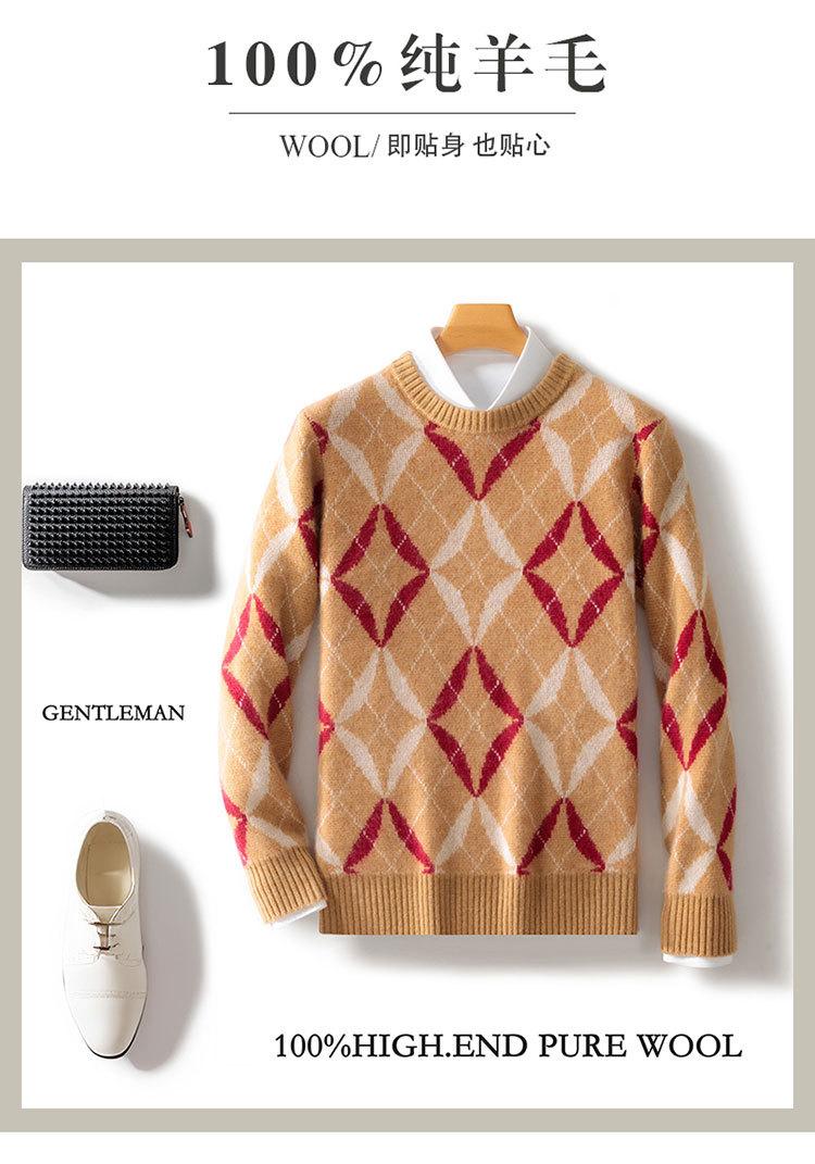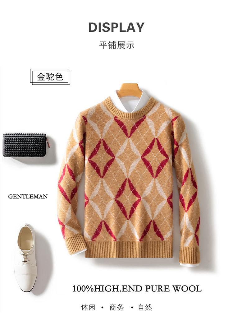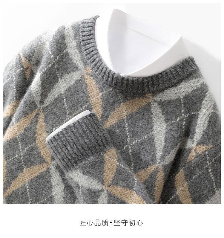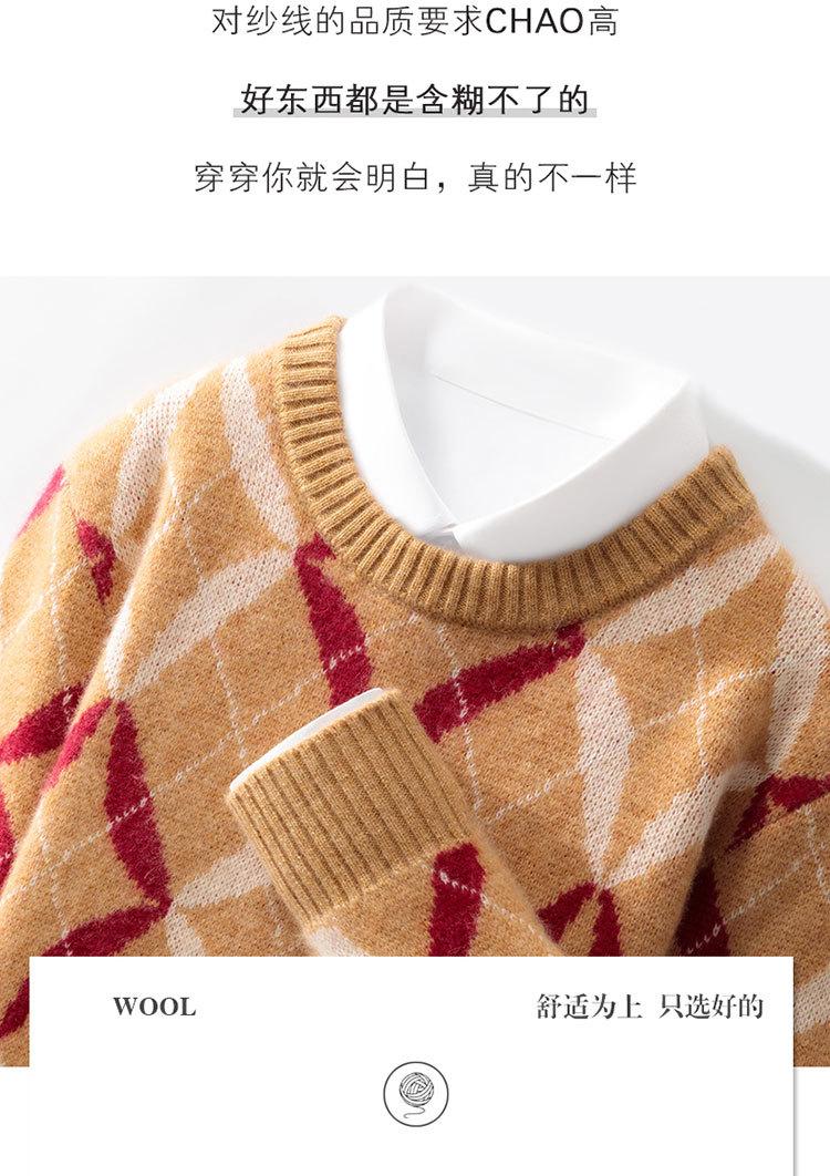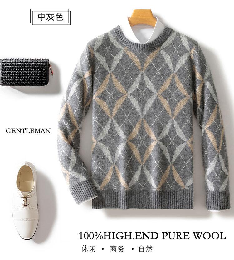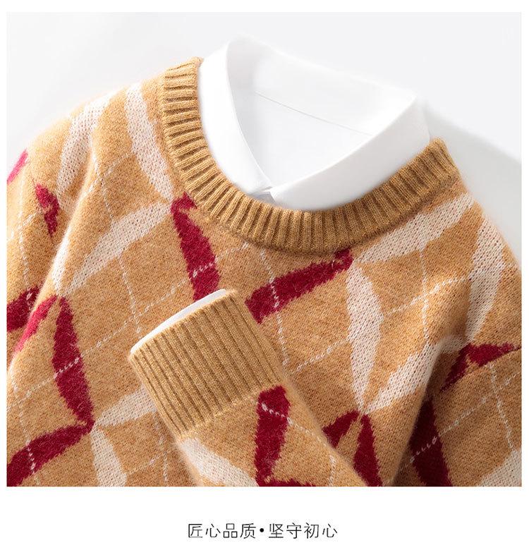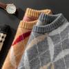 Suéter de lana con bloques de color para hombre, suéter de jacquard grueso con cuello redondo, camisa informal holgada de punto de cachemira, novedad de otoño e invierno
