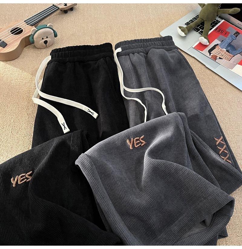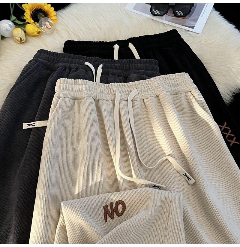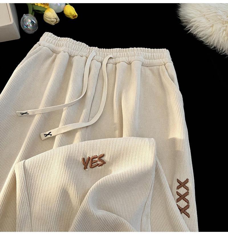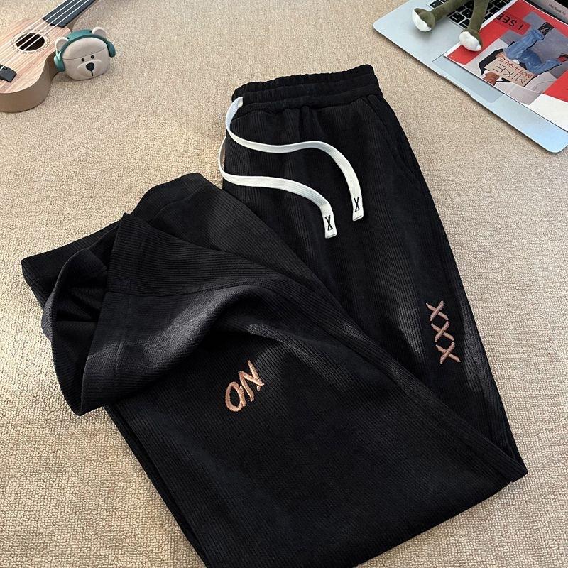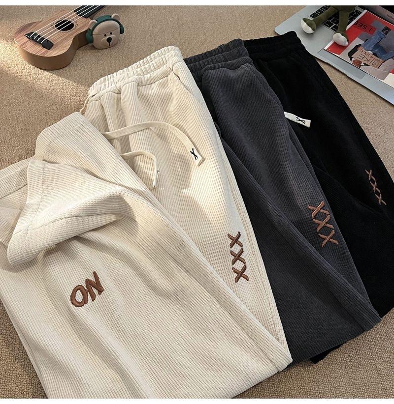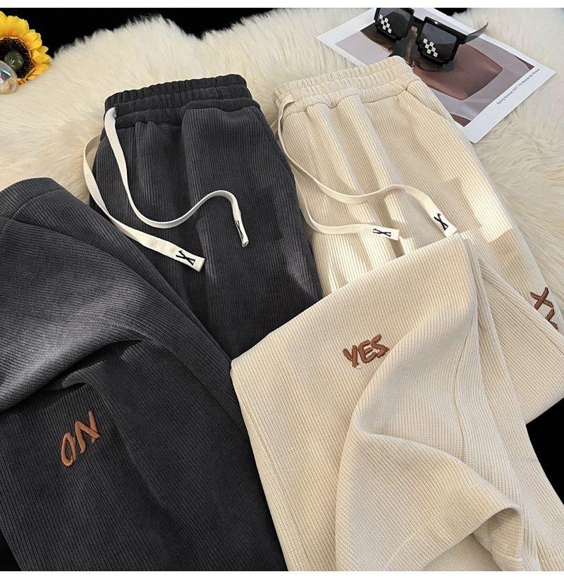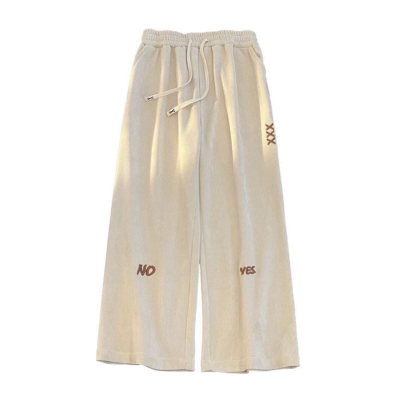 Pantalones Estilo Americano para Hombre Primavera y Otoño Talla Grande Sueltos Bordados Pierna Ancha Estilo Hong Kong Ins Nueva Moda Casual