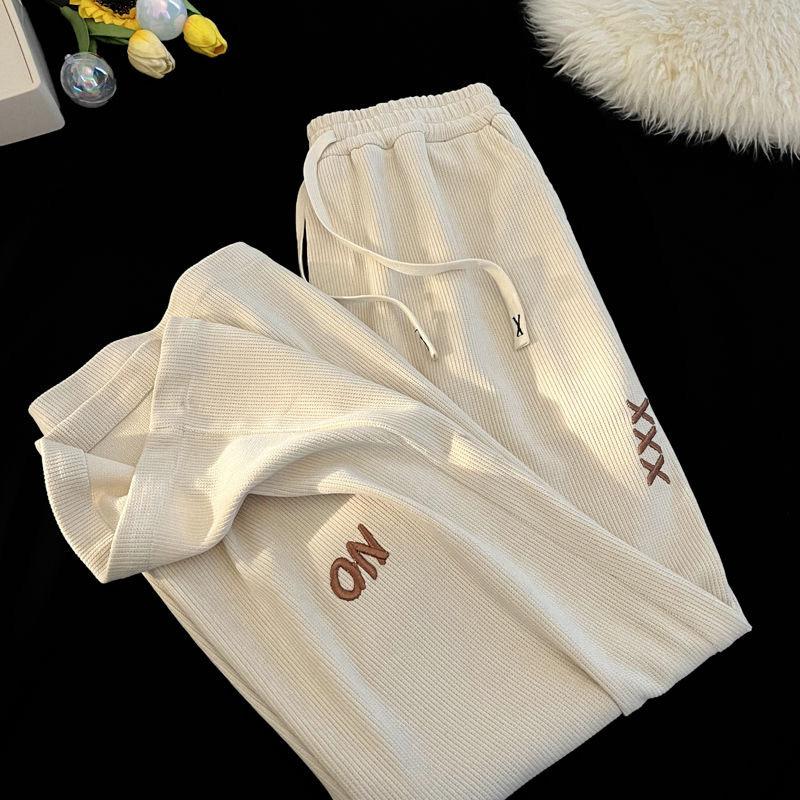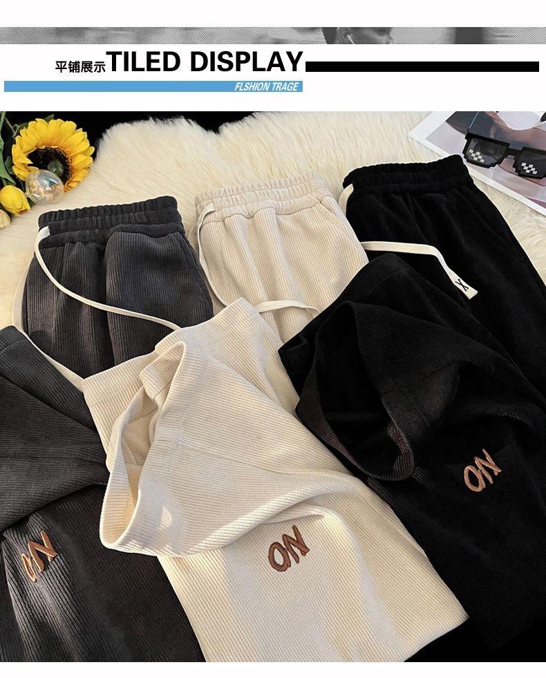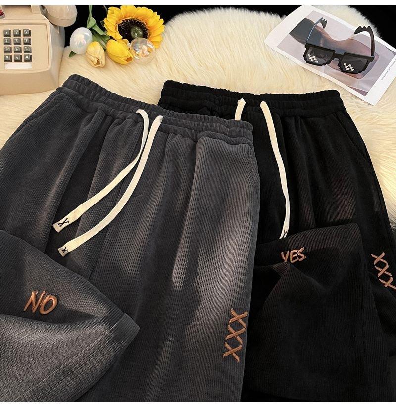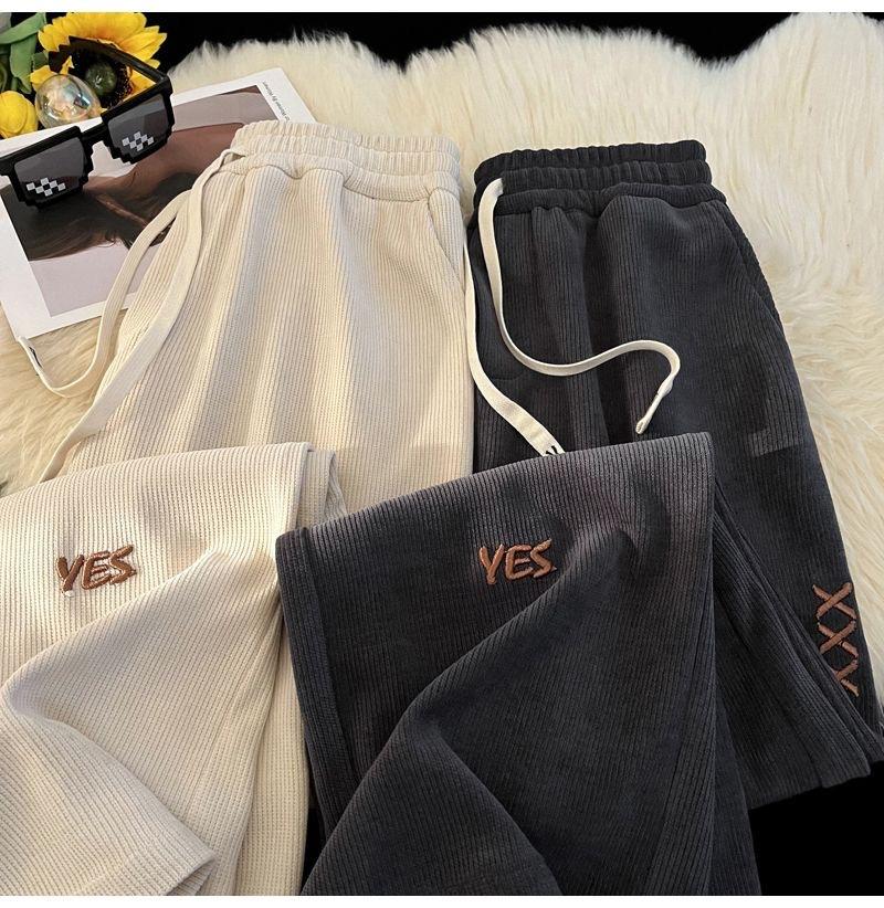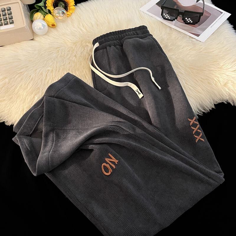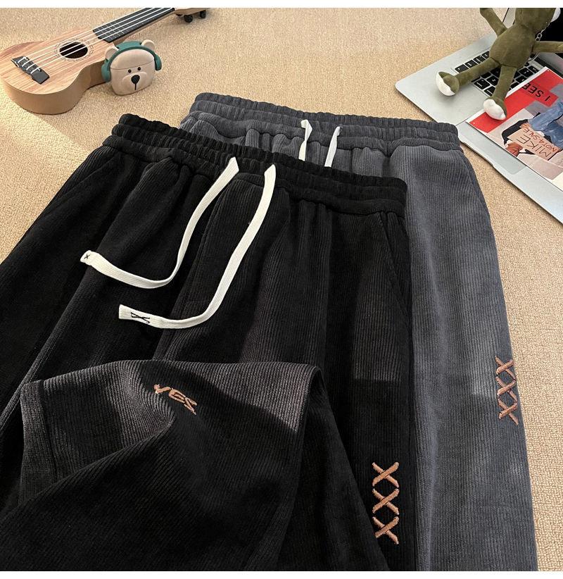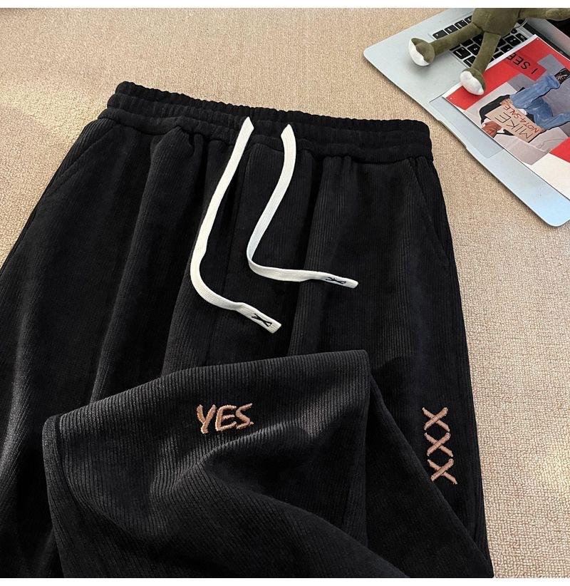 Pantalones Estilo Americano para Hombre Primavera y Otoño Talla Grande Sueltos Bordados Pierna Ancha Estilo Hong Kong Ins Nueva Moda Casual