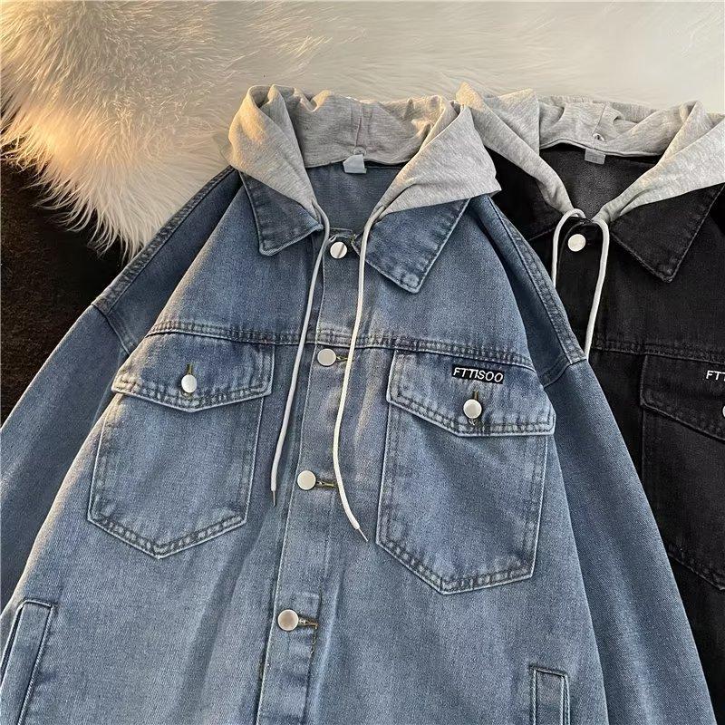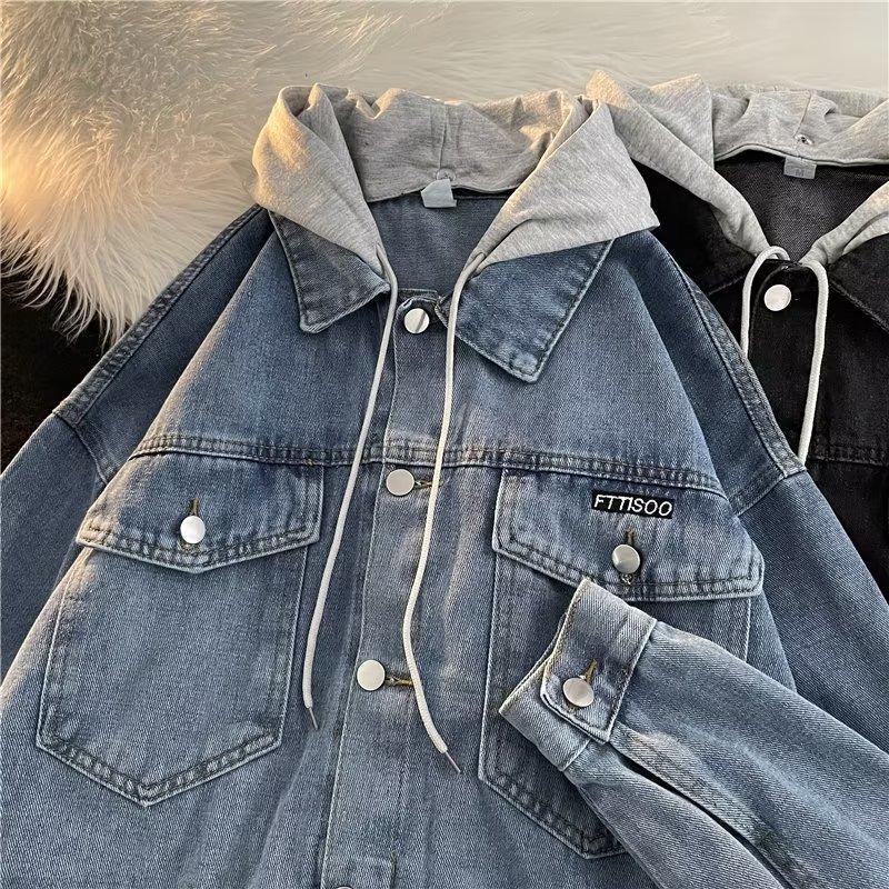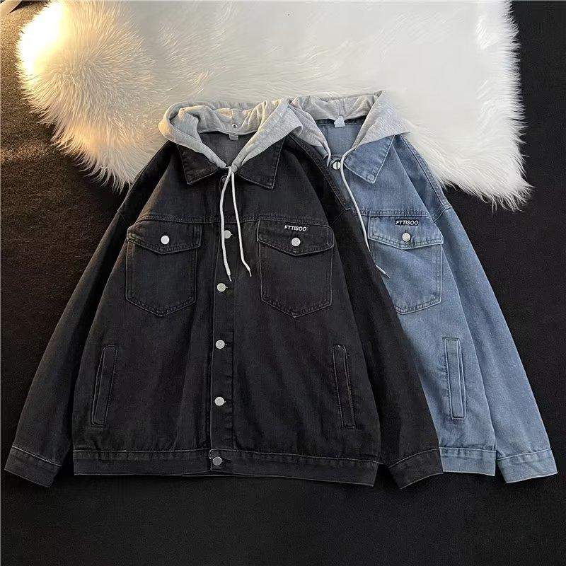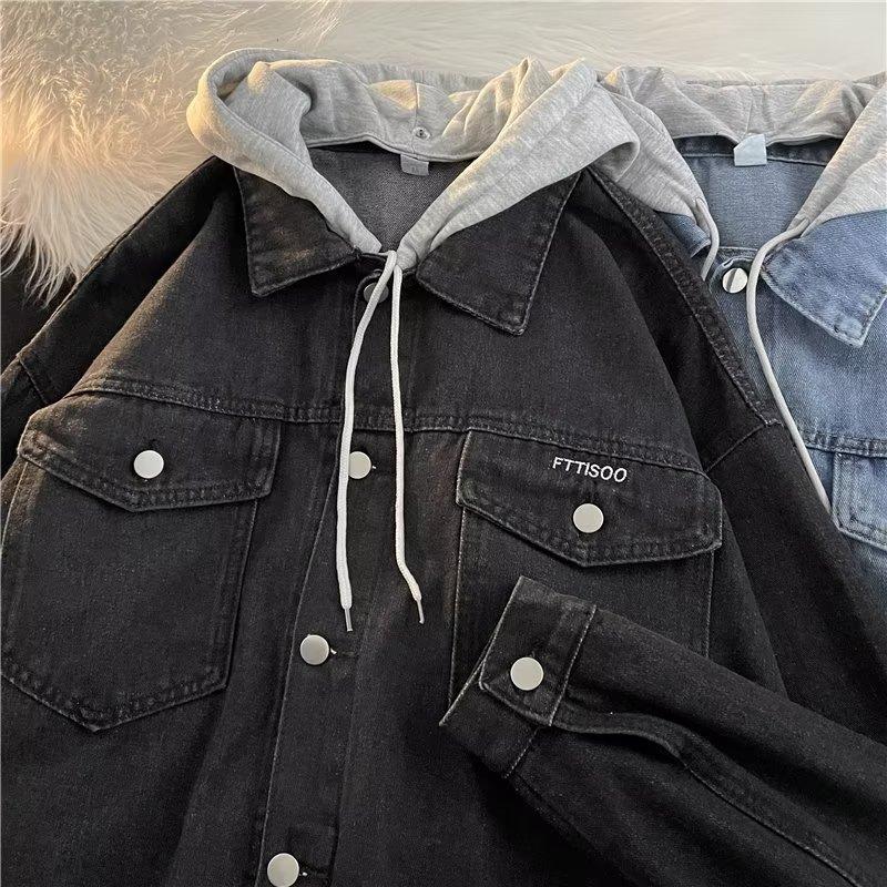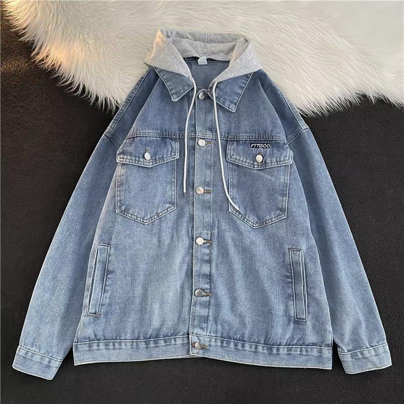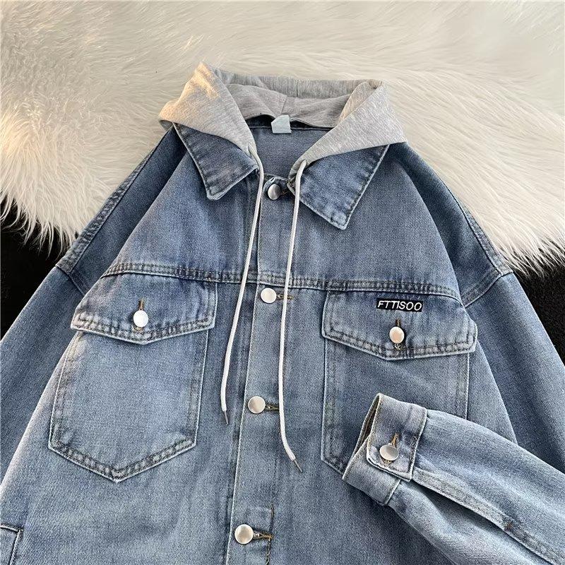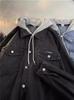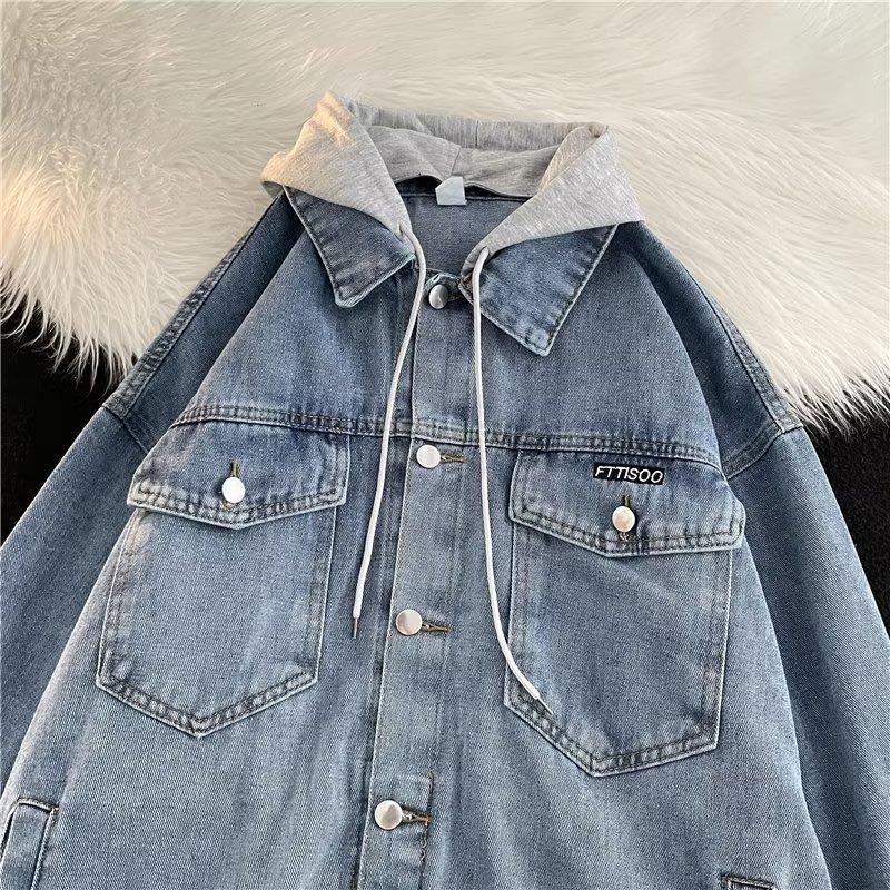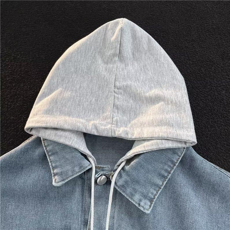 Chaqueta vaquera con capucha y bolsillos grandes estilo americano para hombre, elegante, holgada, de marca de moda urbana, estilo vintage.