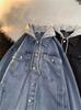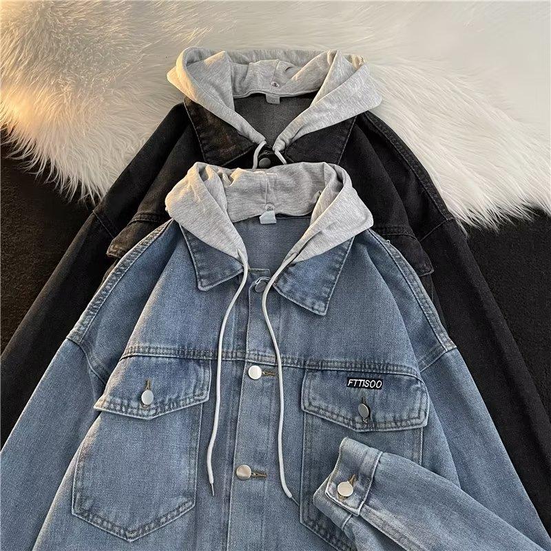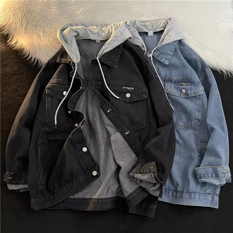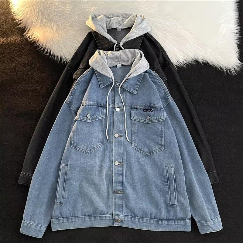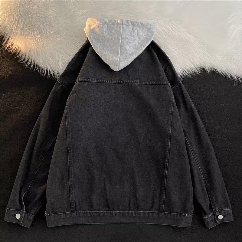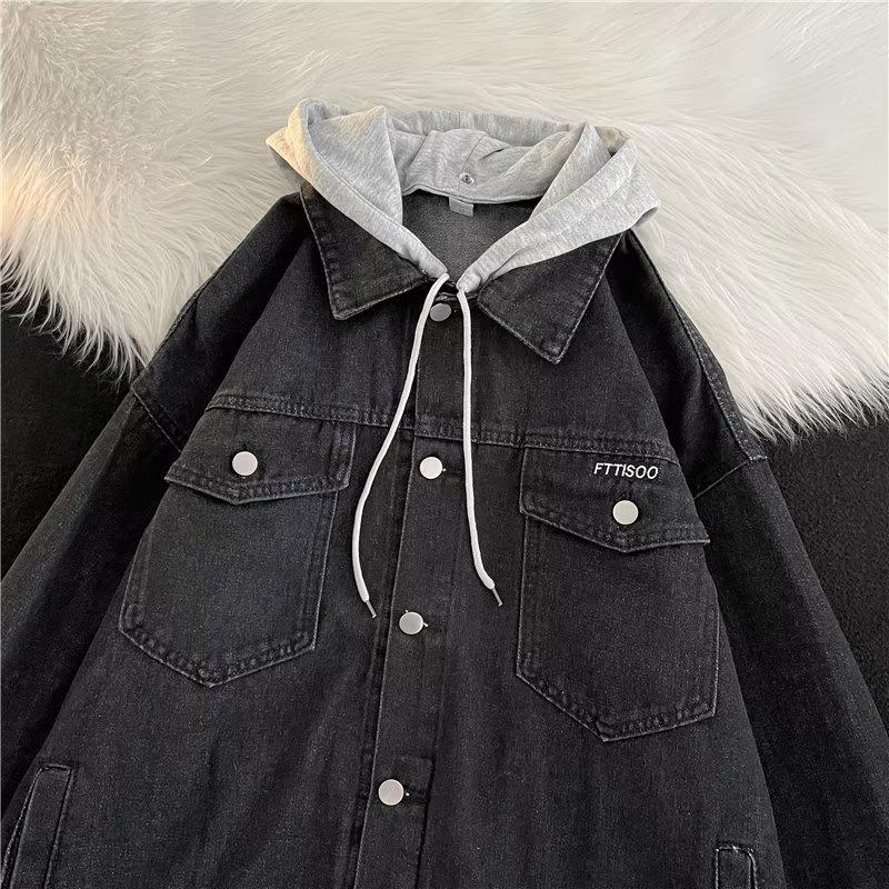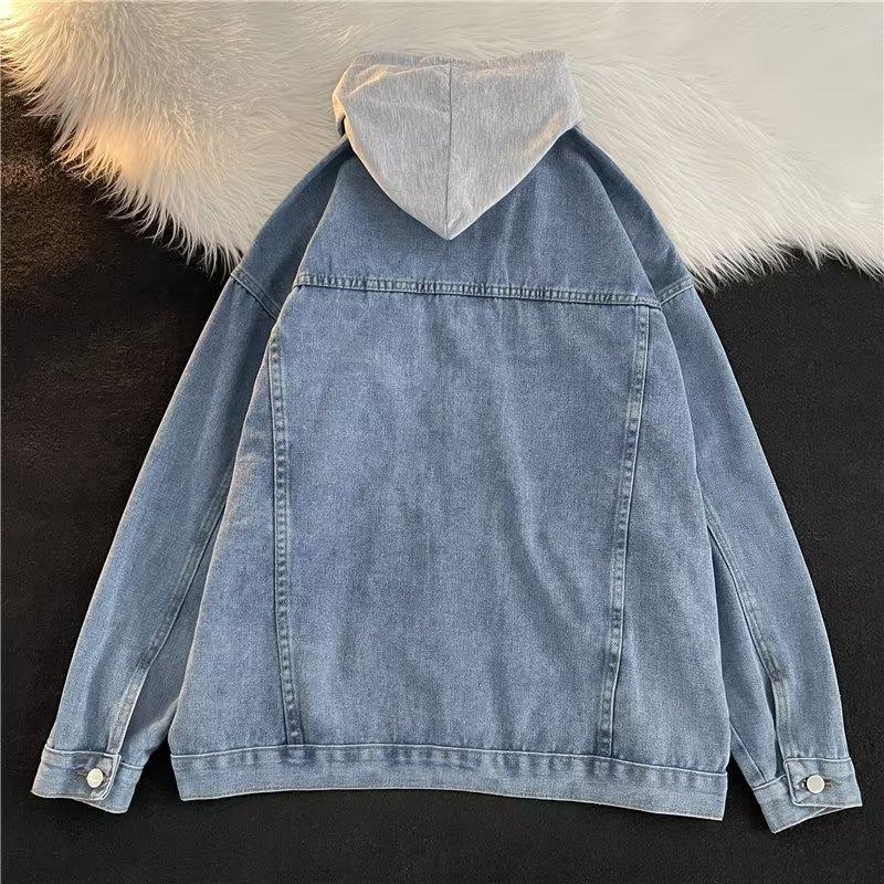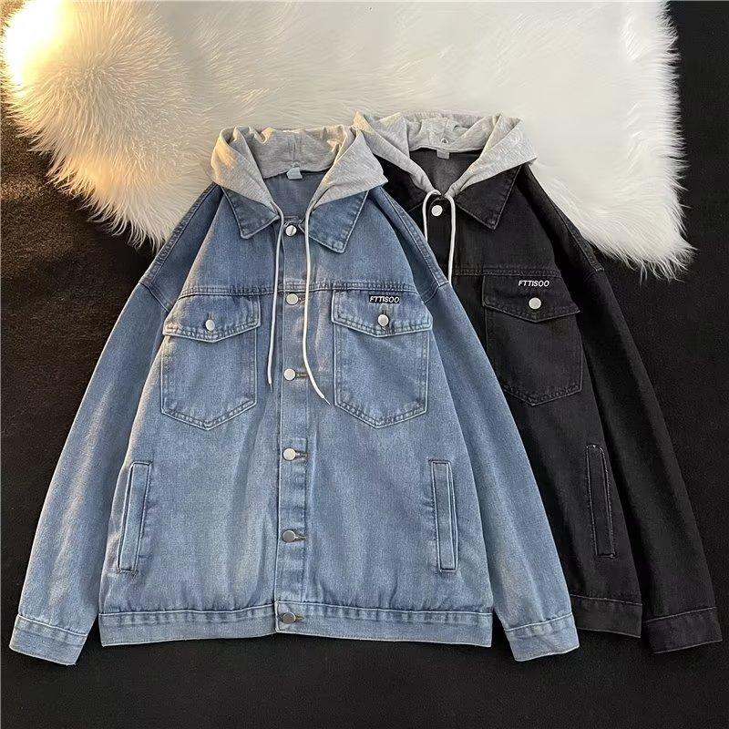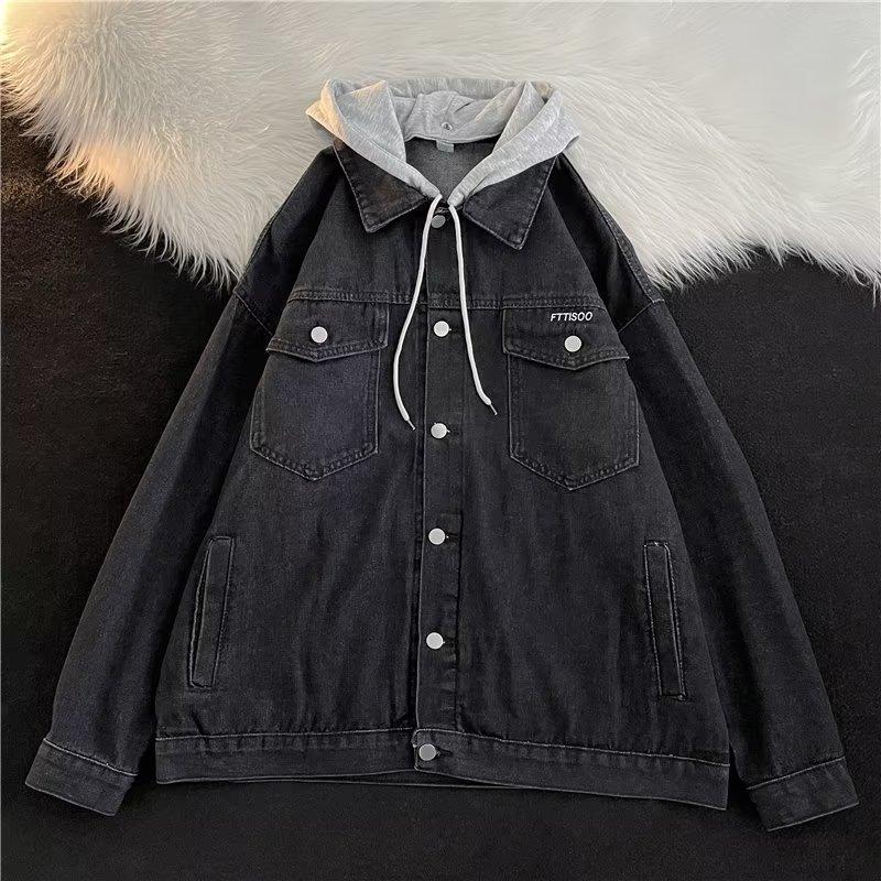 Chaqueta vaquera con capucha y bolsillos grandes estilo americano para hombre, elegante, holgada, de marca de moda urbana, estilo vintage.