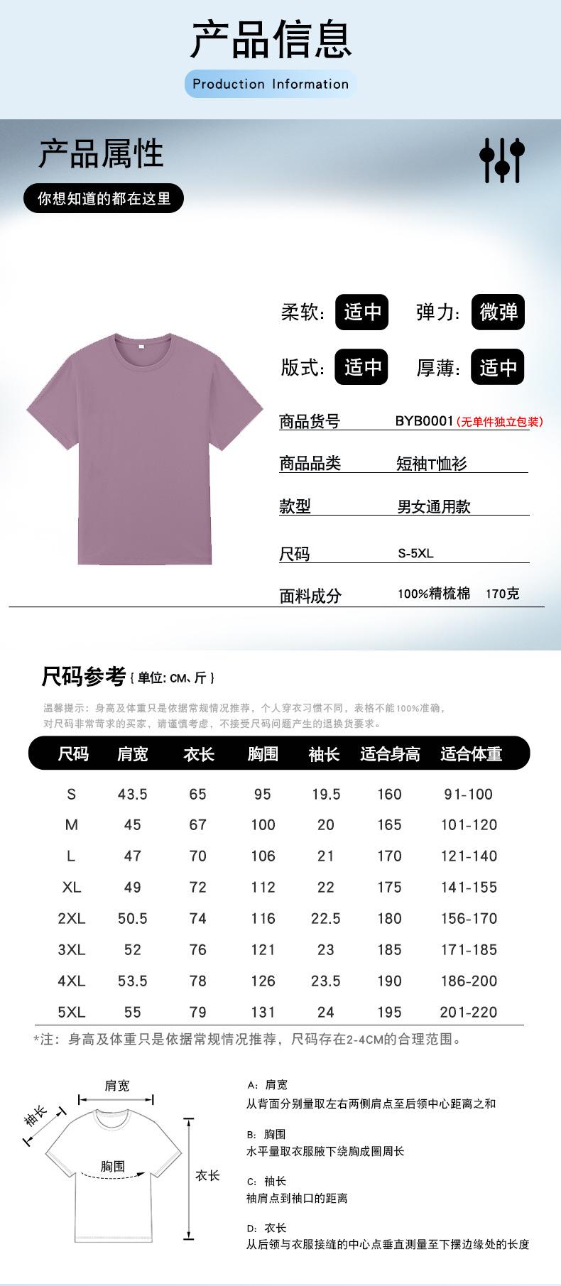 Camiseta corta de cuello redondo chino-alemana de algodón puro, cómoda, de 170 g, con estampado de logotipo, personalizada, para uso profesional y publicitario.