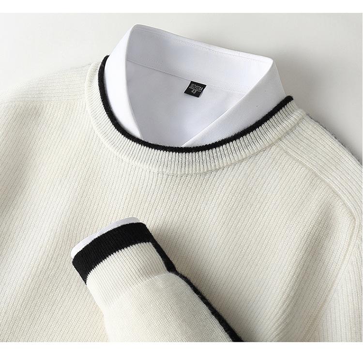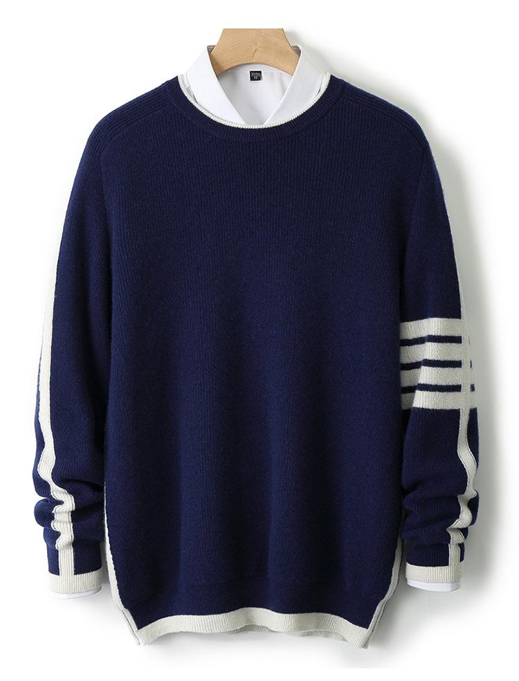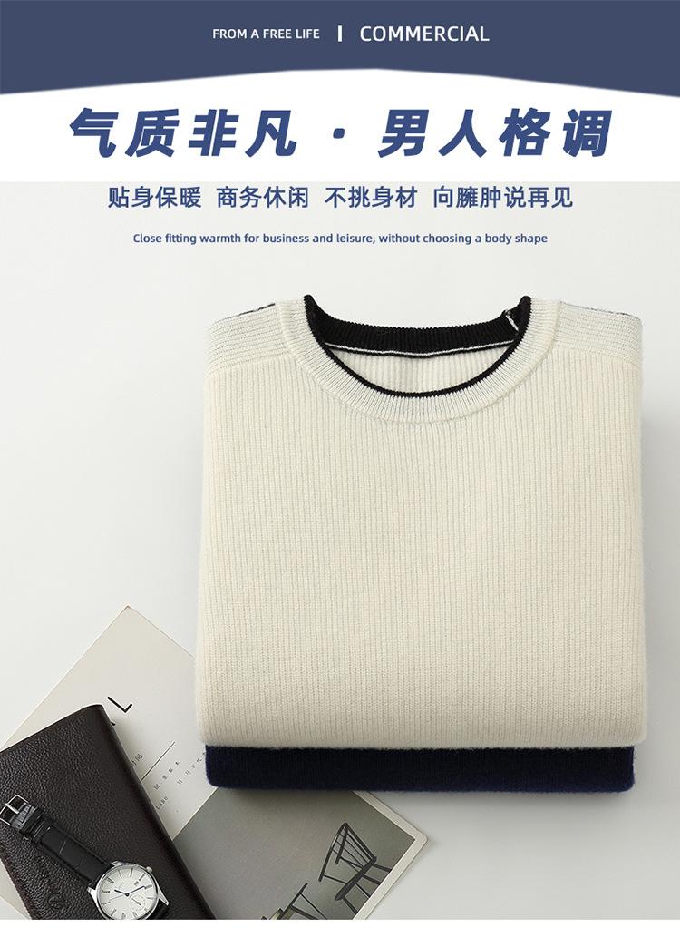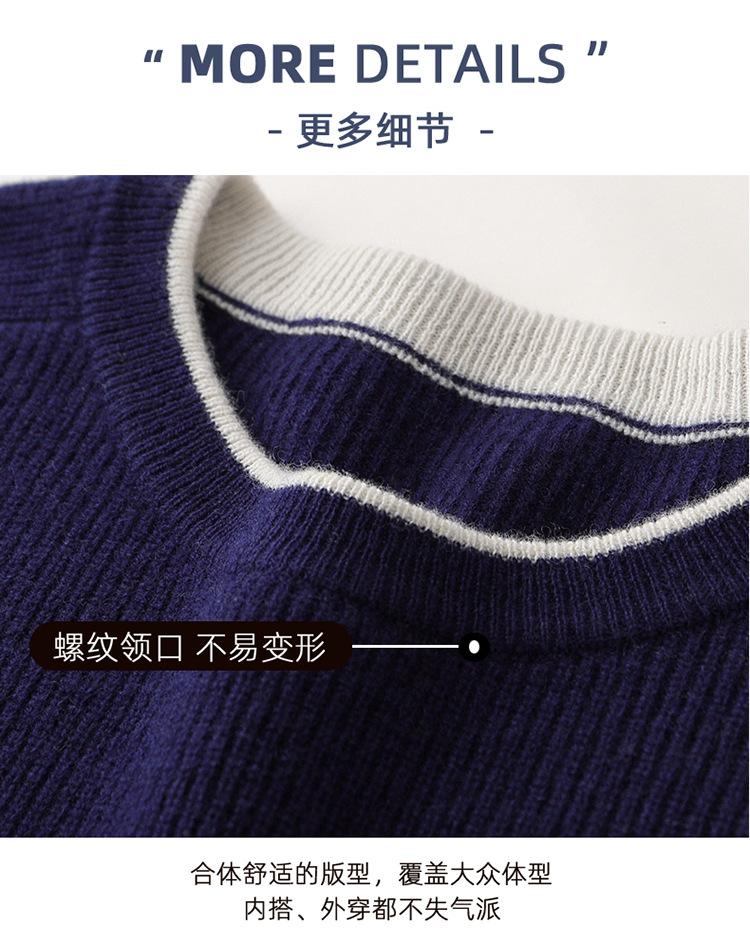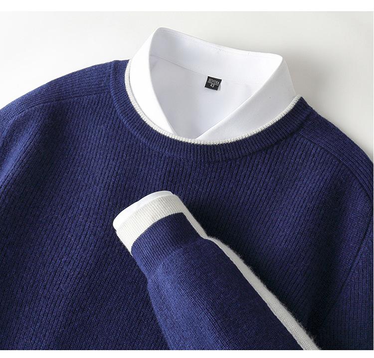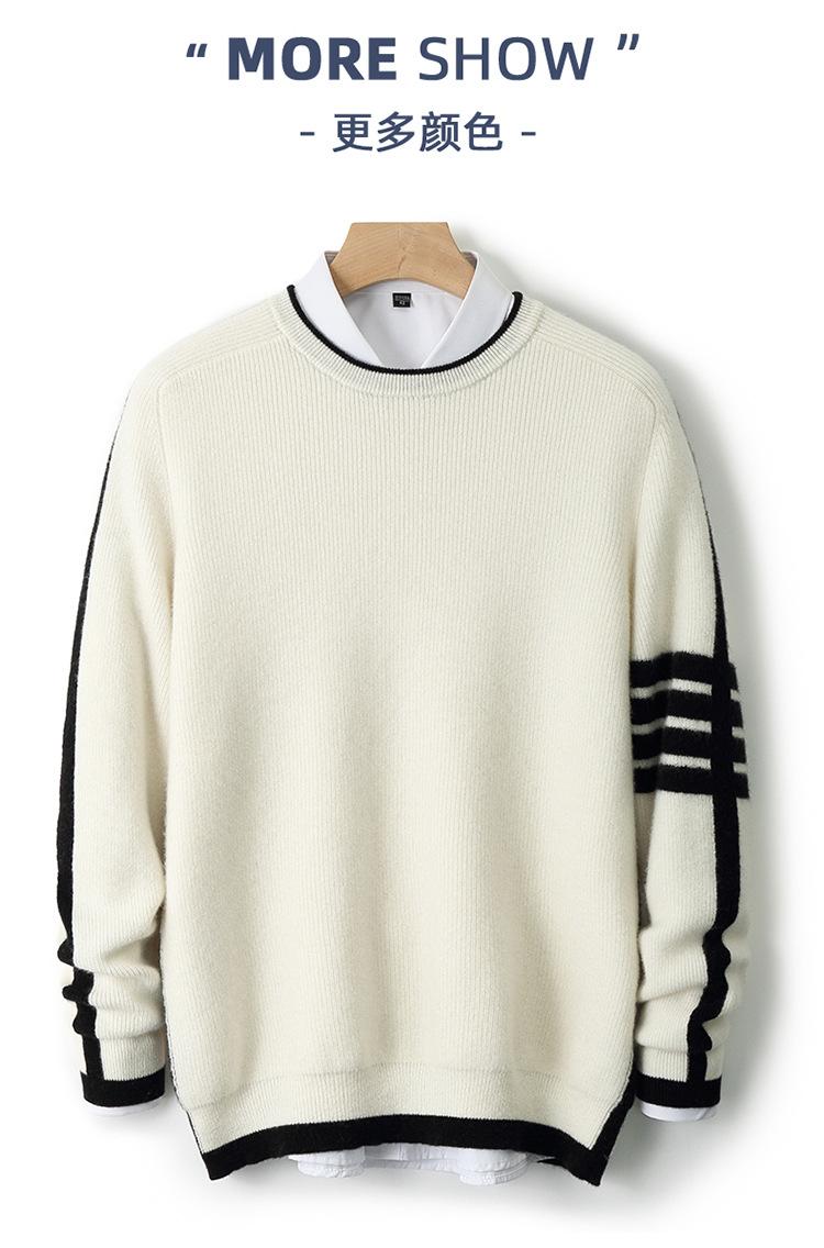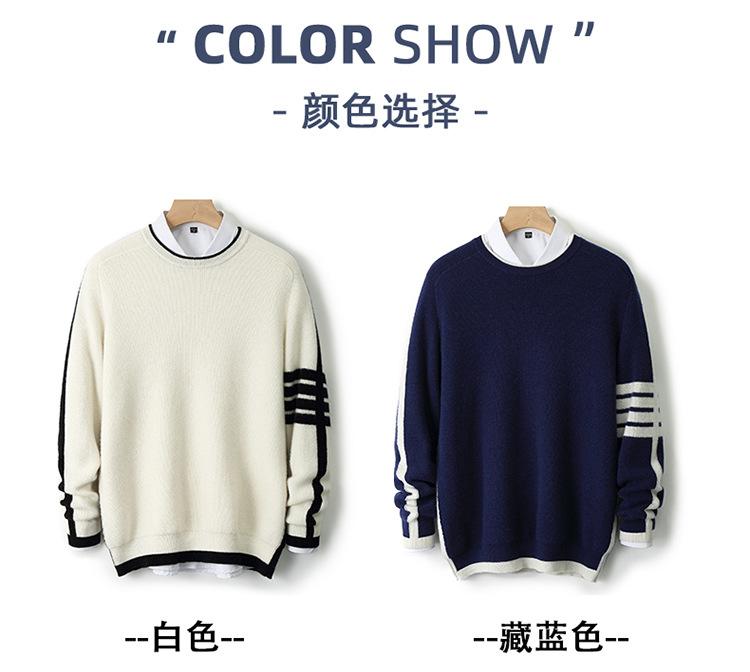 Suéter de lana 100% pura para hombre, jersey de cuello redondo a juego con colores, holgado, informal, de punto de cachemira, novedad de otoño e invierno.