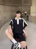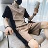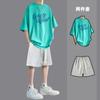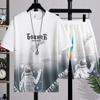 Traje de camiseta de manga corta de verano 2023 para hombre, conjunto de dos piezas de camiseta de seda de hielo de media manga de marca moderna casual para hombre, traje moderno