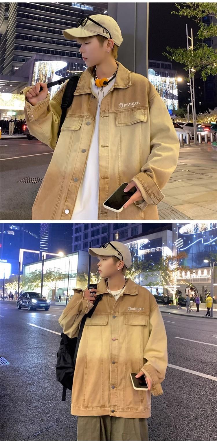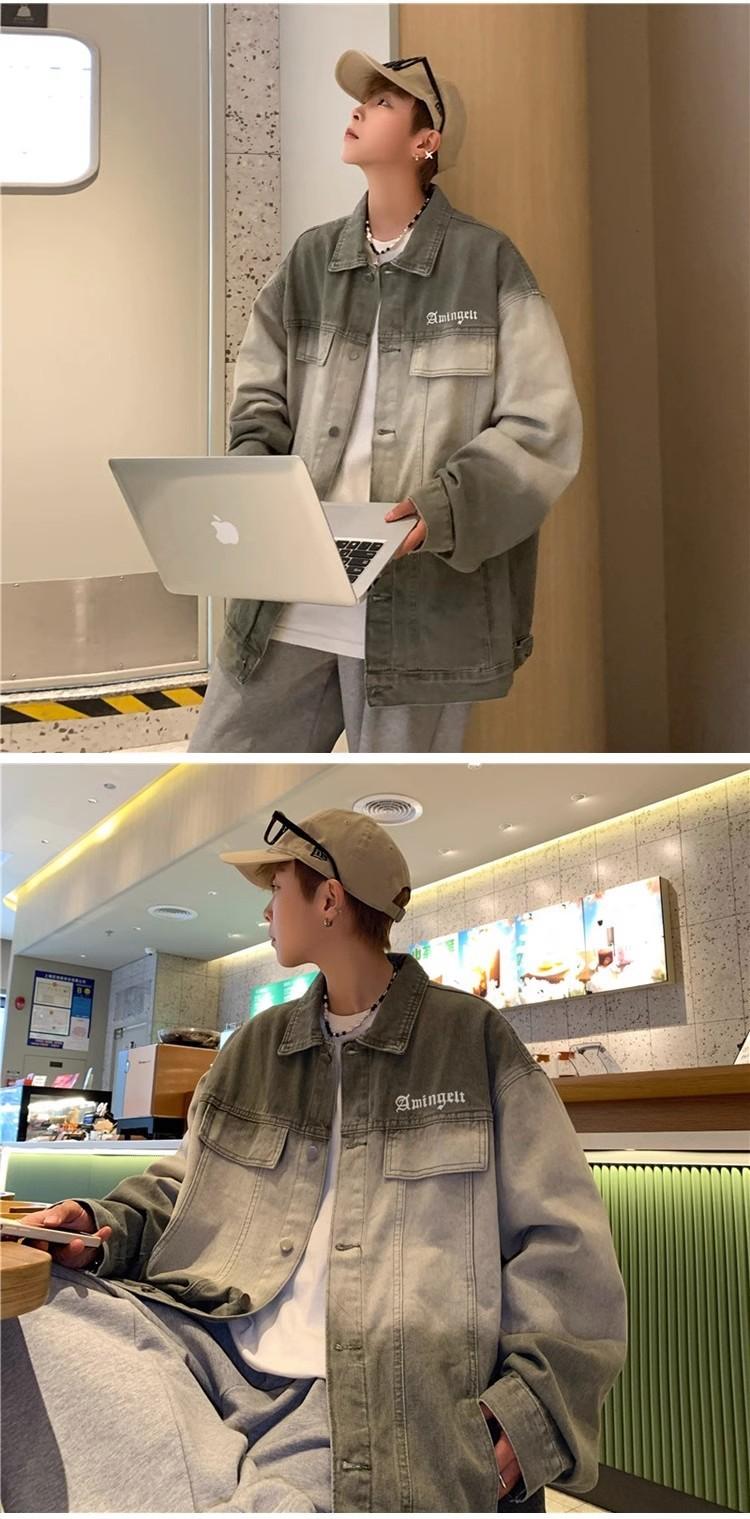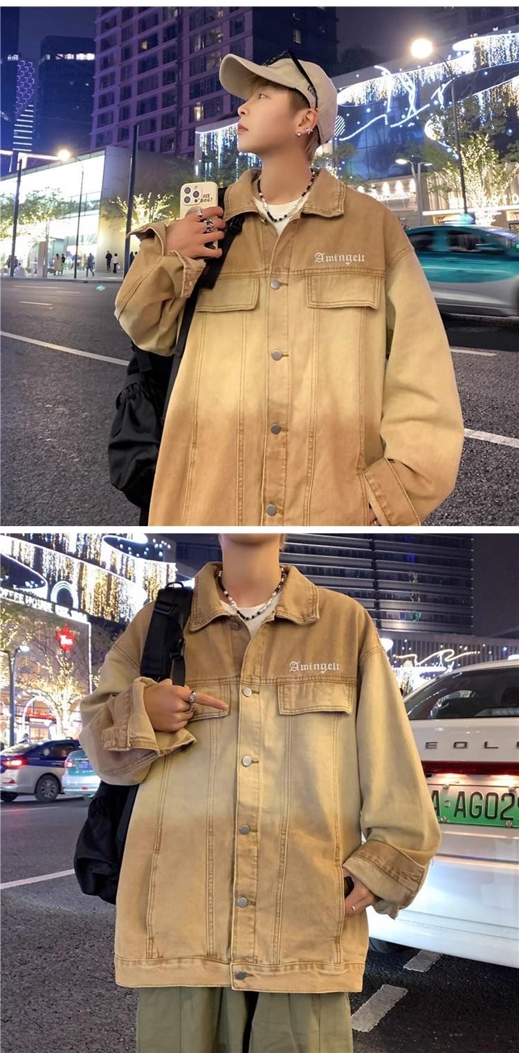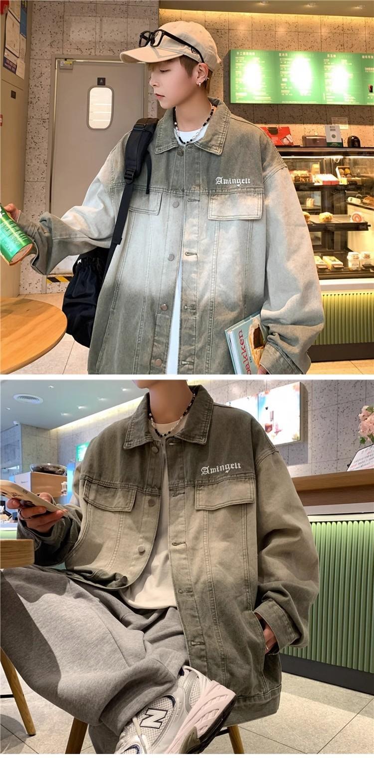 Chaqueta vaquera retro de estilo americano para pareja, primavera y otoño, nueva marca de moda, parte superior degradada, holgada, estilo nuevo, elegante chaqueta de trabajo para hombre.