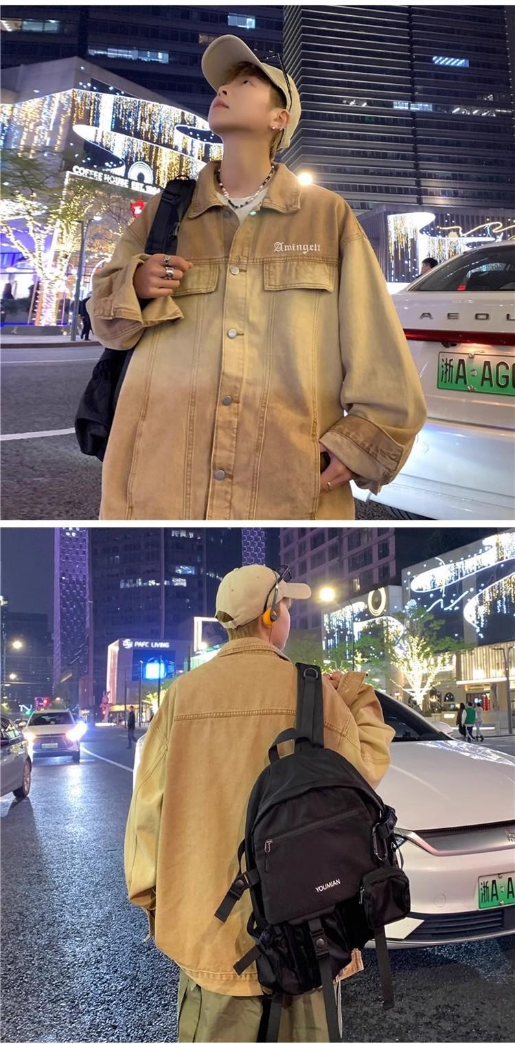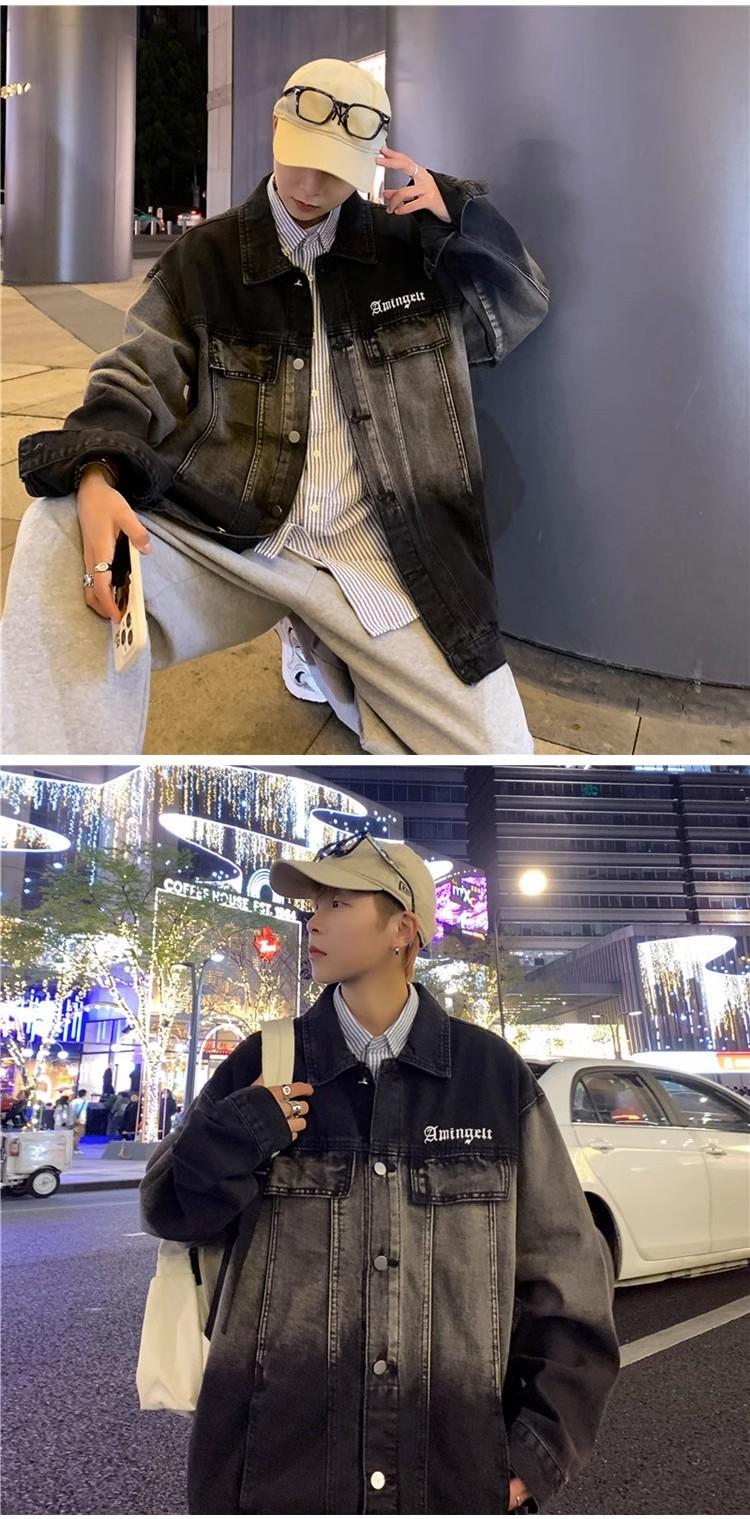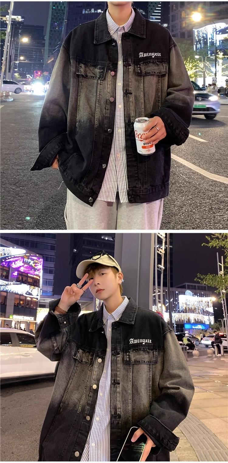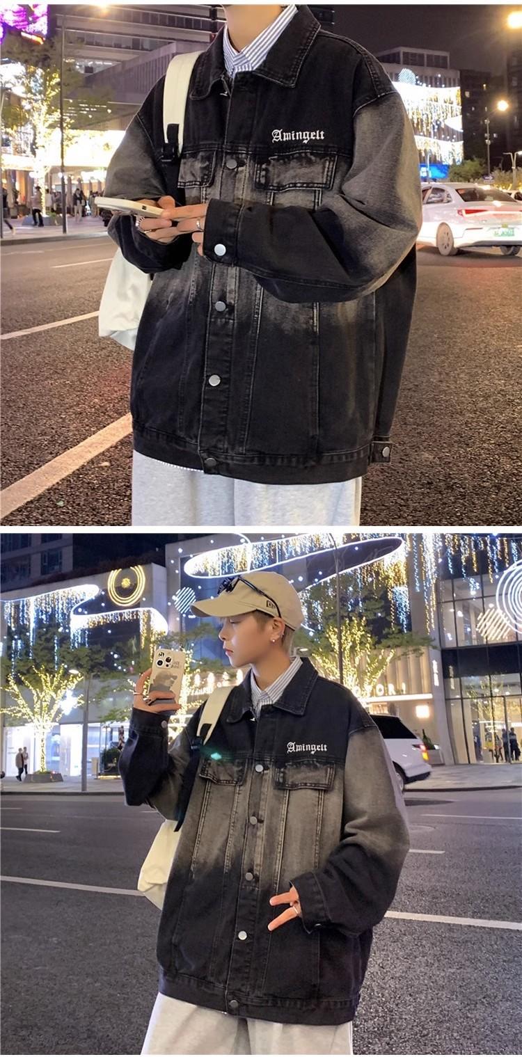 Chaqueta vaquera retro de estilo americano para pareja, primavera y otoño, nueva marca de moda, parte superior degradada, holgada, estilo nuevo, elegante chaqueta de trabajo para hombre.