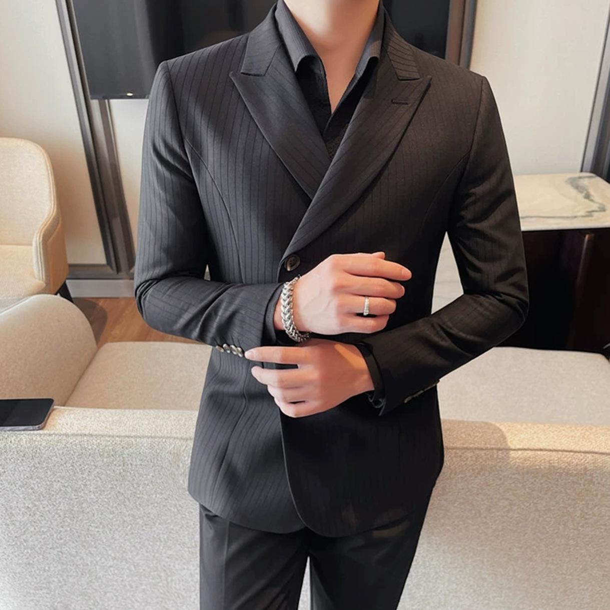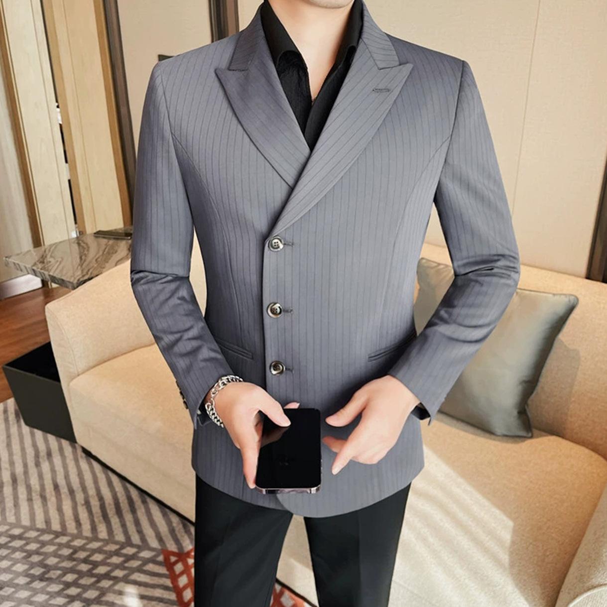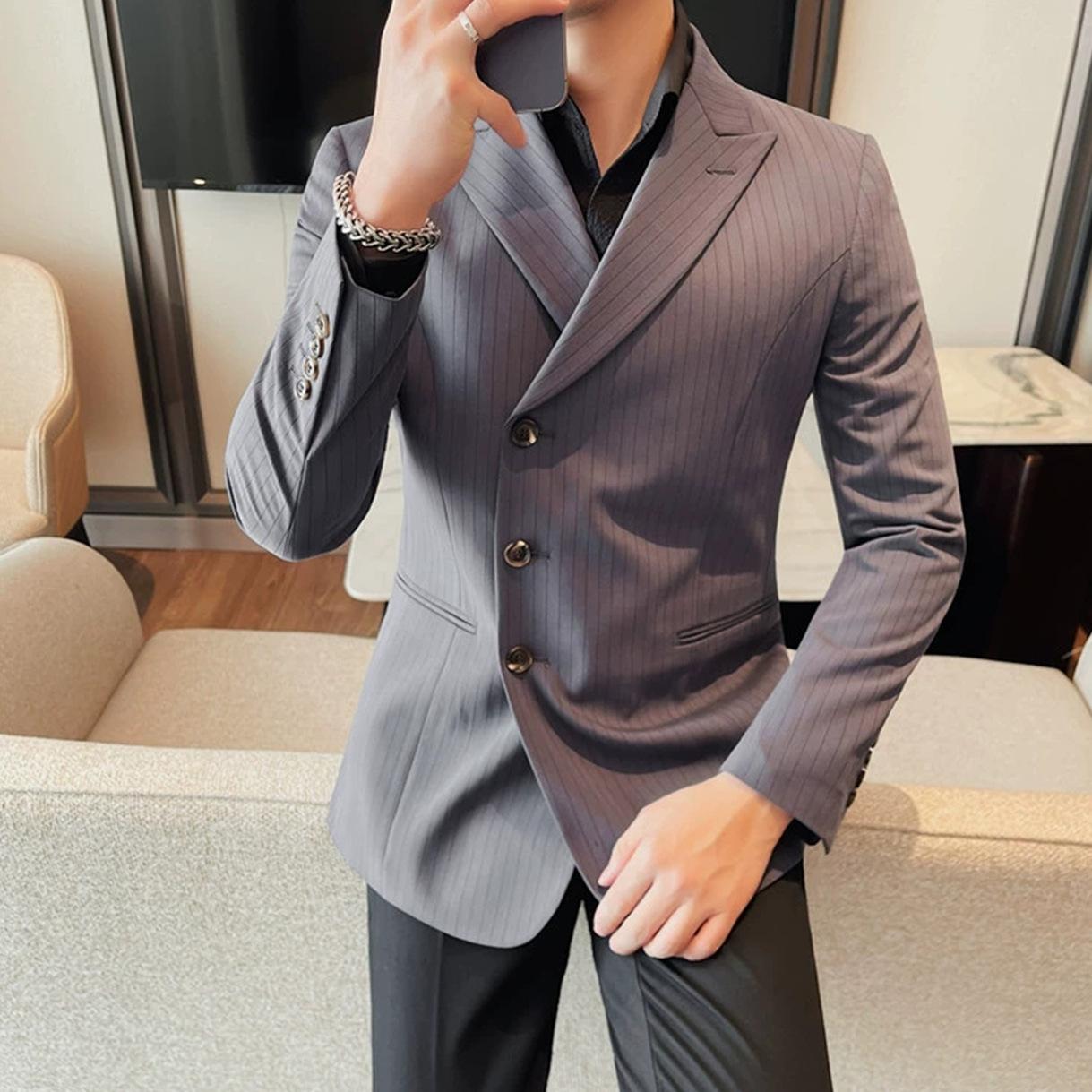 Traje británico de rayas de alta calidad transfronterizo para hombre, chaqueta con cuello barcaza, moda, hebilla oblicua, casual, coreano, traje único al por mayor
