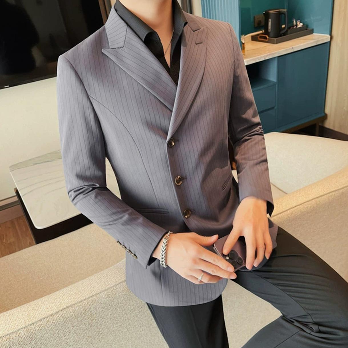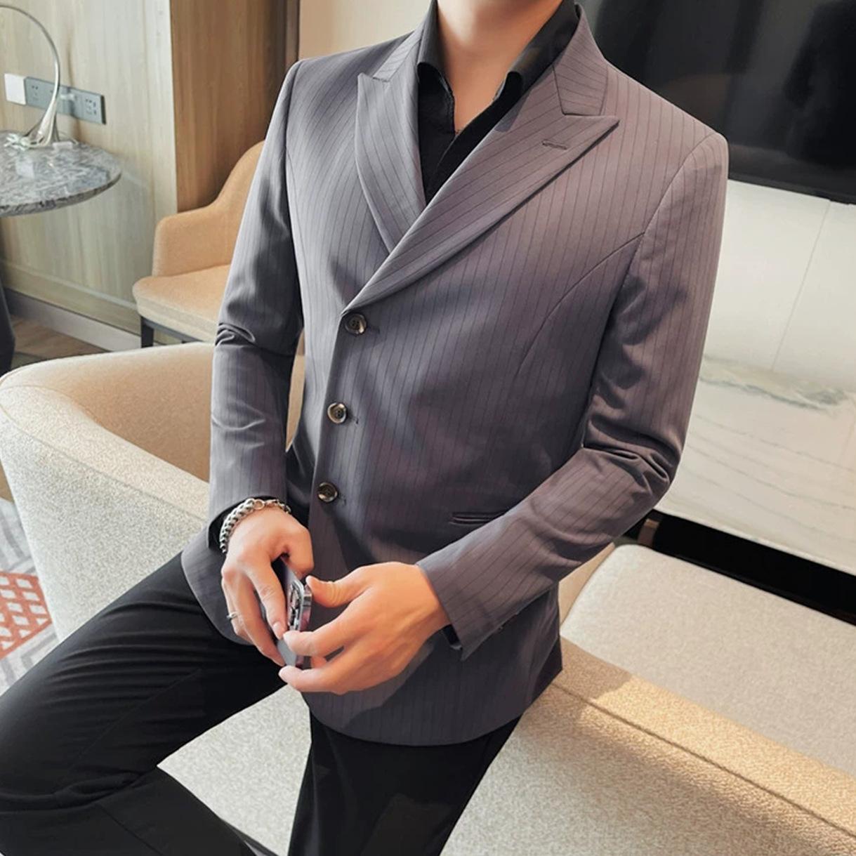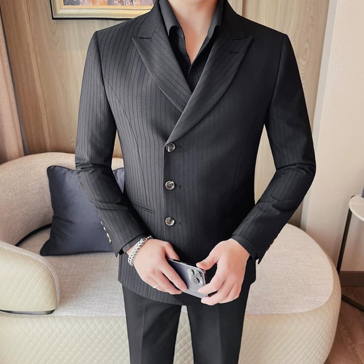 Traje británico de rayas de alta calidad transfronterizo para hombre, chaqueta con cuello barcaza, moda, hebilla oblicua, casual, coreano, traje único al por mayor